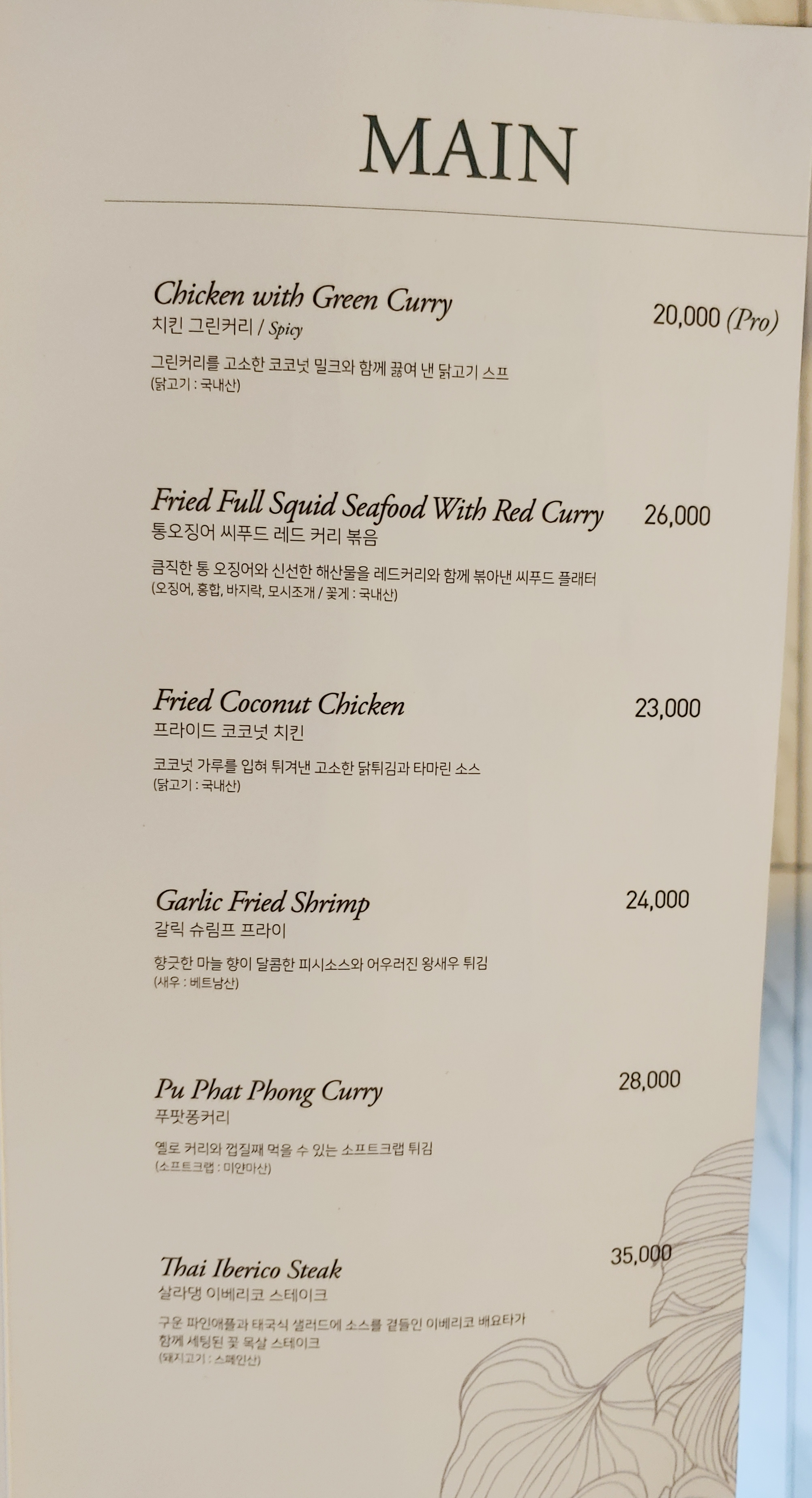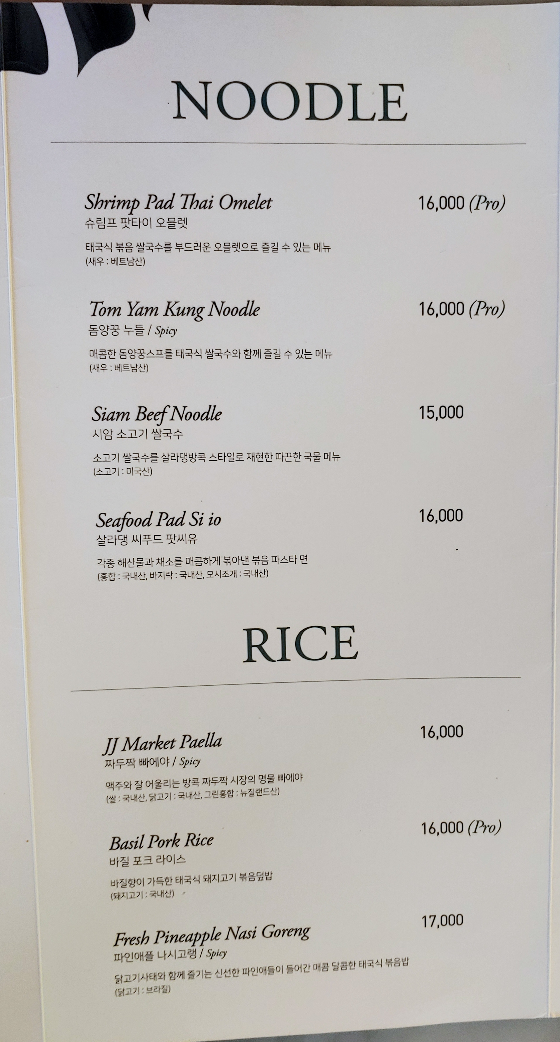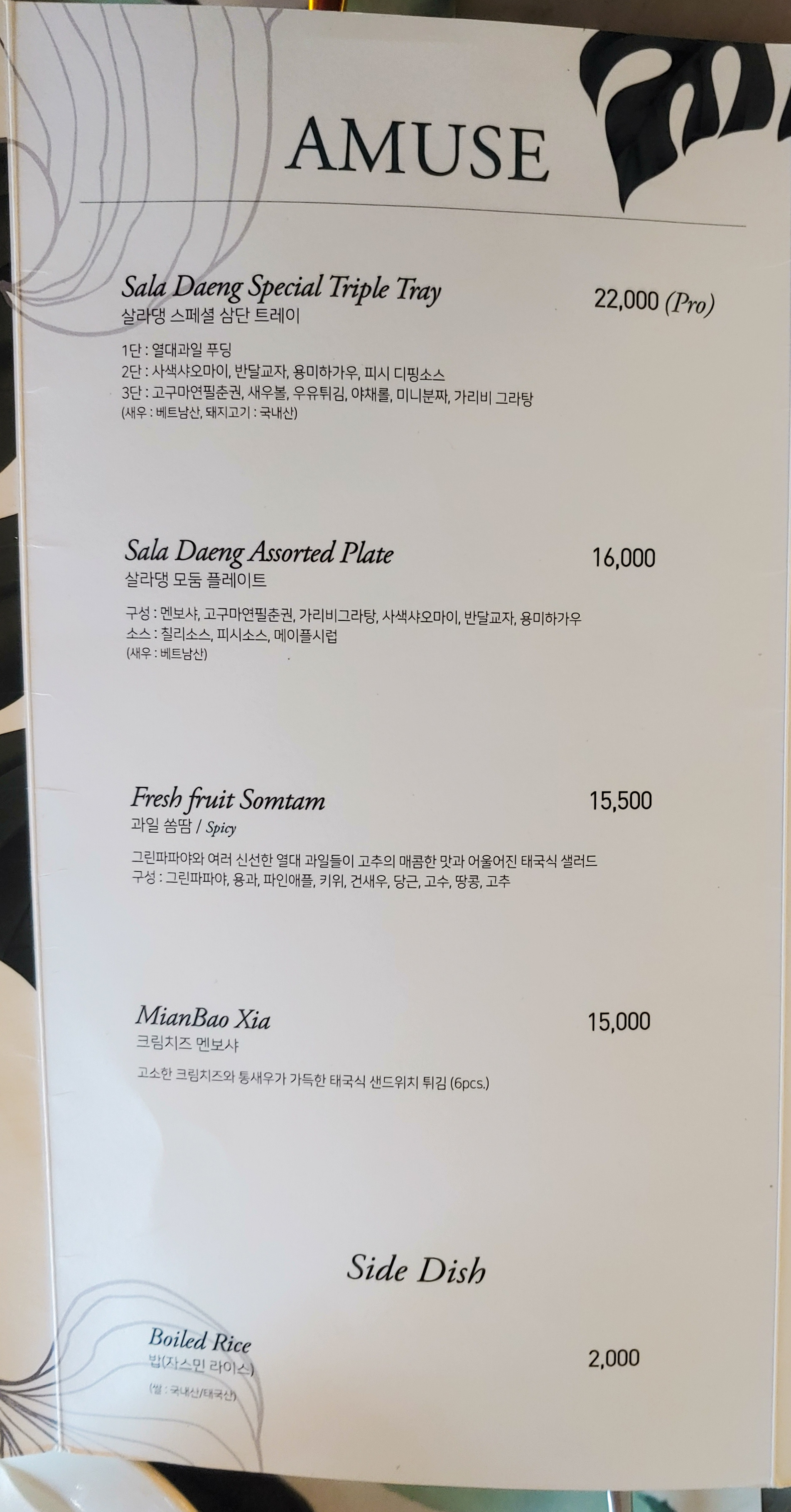 그럼 살라댕 방콛의 메뉴를 찬찬히 보겠습니다.