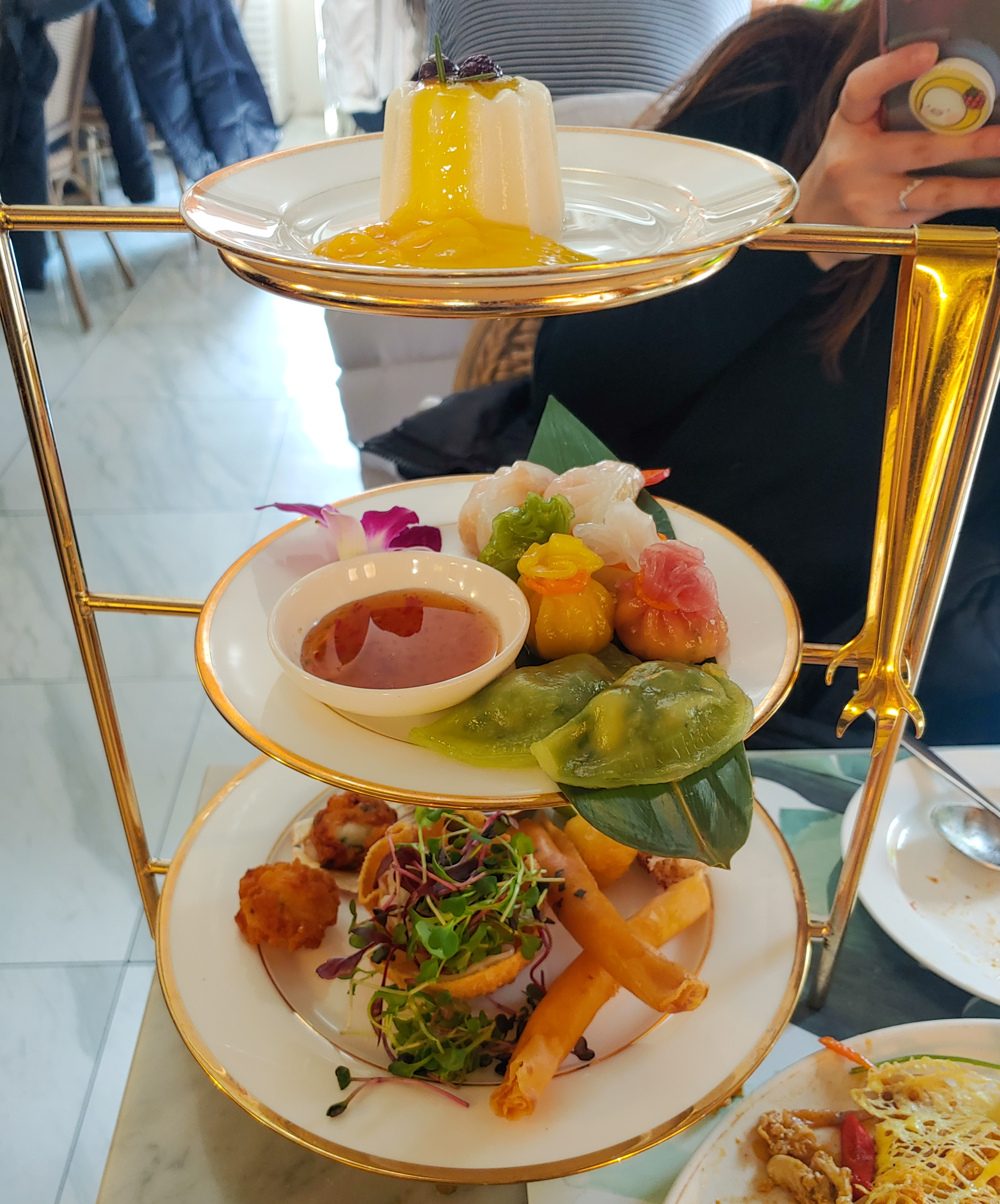 '슈림프 팟타이 오믈렛'과 '살라댕 스페셜 삼단 트레이'를 주문하기로 결정.