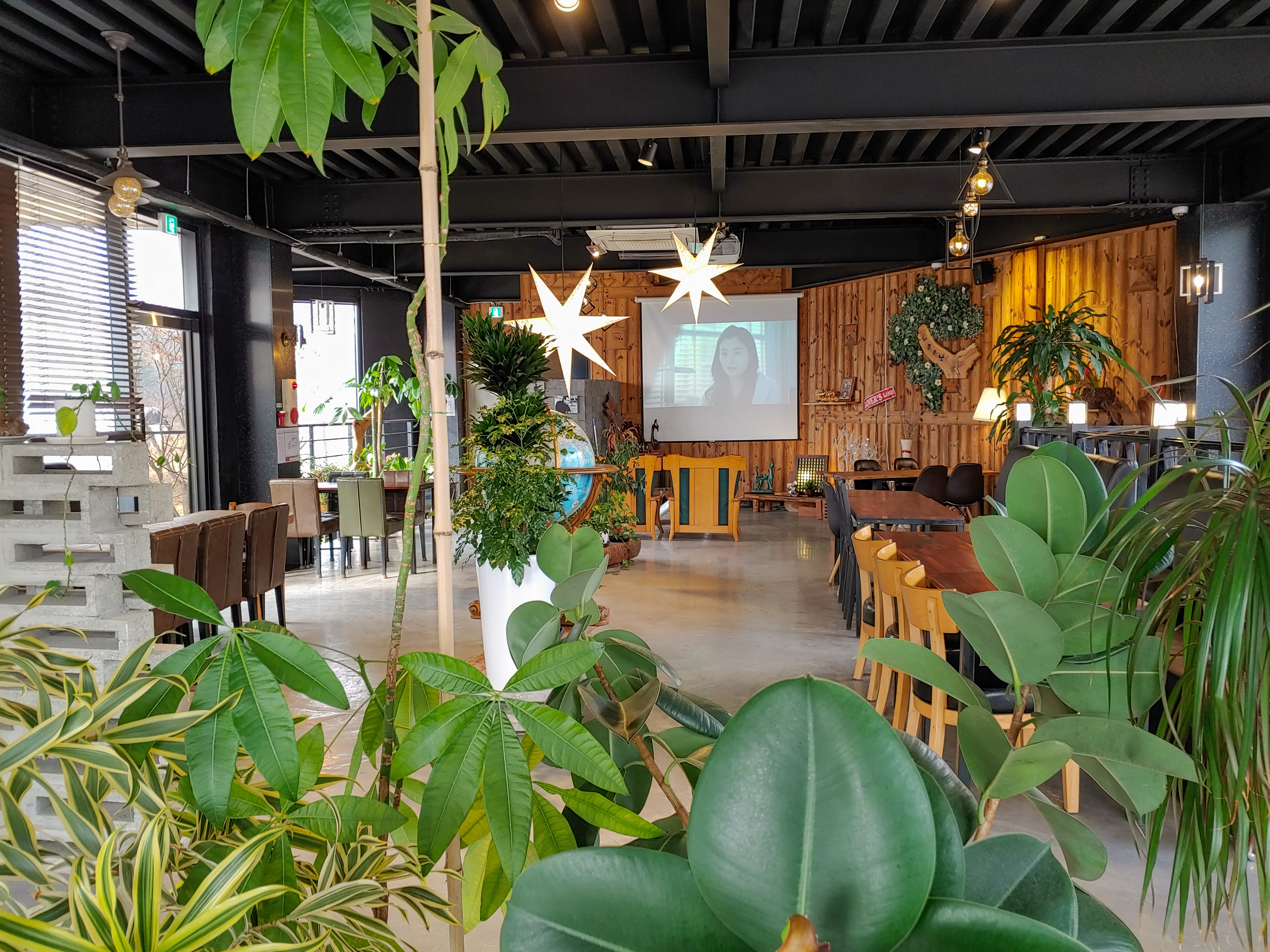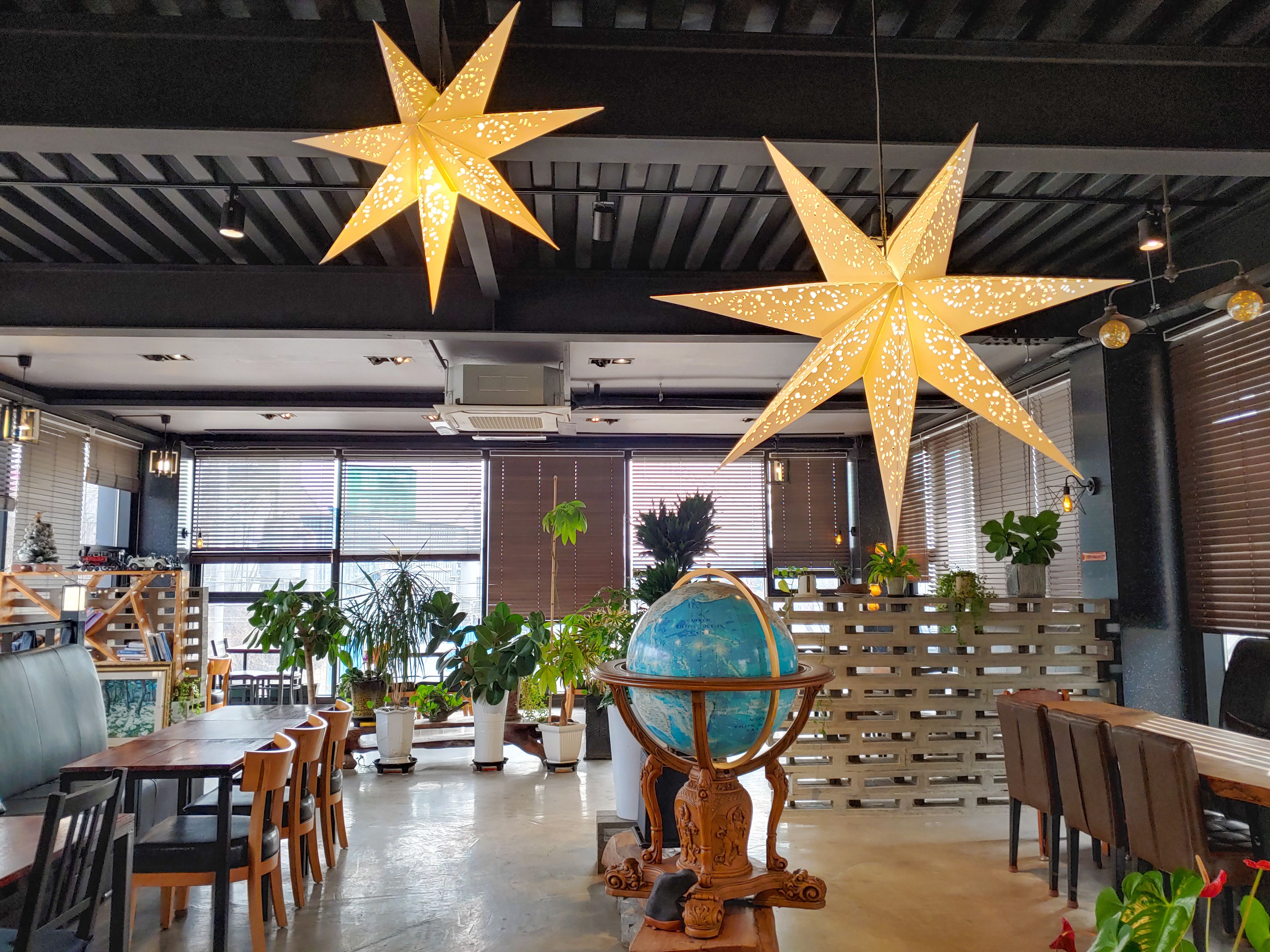 스크린이 있는 쪽에서 반대편입니다. 유독 저 별모양 조명과 지구본이 돋보입니다.