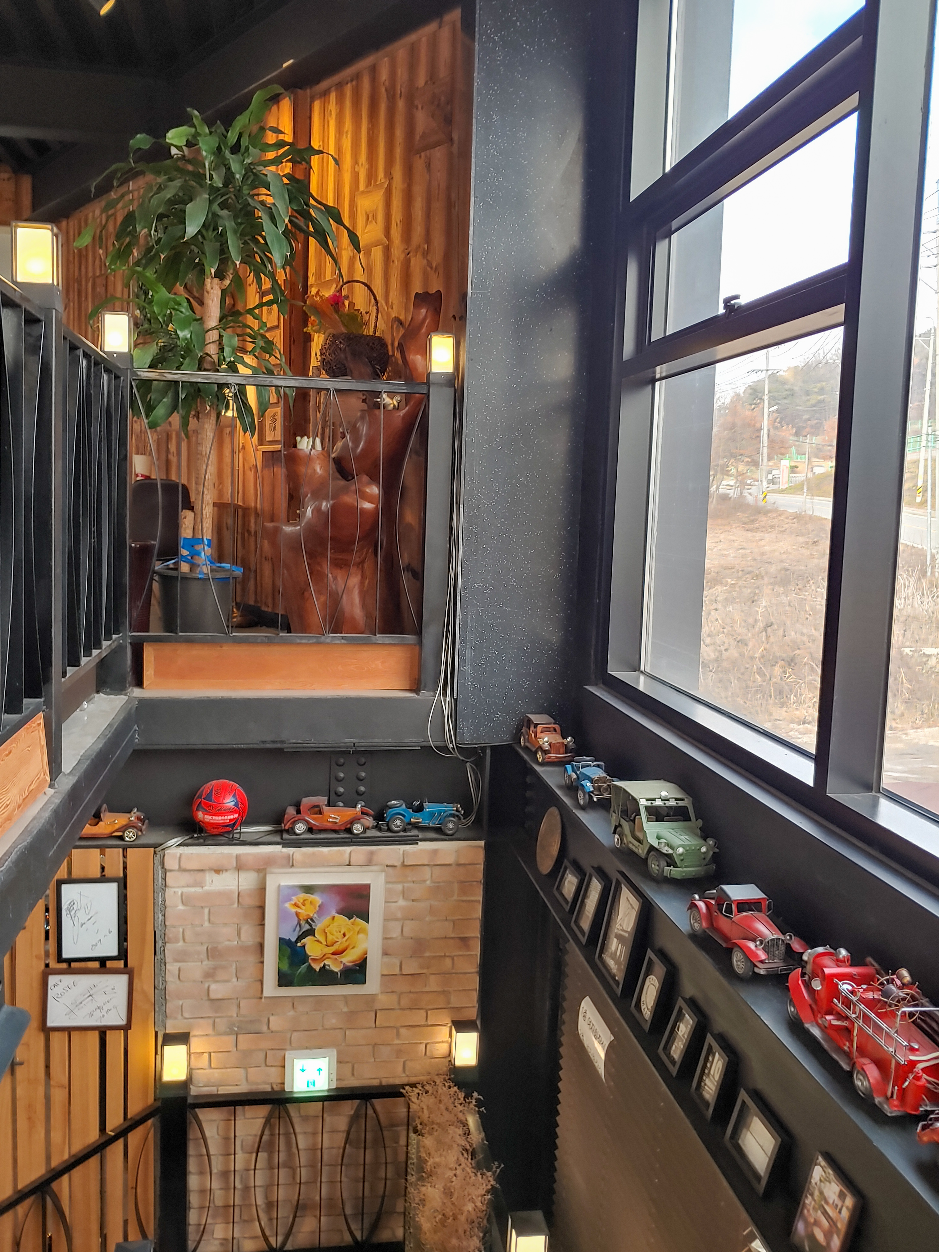 슬슬 2층으로 올라가보는데, 옛날 자동차 모형들이 굉장히 많았어요. (주인분의 취미인 듯, 그냥 카페 오브제인듯.)