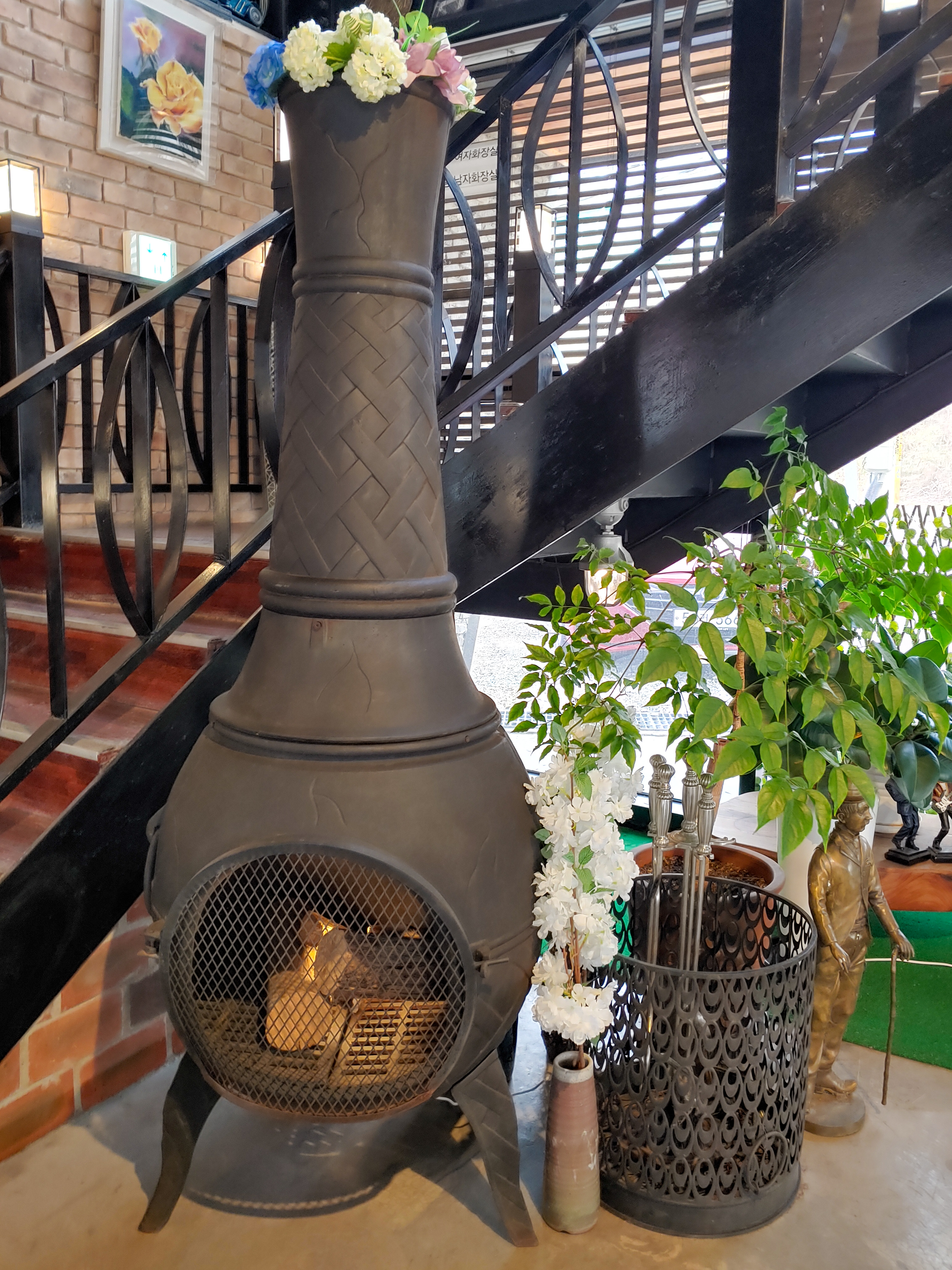 난로 오브제 안쪽에 희미하게 불빛이 보이길래, 순간 진짜 난로인 줄 알았어요. (겨울이라 불 피고 계신 줄)