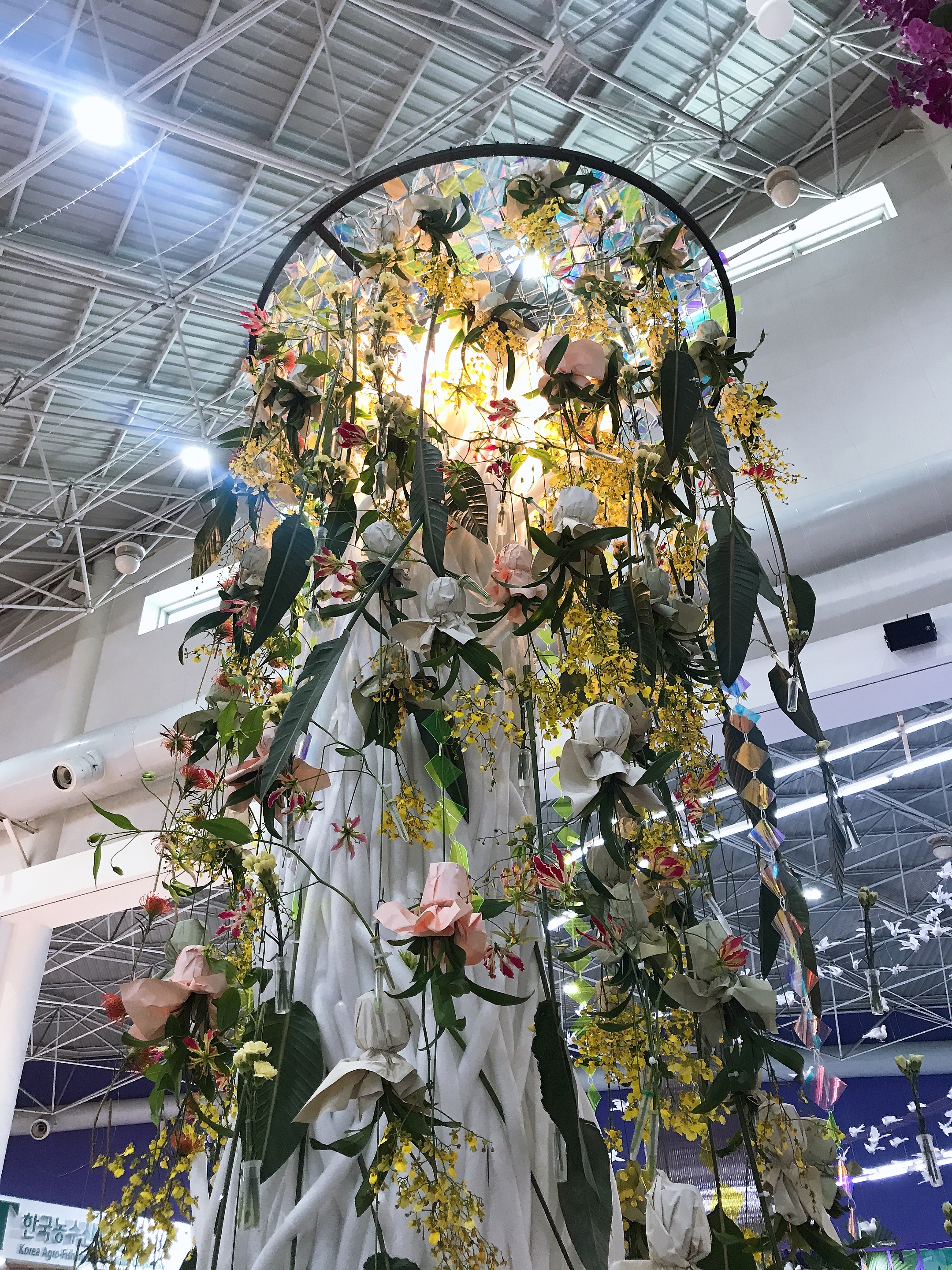 2019고양국제꽃박람회의 세계화훼교류관 입구에 들어서자 마자, 반짝반짝 조명과 색감으로 반사되는 꽃전시를 볼 수 있습니다.