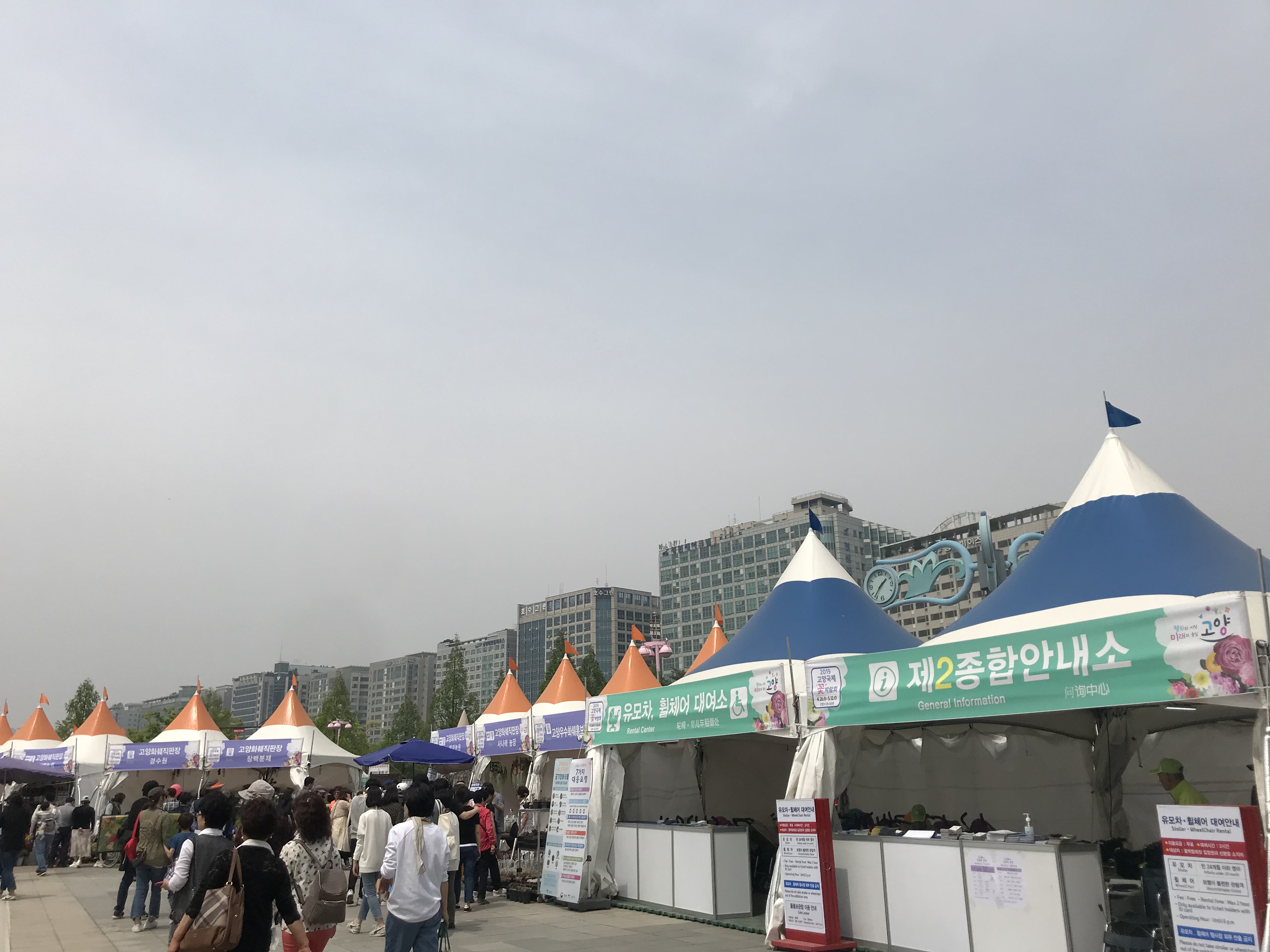 그 화훼교환권을 쓸 수 있는 곳이 주황색 천막입니다.