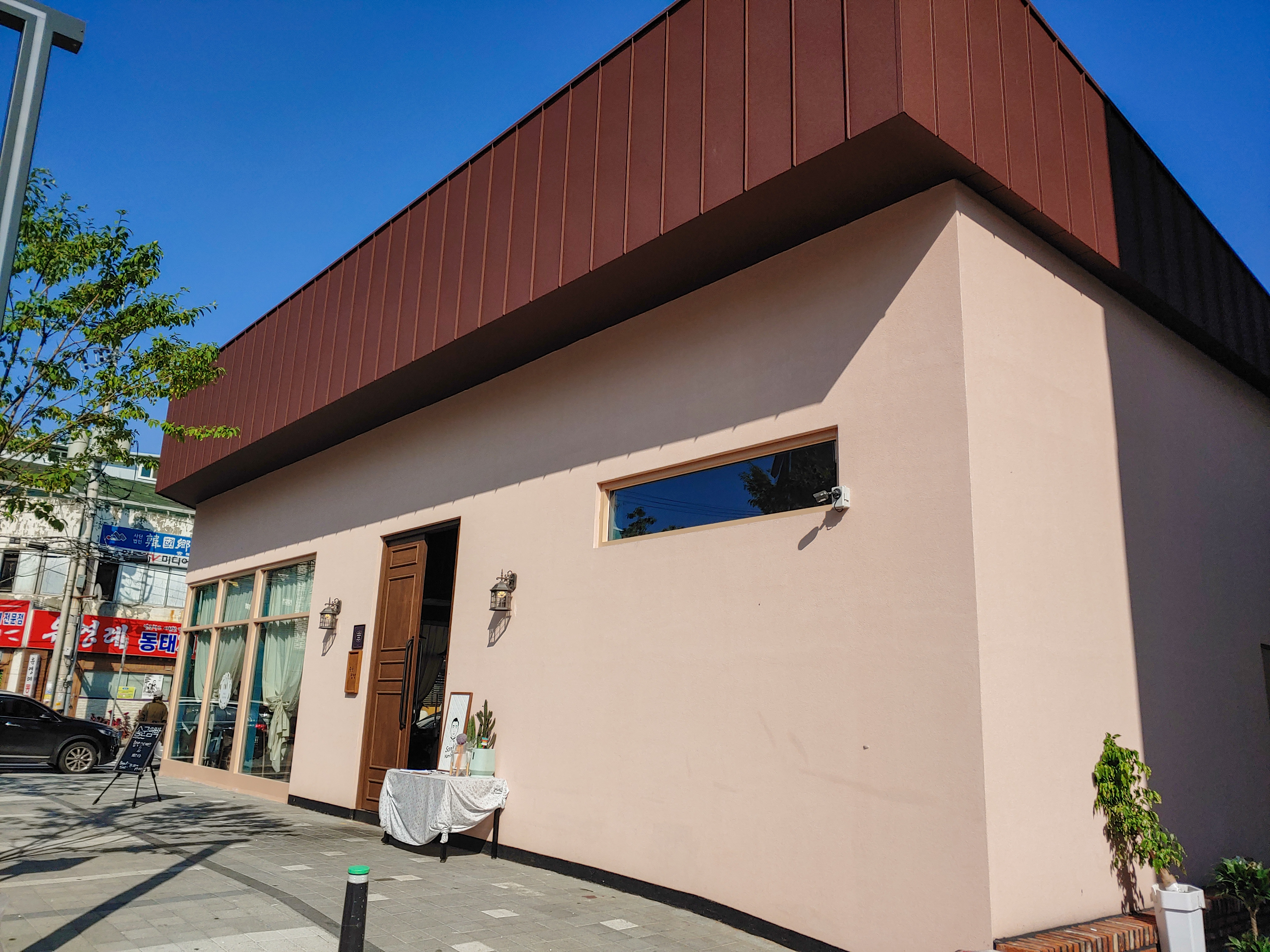 점심으로 어디를 가볼까 청주 시내를 어슬렁 거리던 중, 핑크빛 건물이 유독 돋보이는 건물.