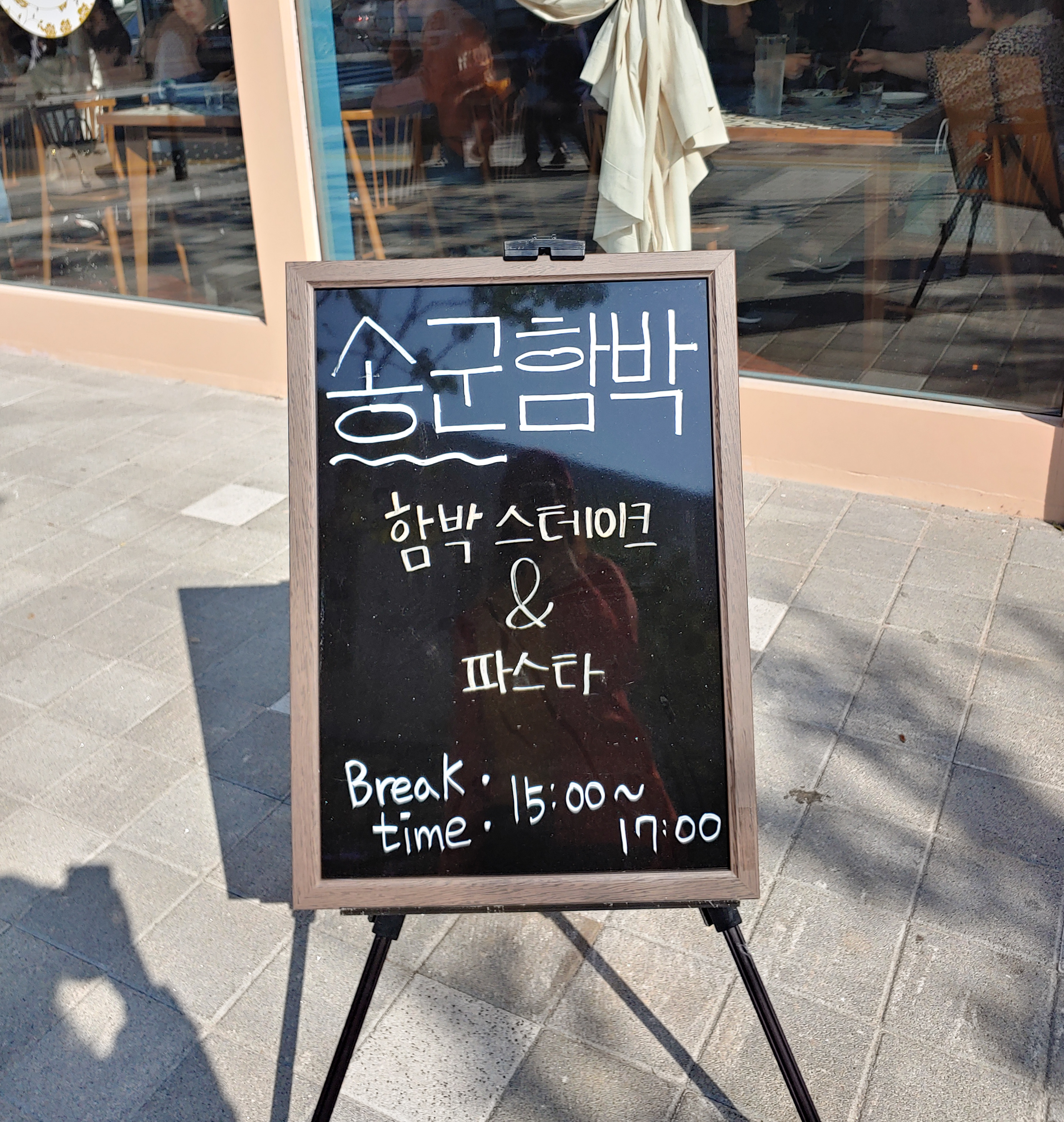 새삼 '송군함박'에서 식사를 끝나고 나가면서도 느꼈지만 확실히 (어디든) 창가석이 빛도 비춰지고 사진찍기에도 좋은 자리였어요. 비교적 오고가는 직원이나 사람들이 건물 끝인 창가석으로 동선이 이뤄지지 않아서 편한 점도 있었어요.