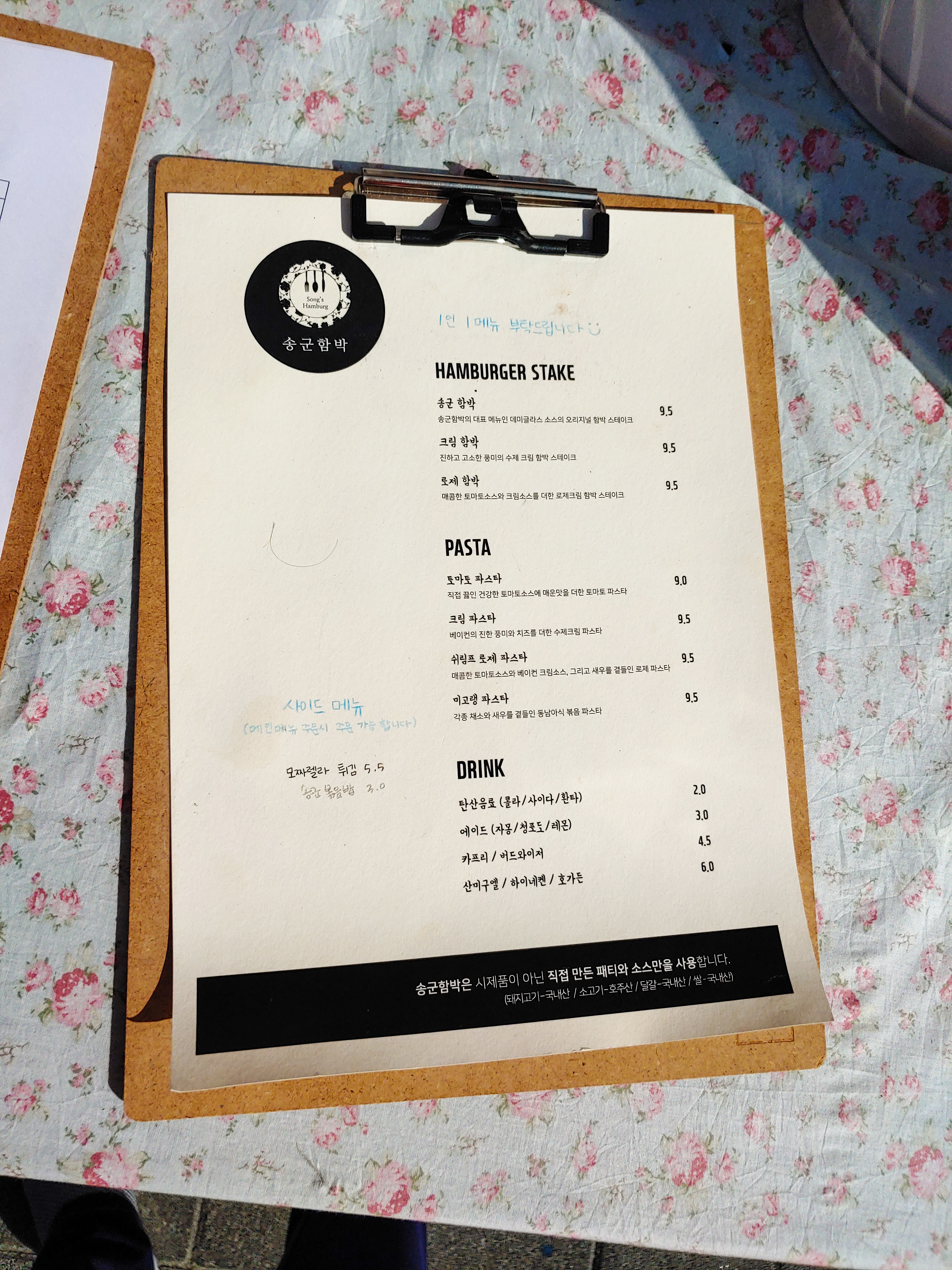 함박 스테이크는 제 취향이 아닌 건지, '송군함박'이나 '크림함박'이나 똑같이 분명 맛없진 않으나 수제 햄버거 패티가 생각이 나요.