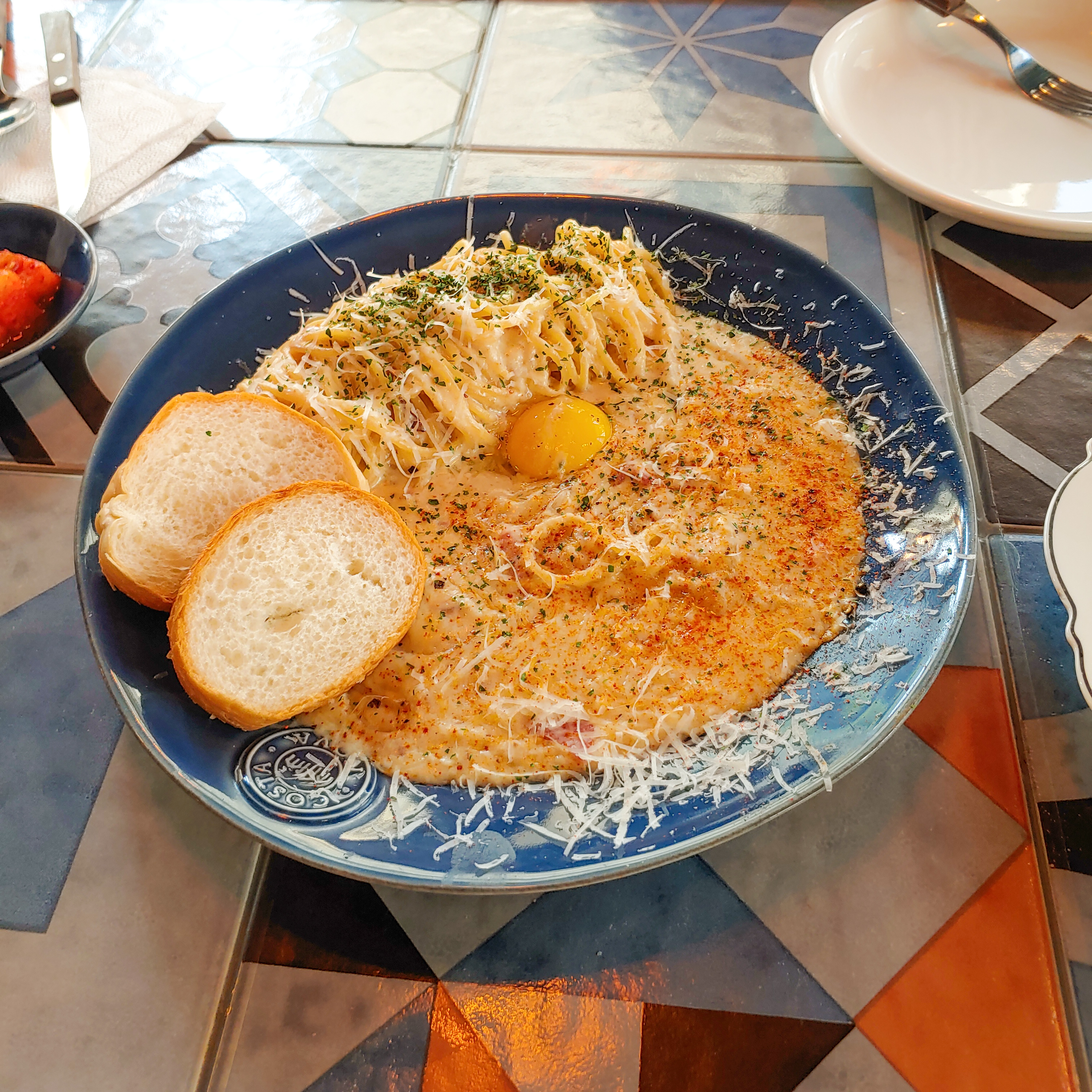 처음에 '크림 파스타'에 뿌려져 있는 양념 가루(?)를 보고, 크림 파스타가 아닌 줄 알았어요.