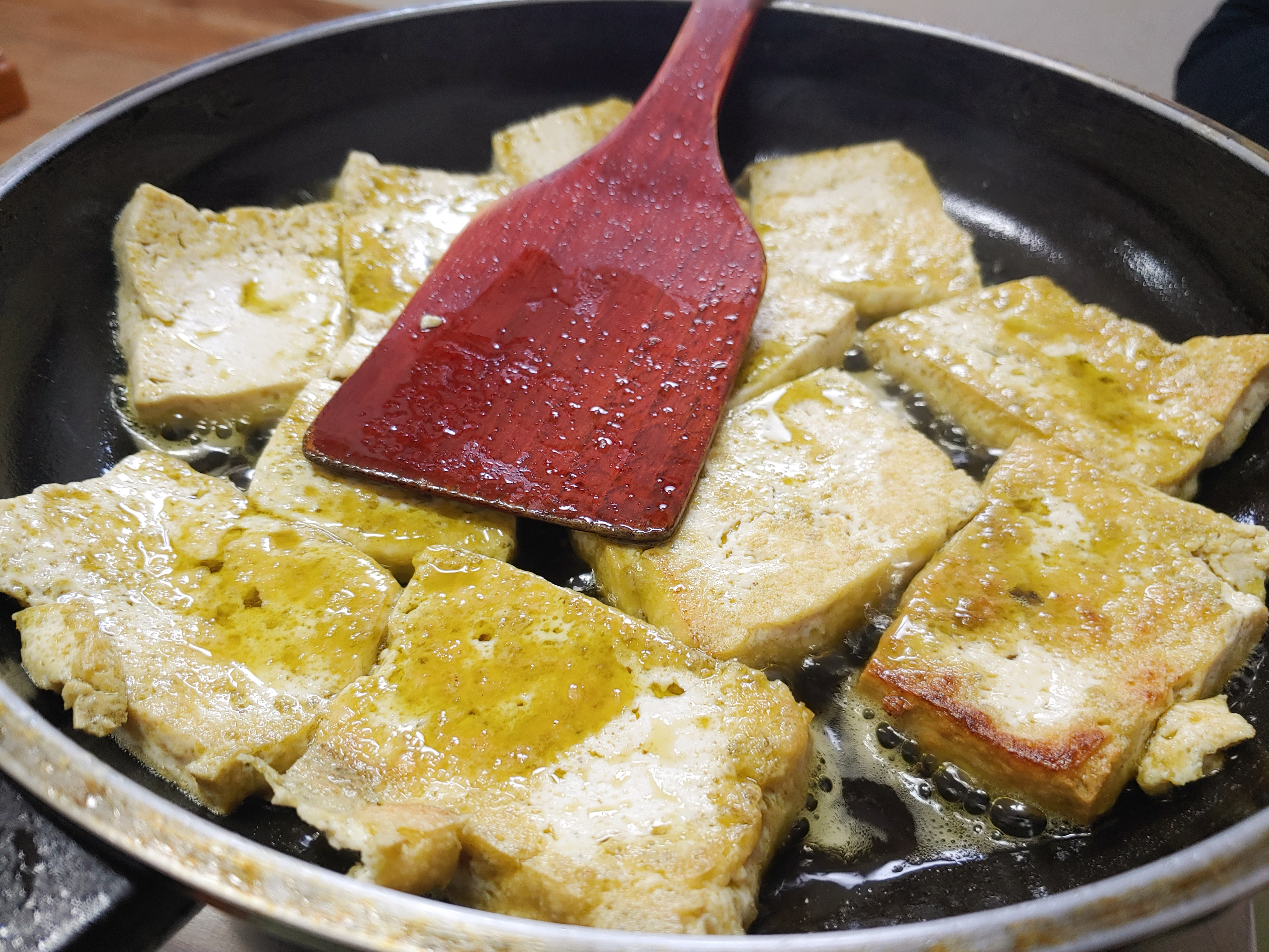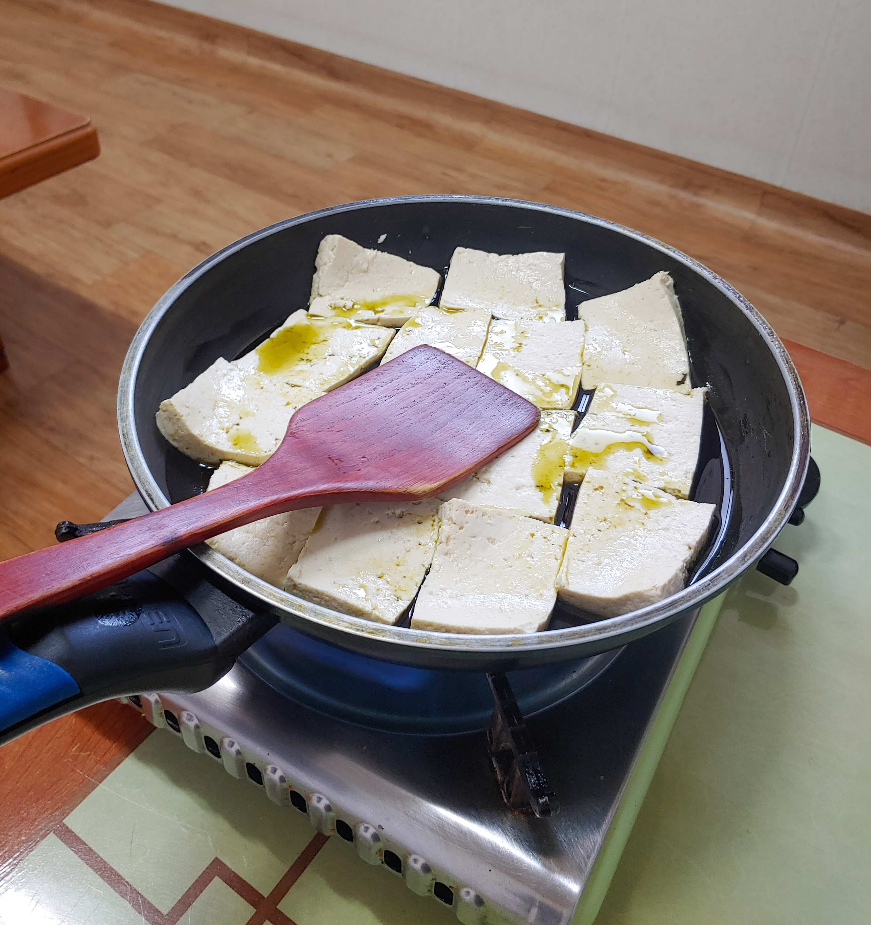 산초기름이 돋보이는 두부를 부치고 있습니다.