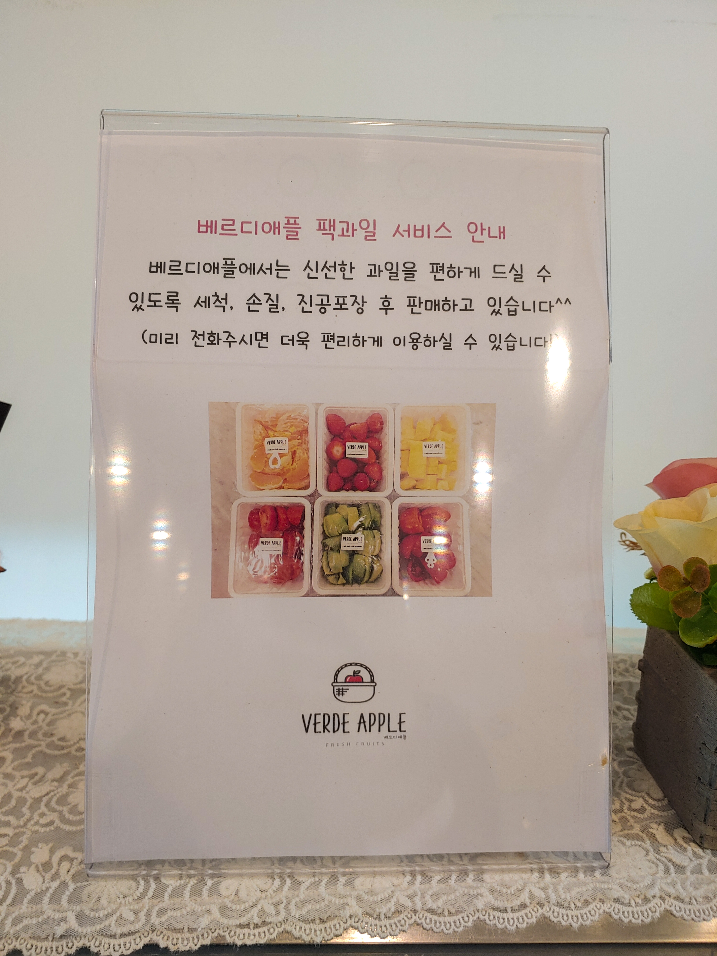 제가 카페에 오면 꼭 카페라떼는 마시고 가는데, '베르디 애플'에서는 과일 음료를 전적으로 마셔야 합니다.