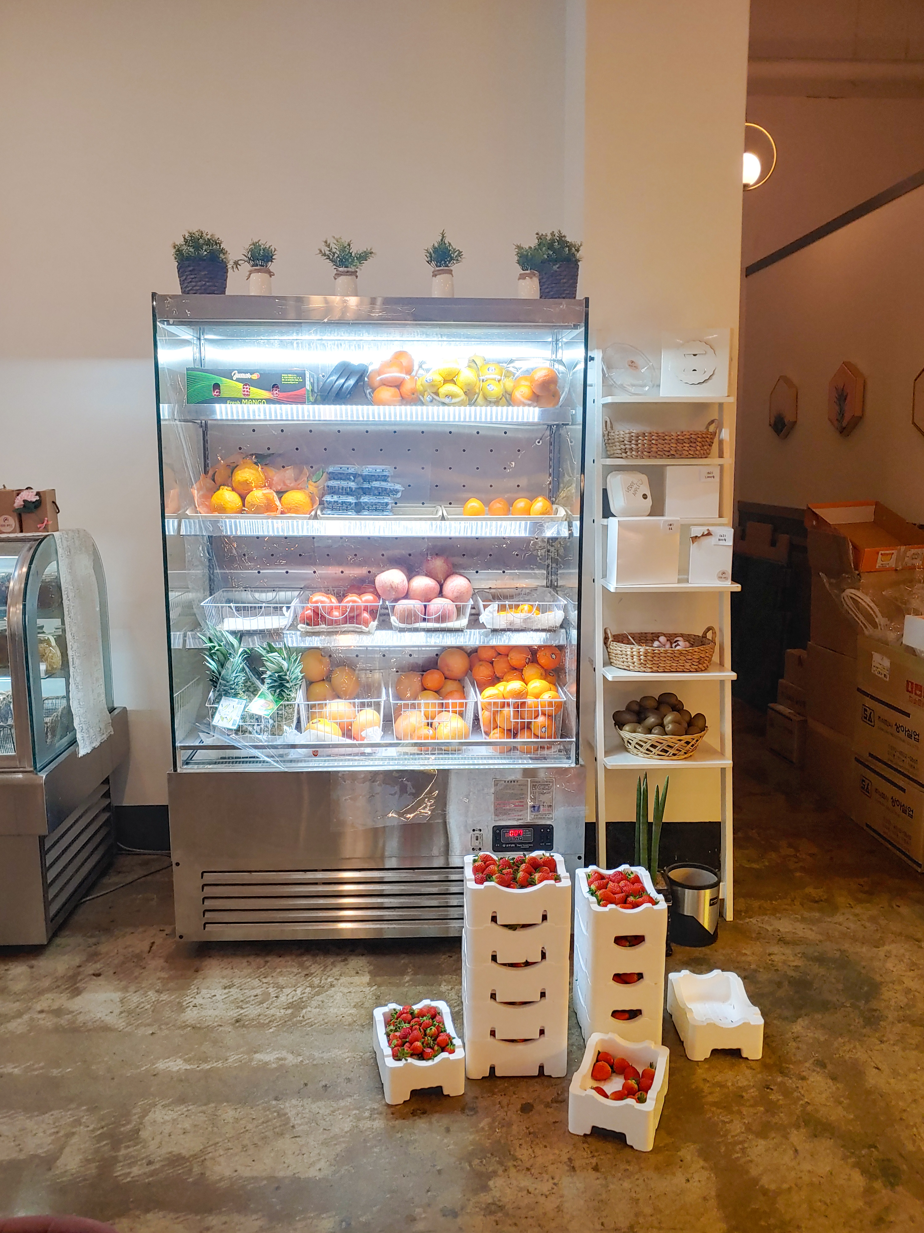 날씨가 흐려서 그런지, 내부 자체는 조금 어두운 편이었어요. 채광은 오로지 입구쪽에만 있는 창문으로만 들어오더라구요. (과일의 신선도를 위해서 햇빛이 많이 비치면 안될 것 같기도 해요.)