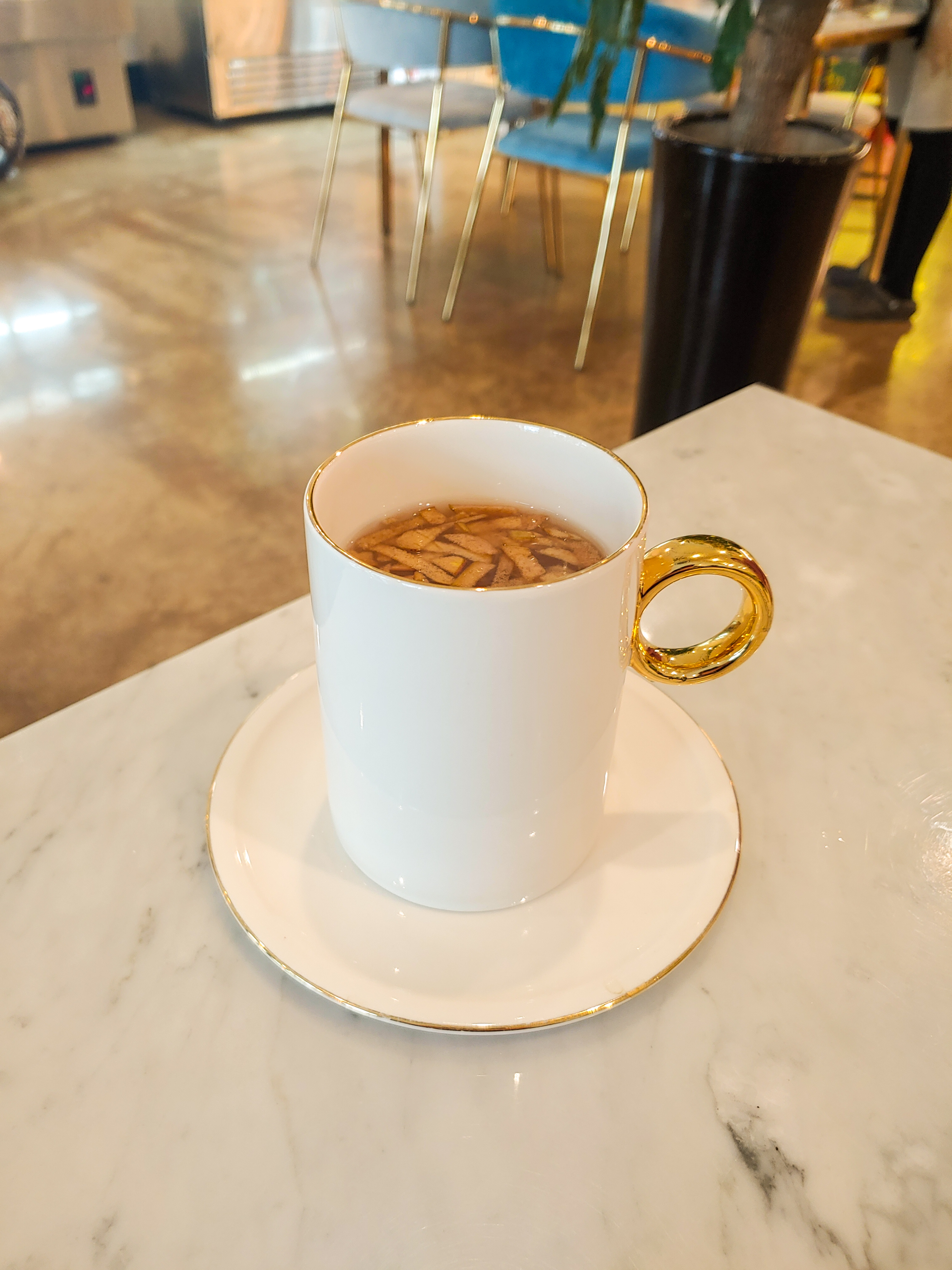 친구가 주문한 사과 생강차. 생각보다 생강의 매운 맛은 별로 없었어요. (저도 살짝 맛보았습니다.)