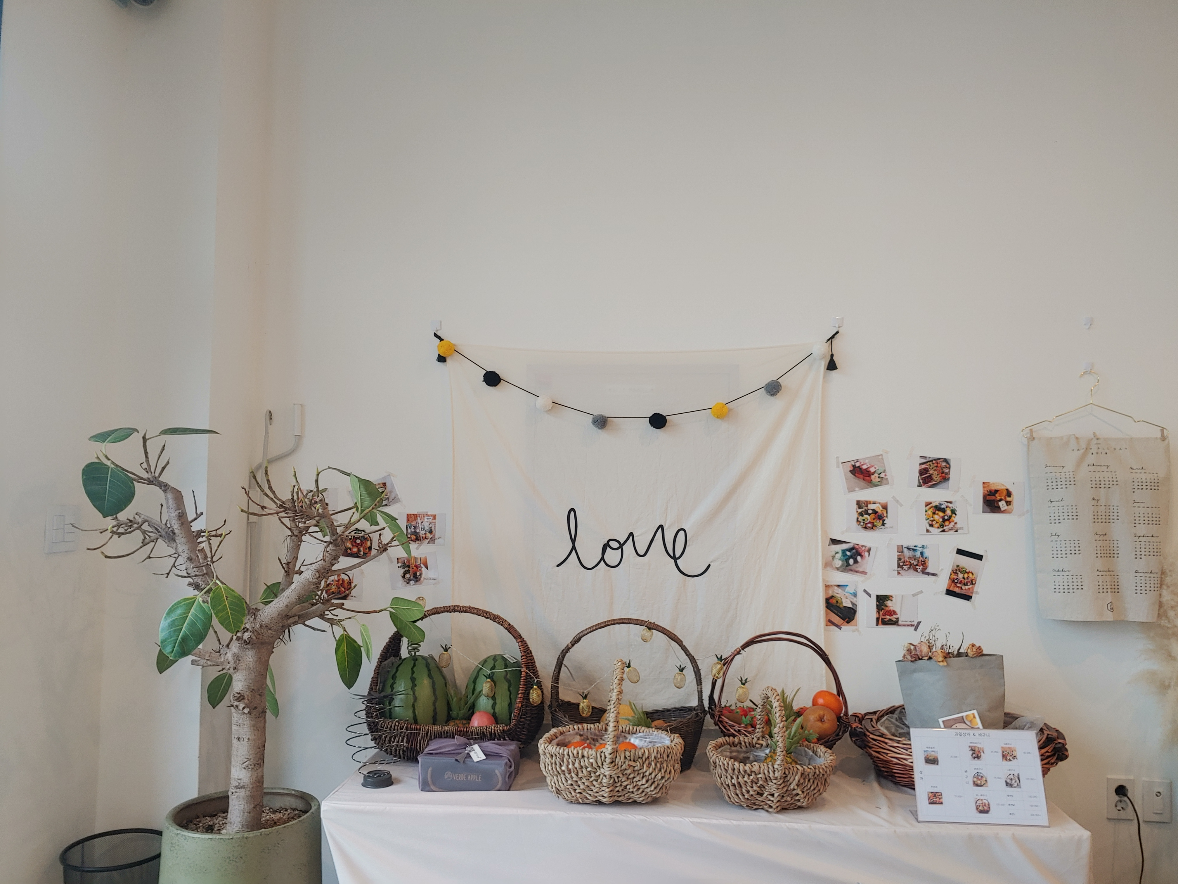나름 이벤트할 때 쓰일 것처럼 과일과 함께 꾸며놓으셨어요.