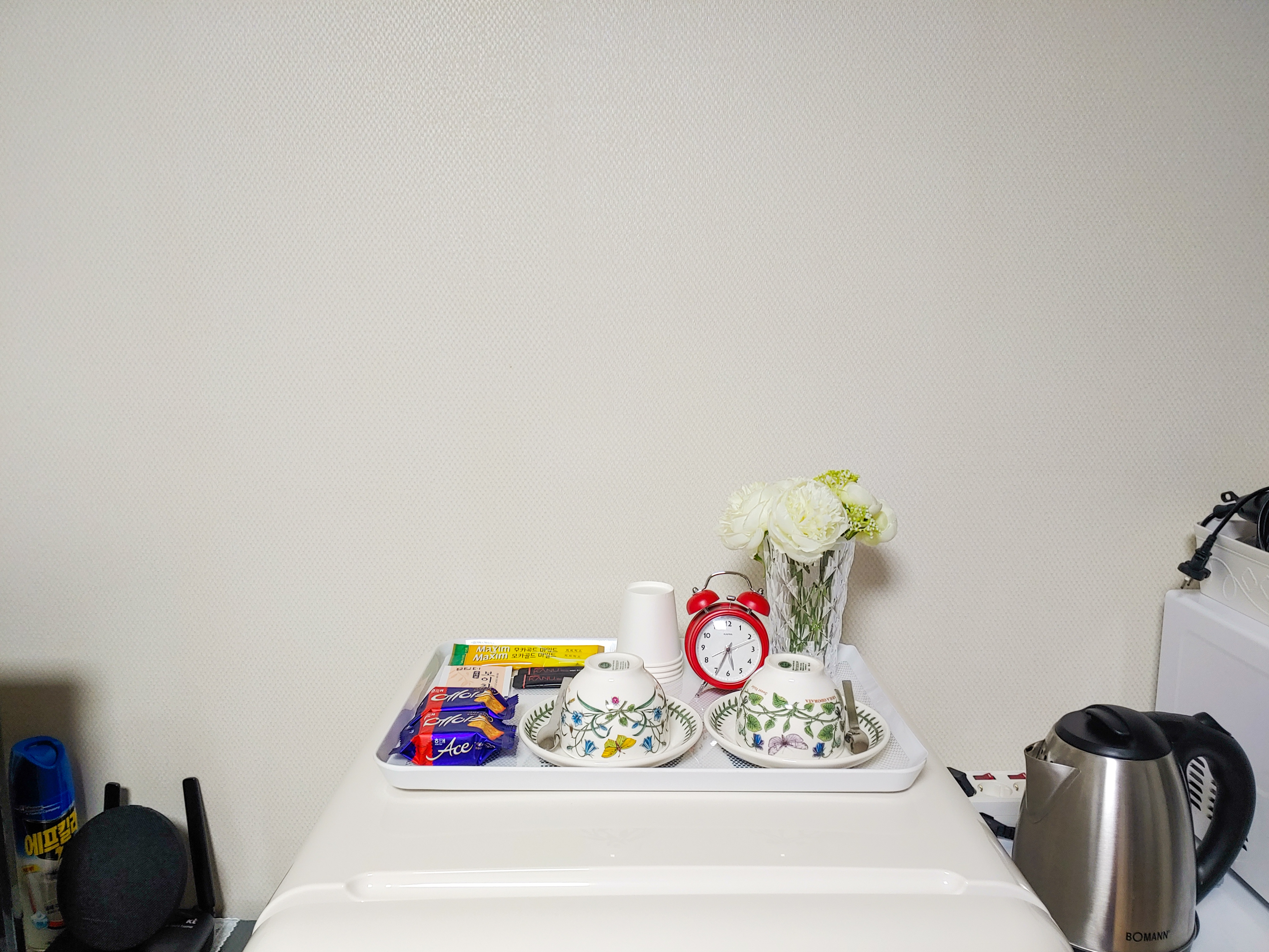 냉장고 위에도 귀엽게 올려져 있는 커피믹스와 에이스. (에이스 맛있게 먹었습니다.)