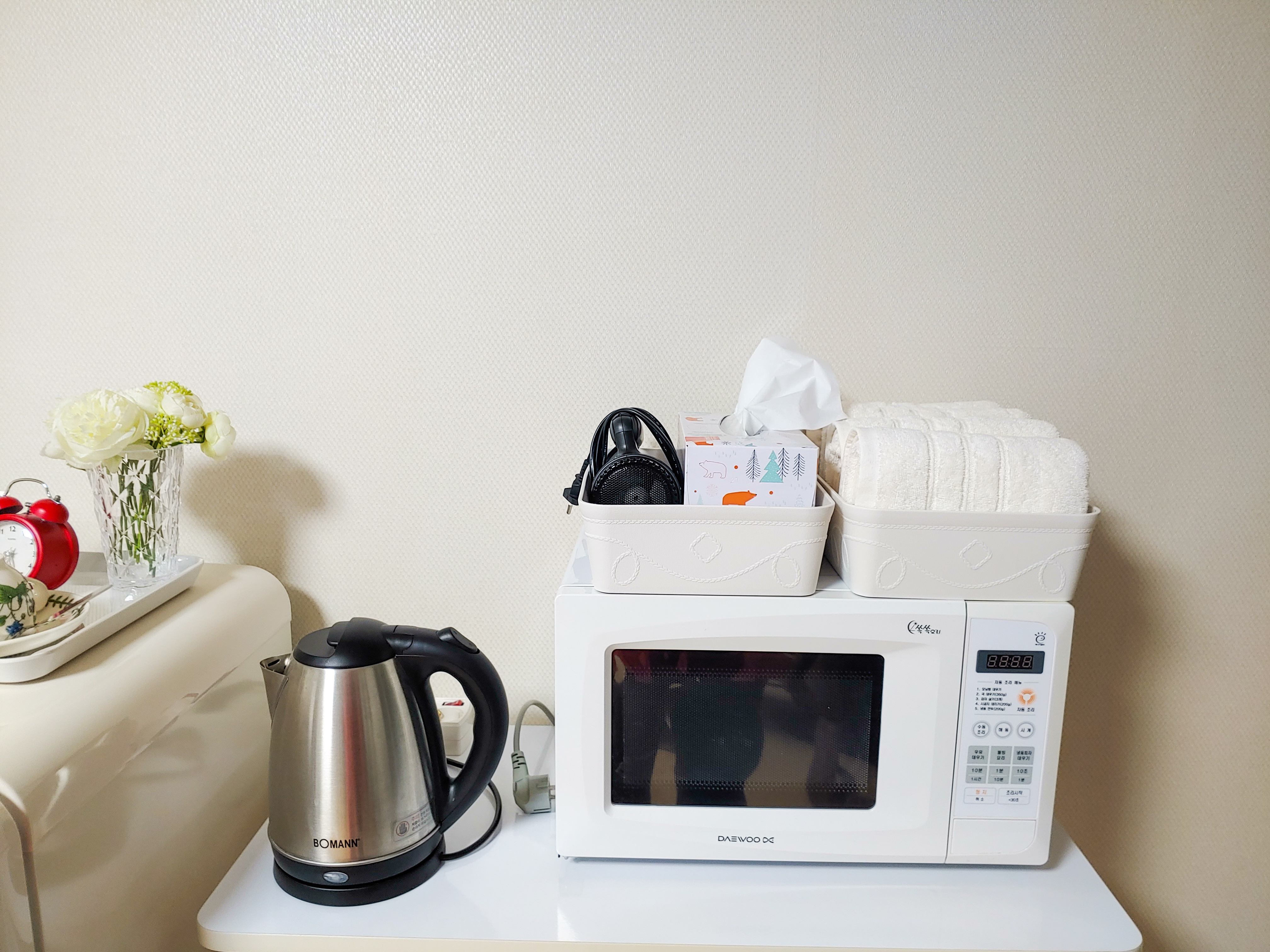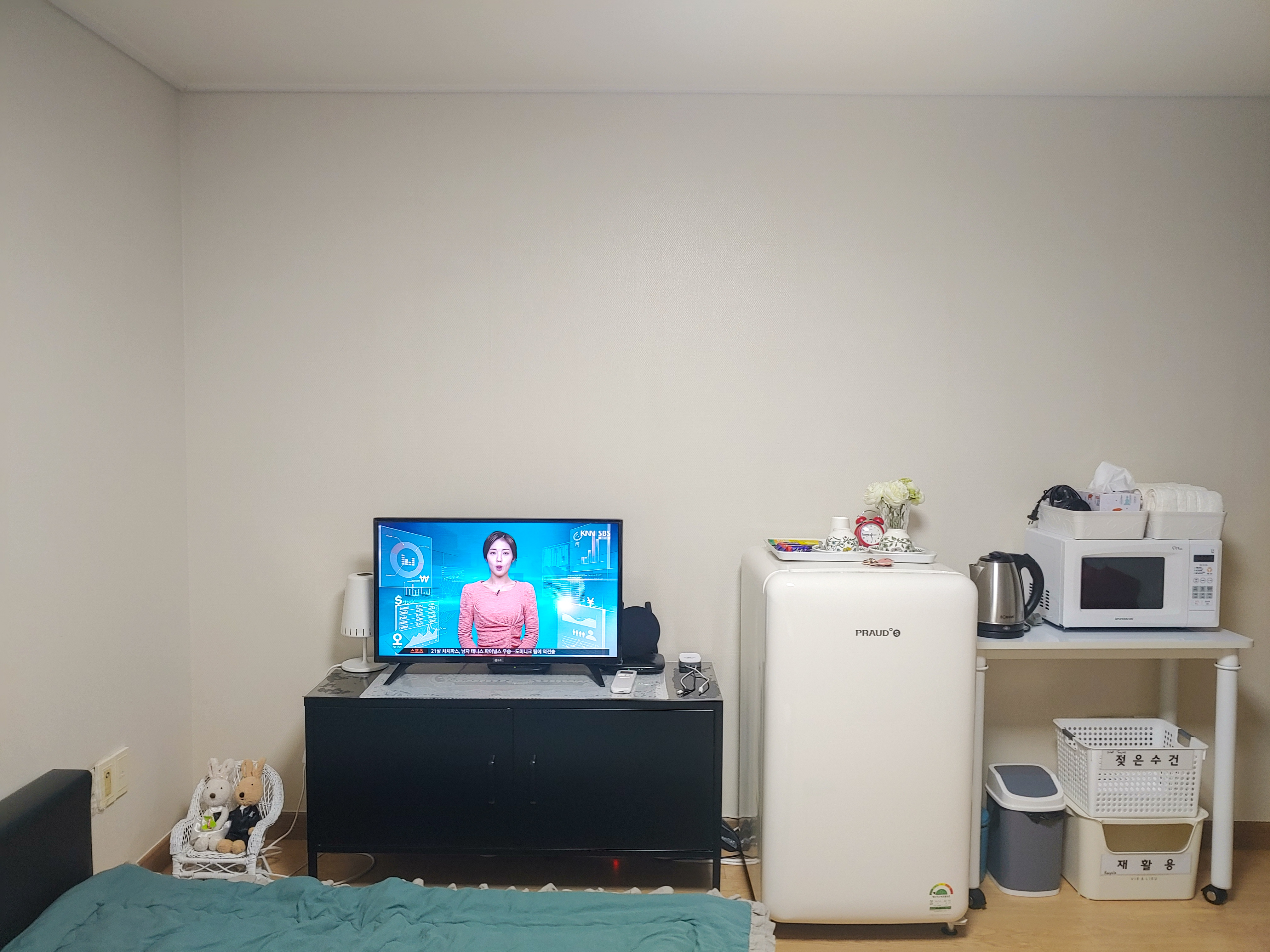 취사는 안되어도 냉장고와 전자레인지가 있어서 간단히 요기하기엔 좋았어요.