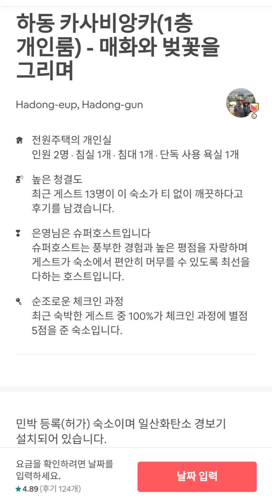 그리고 찾은 하동 에어비앤비.