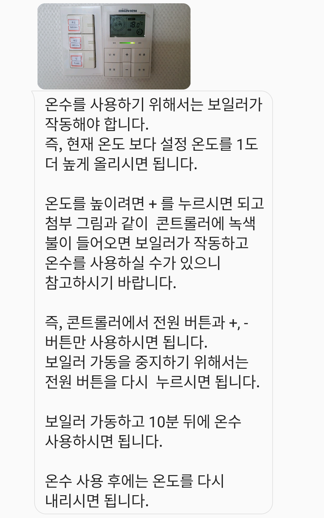 사장님은 보일러나 화장실 주의사항 등 여러가지를 알려주시고 질문도 받고 대답해주시더니 쿨하게 나가셨습니다.