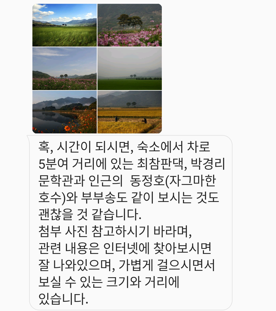 체크인 당일. 아침부터 띠링띠링 하동 카사비앙카 사장님께서 장문의 정보를 또 보내주셨습니다.