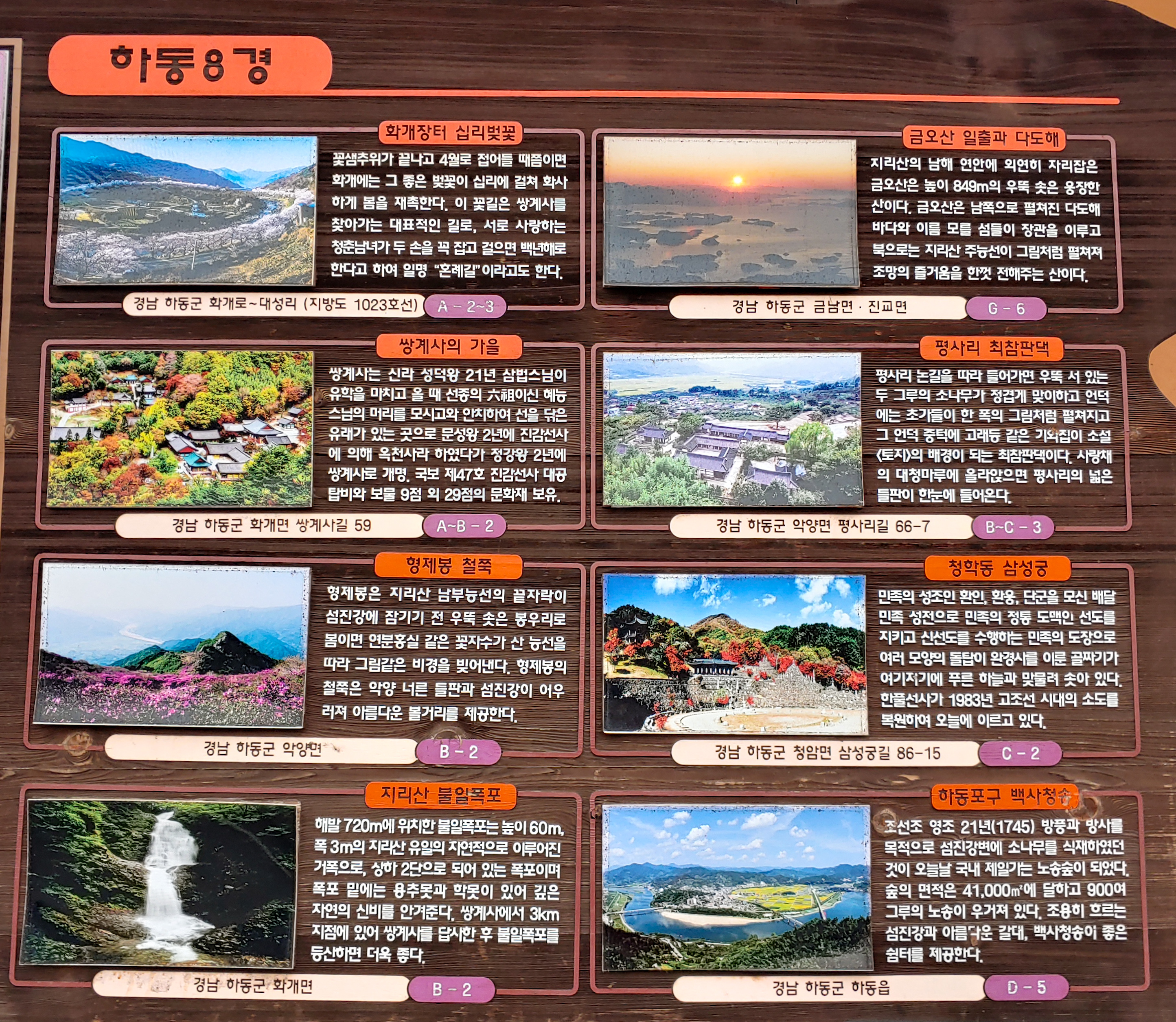 화개장터 주차장 입구쯤에 화동 8경에 대한 설명과 지도가 있습니다.