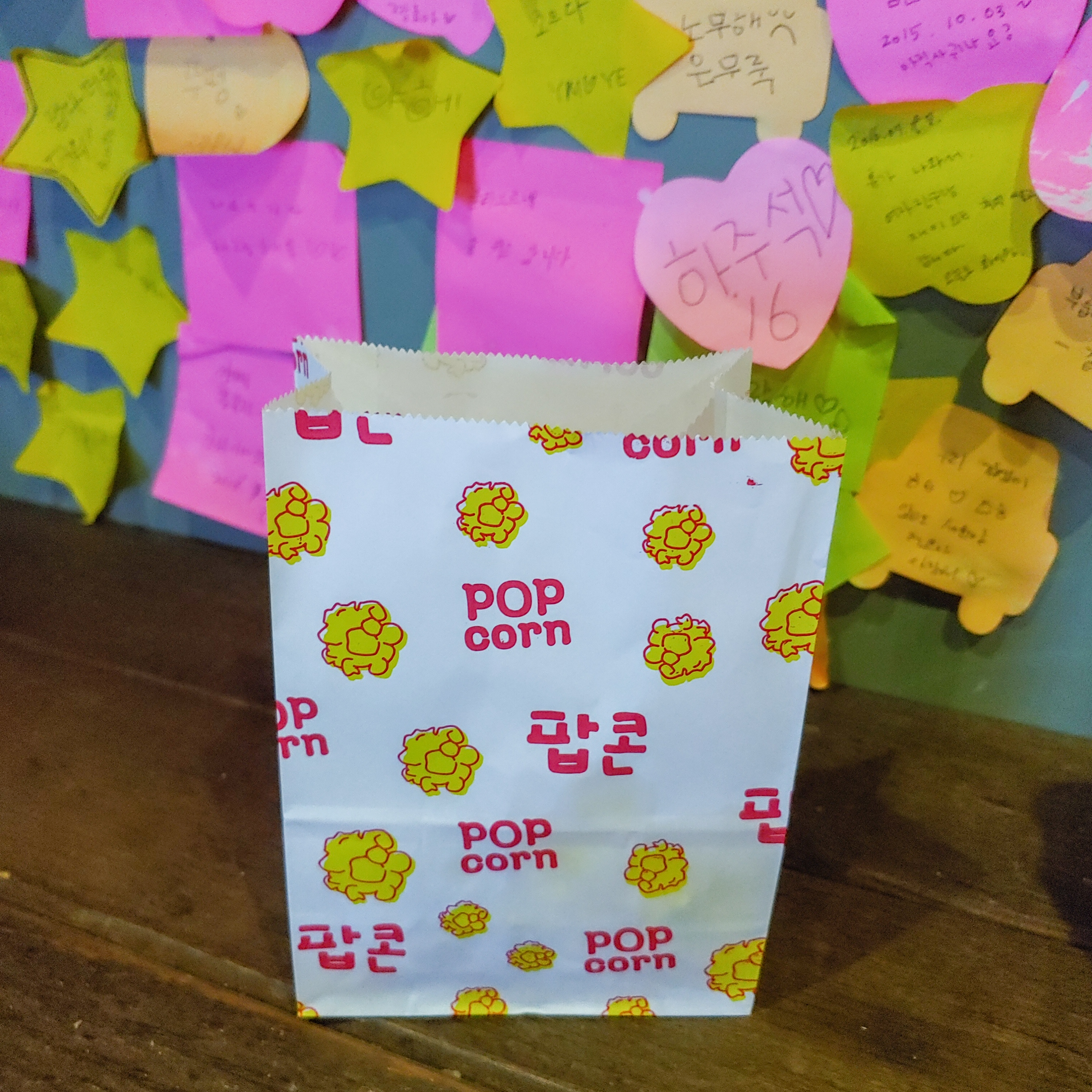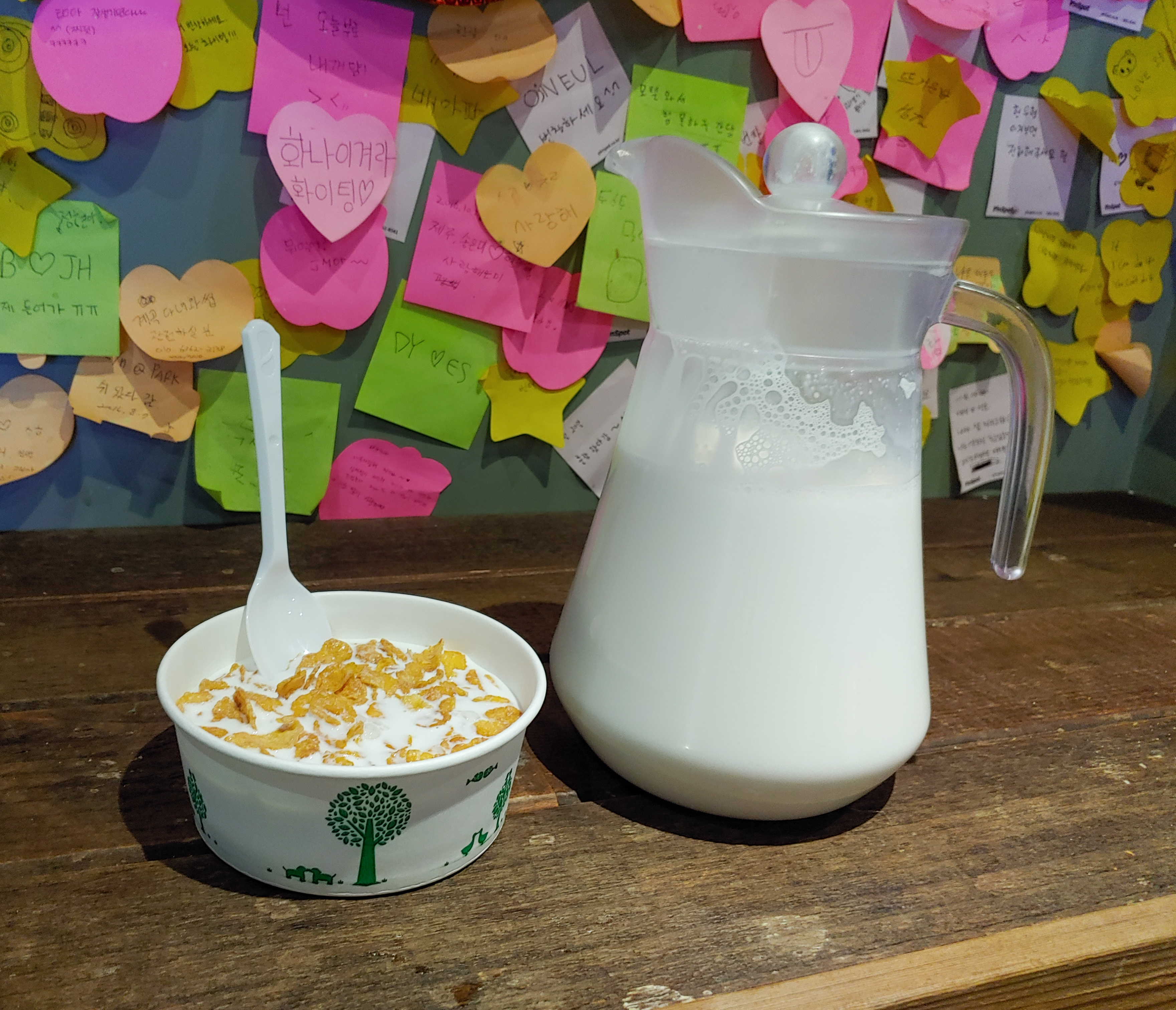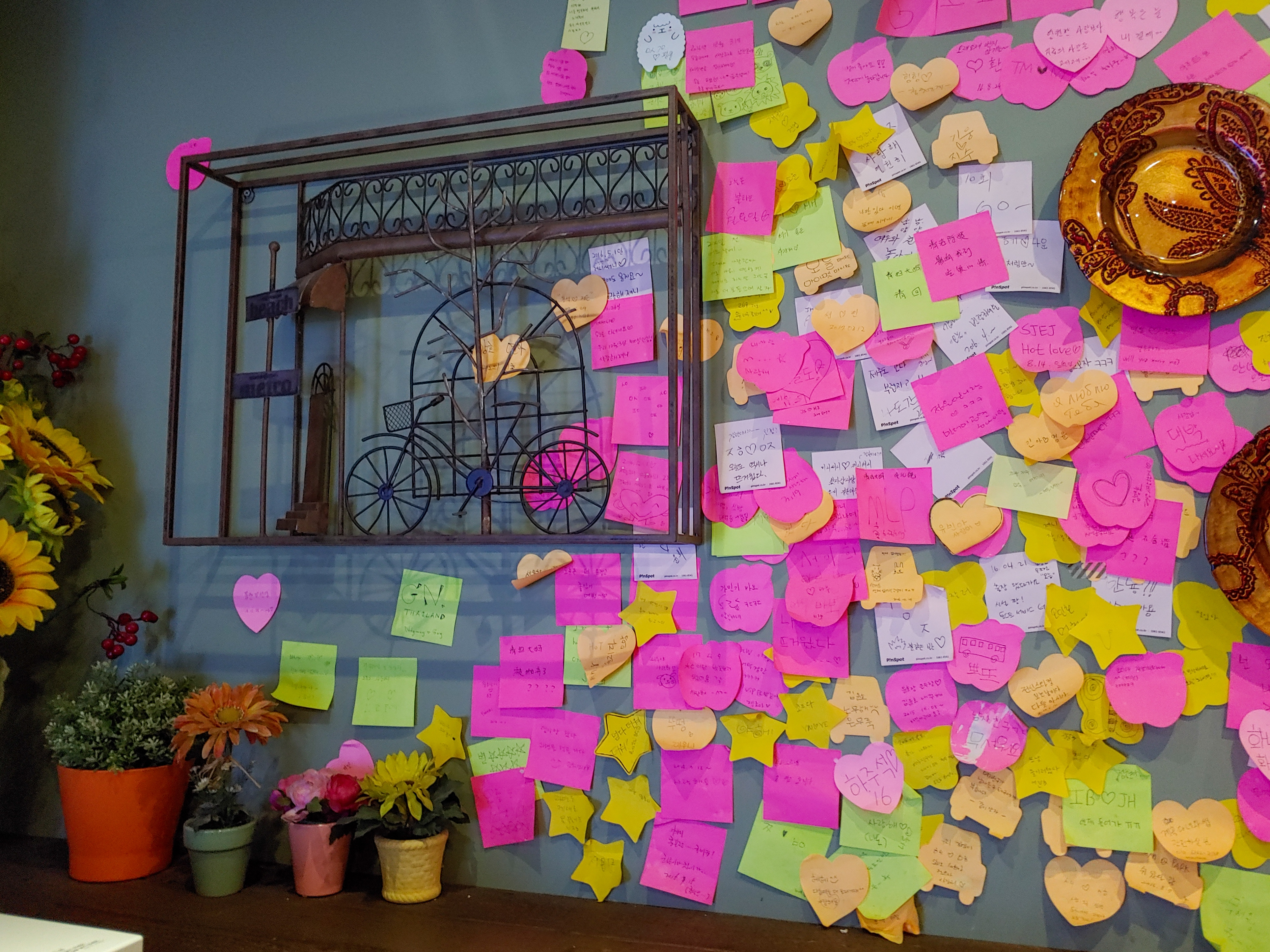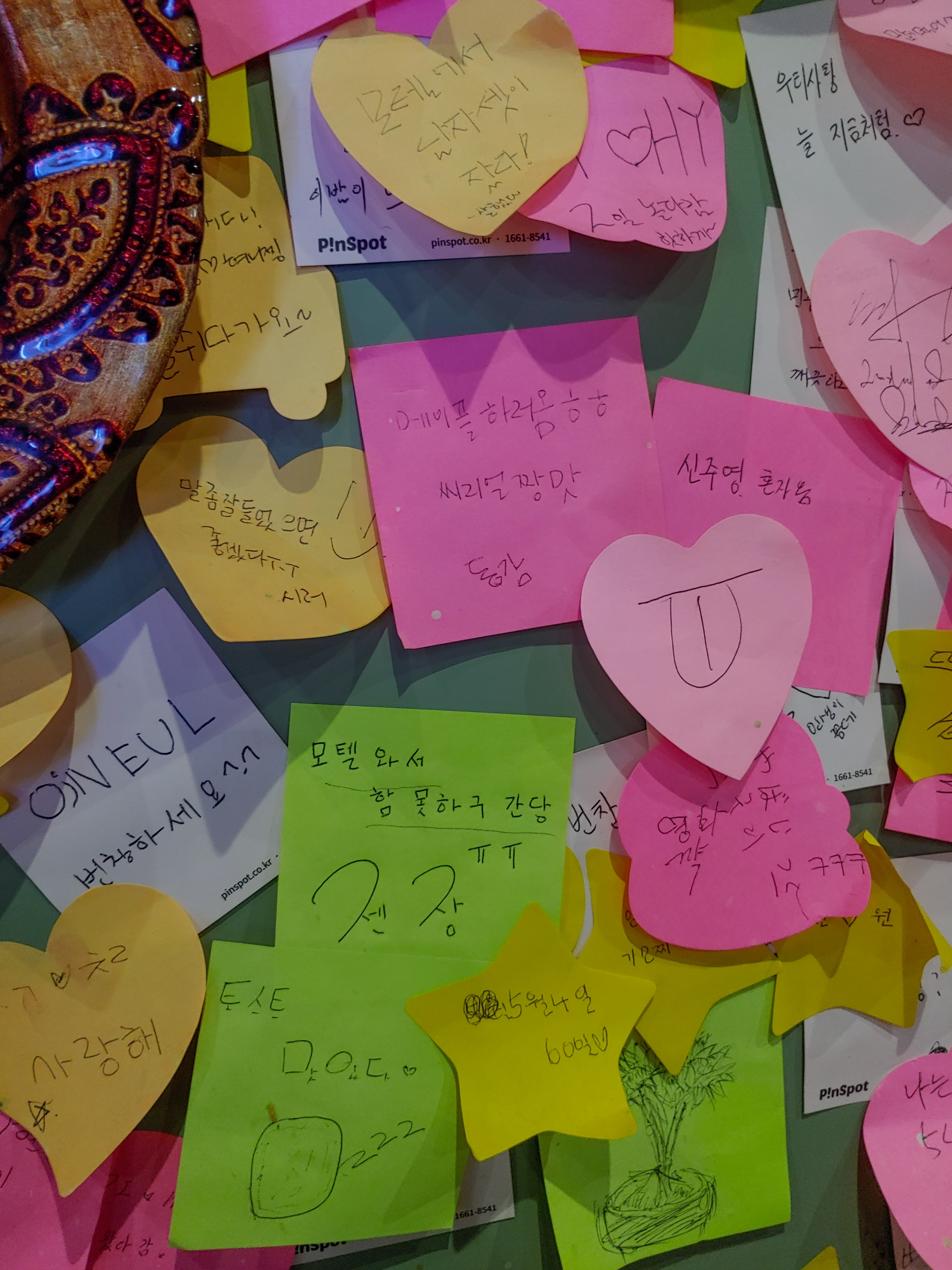 사람들이 써놓고 간 포스트잇도 먹으면서 구경했어요.