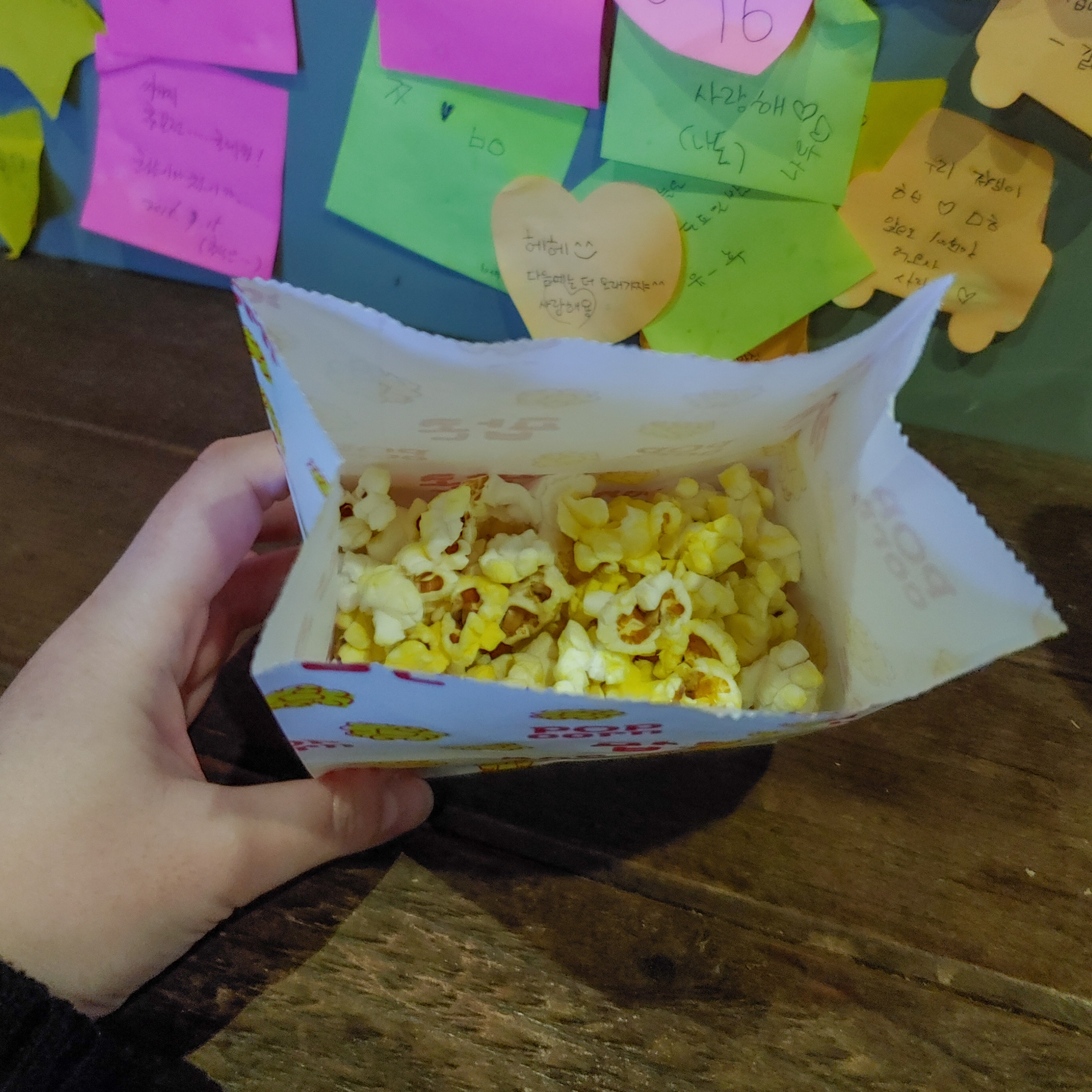 토스트와 우유과자를 다 먹고도 욕심이 생겨 팝콘을 먹었습니다.