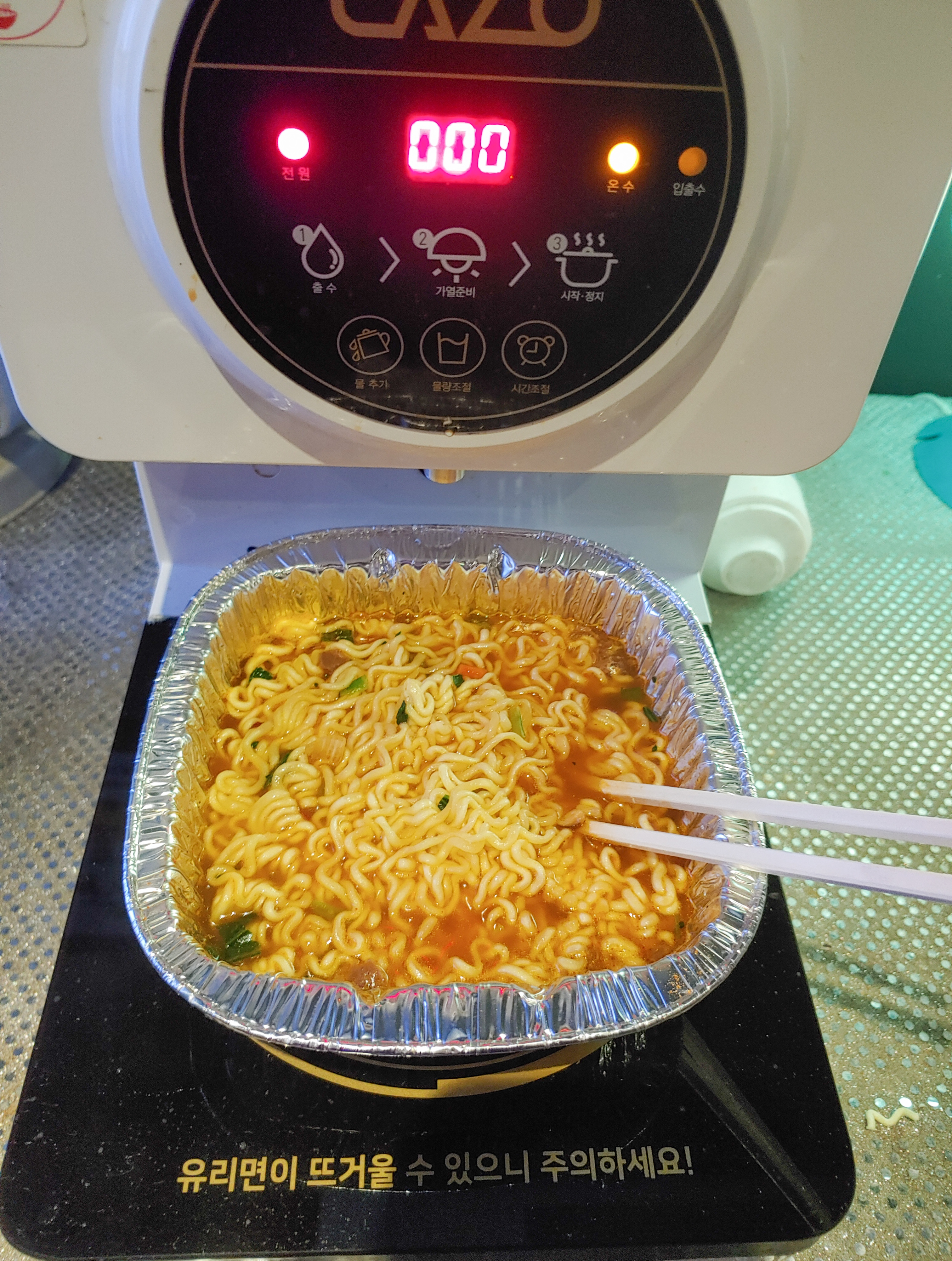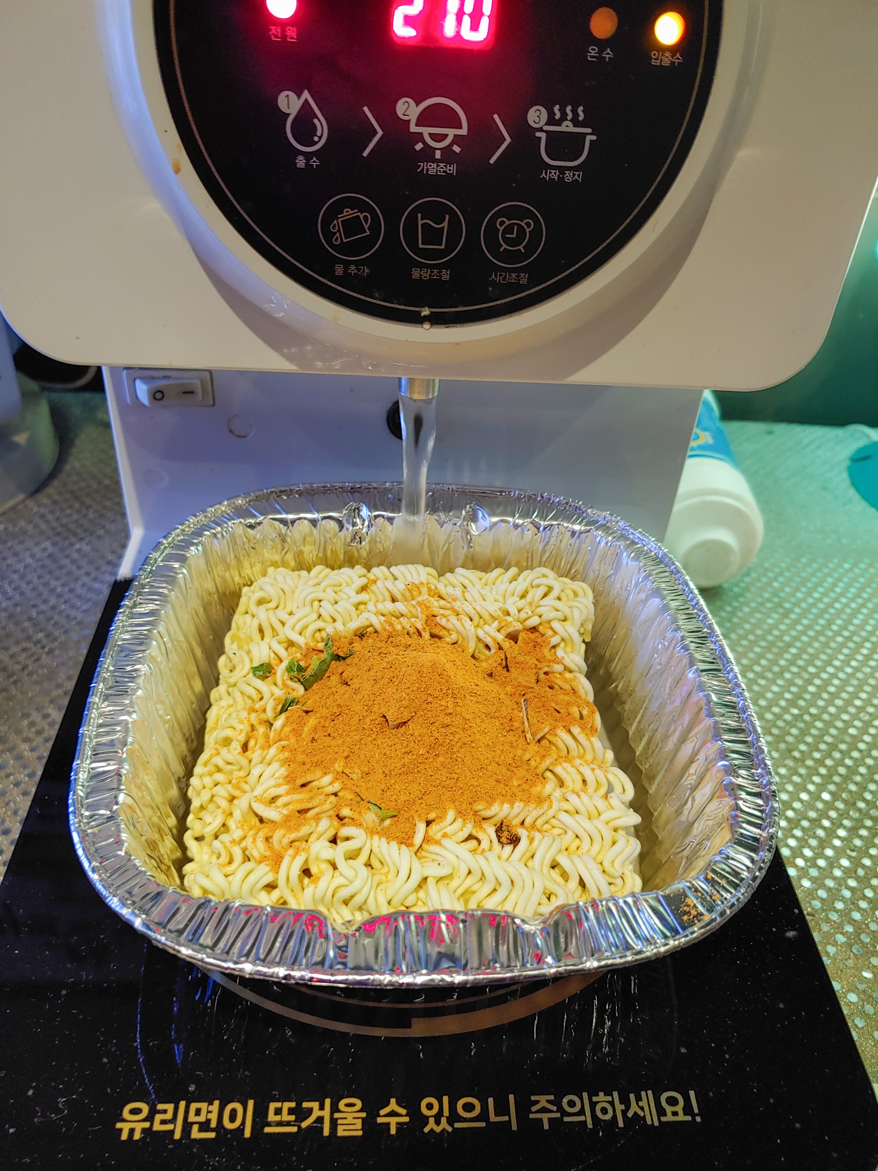 가열되면서 끓는 걸 보니 인덕션인 거 같더라구요. 물이 쪼르르 내려오면 보글보글 끓여 줍니다.