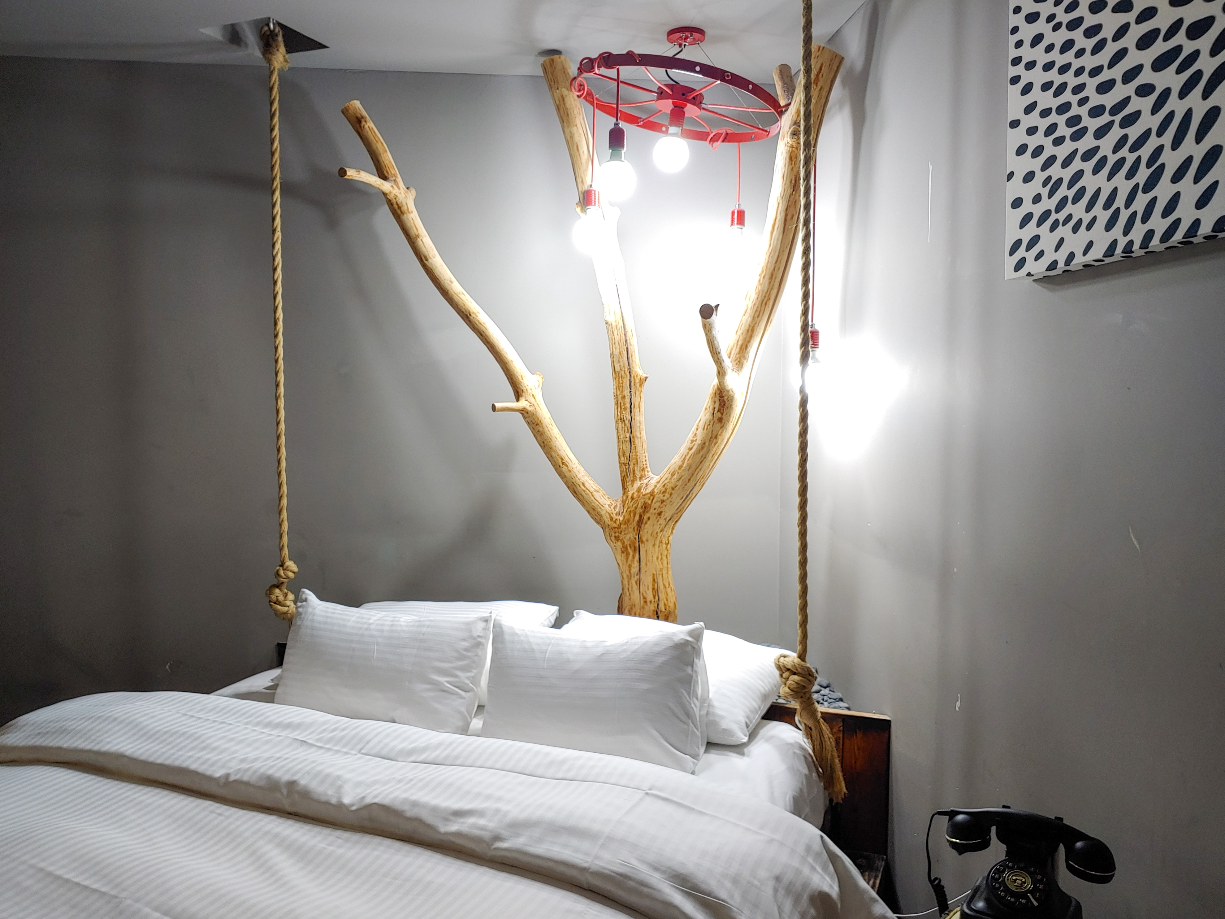 널찍한 침대 확인~컨셉이 있는 곳이라고 해도 엄청나게 특별한 것은 없었는데 특이한 게 보입니다.