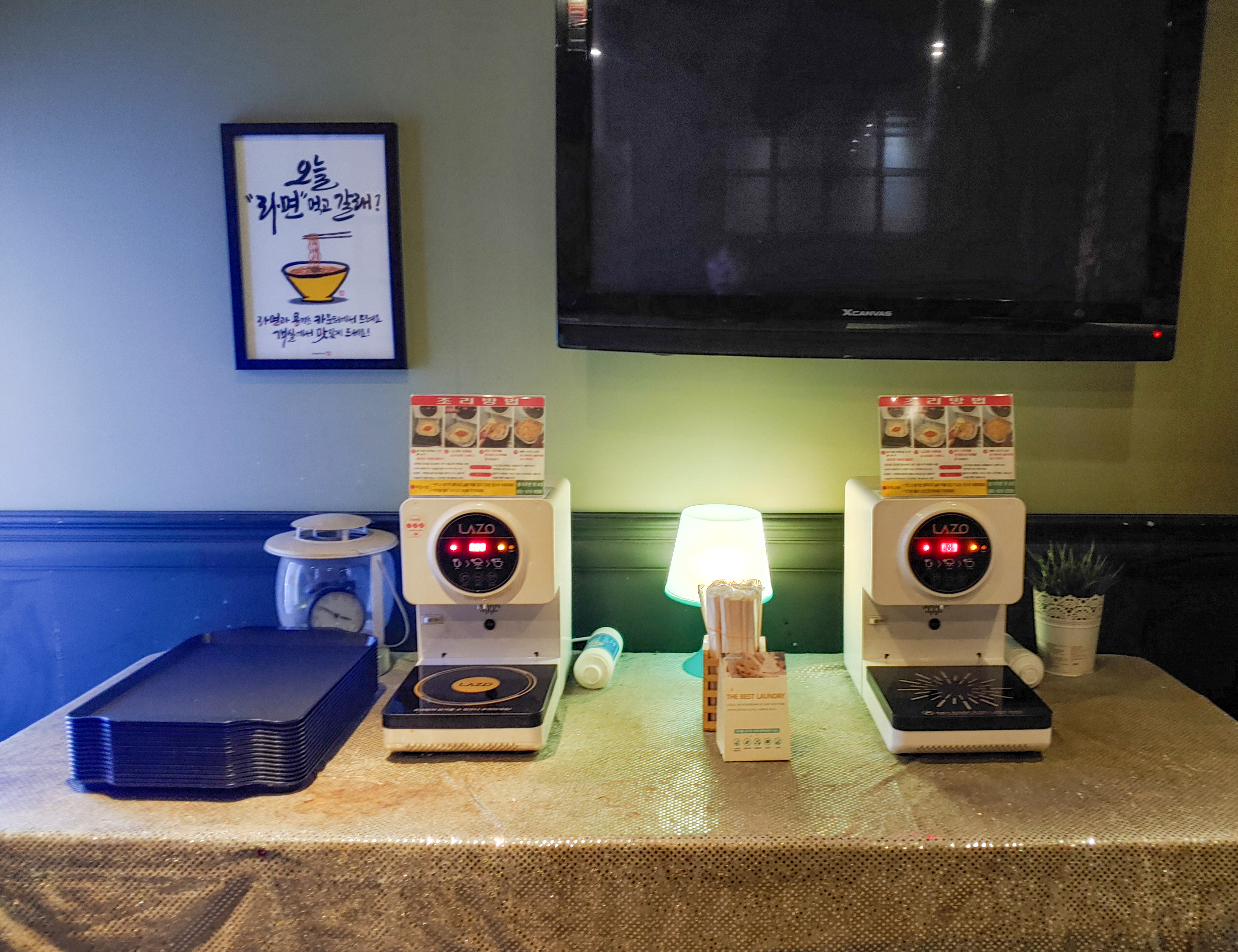 라면 홍보같은 액자와 라면 머신(?)이 두대 준비되어 있습니다.