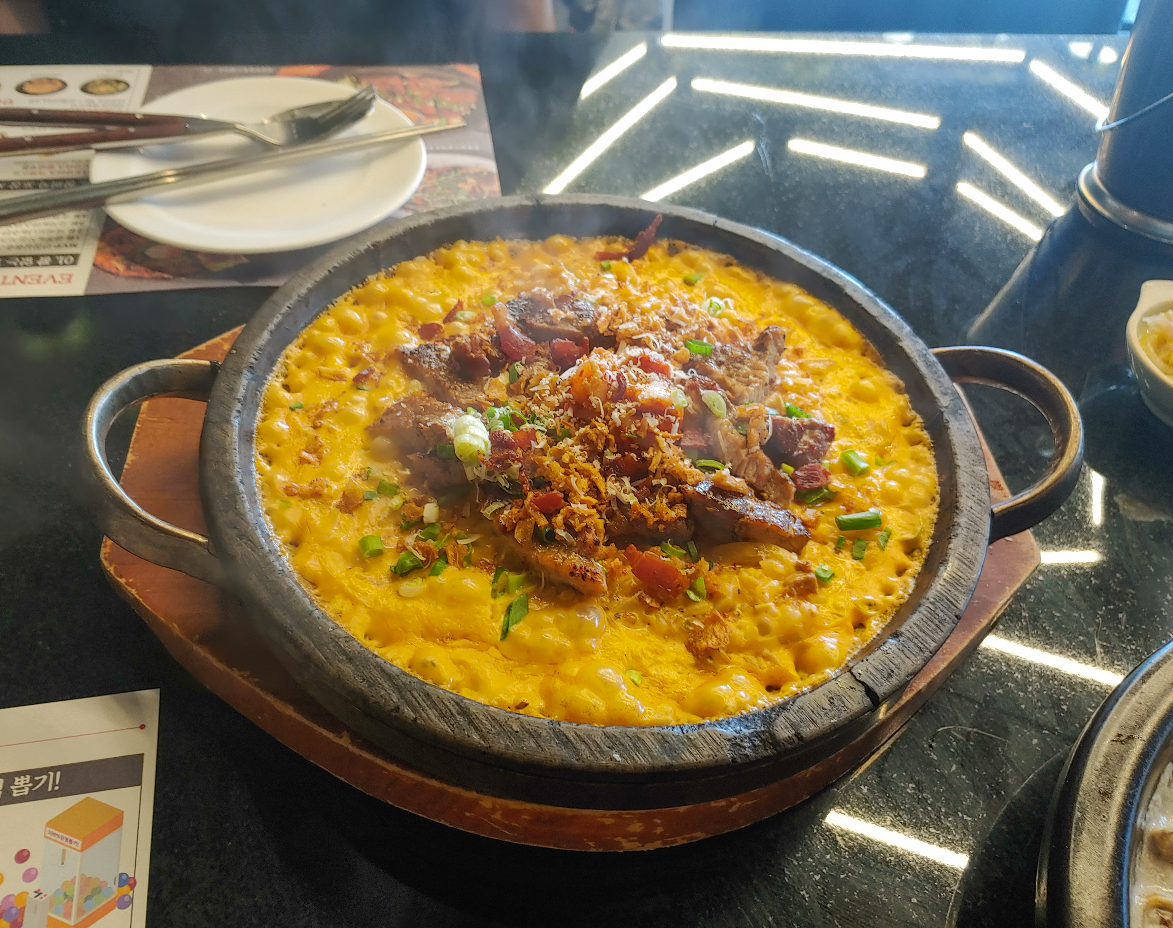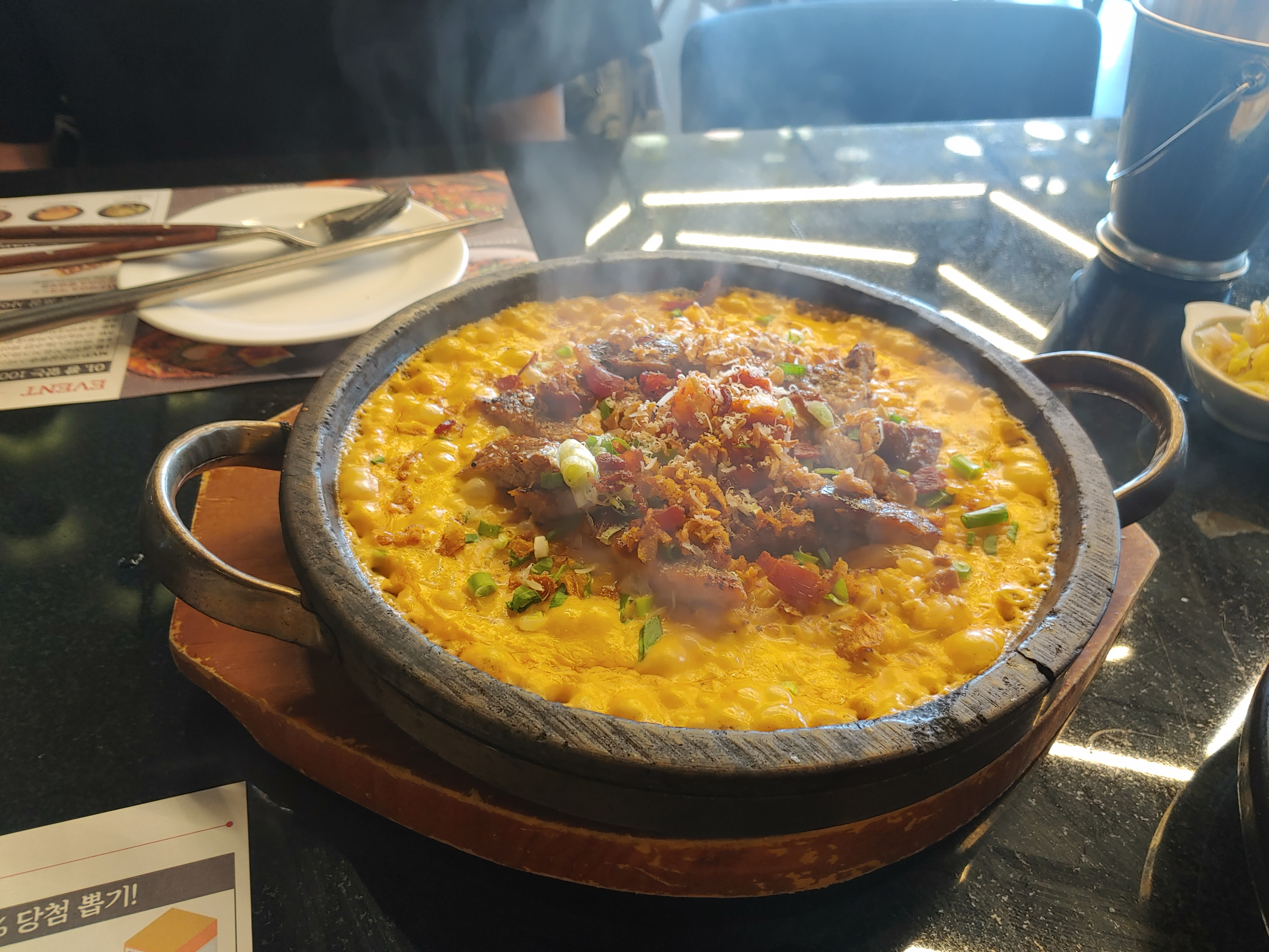 '돼지갈비 묵은지 돌솥 리조토' 너무 뜨거워서 식혀야 했어요.