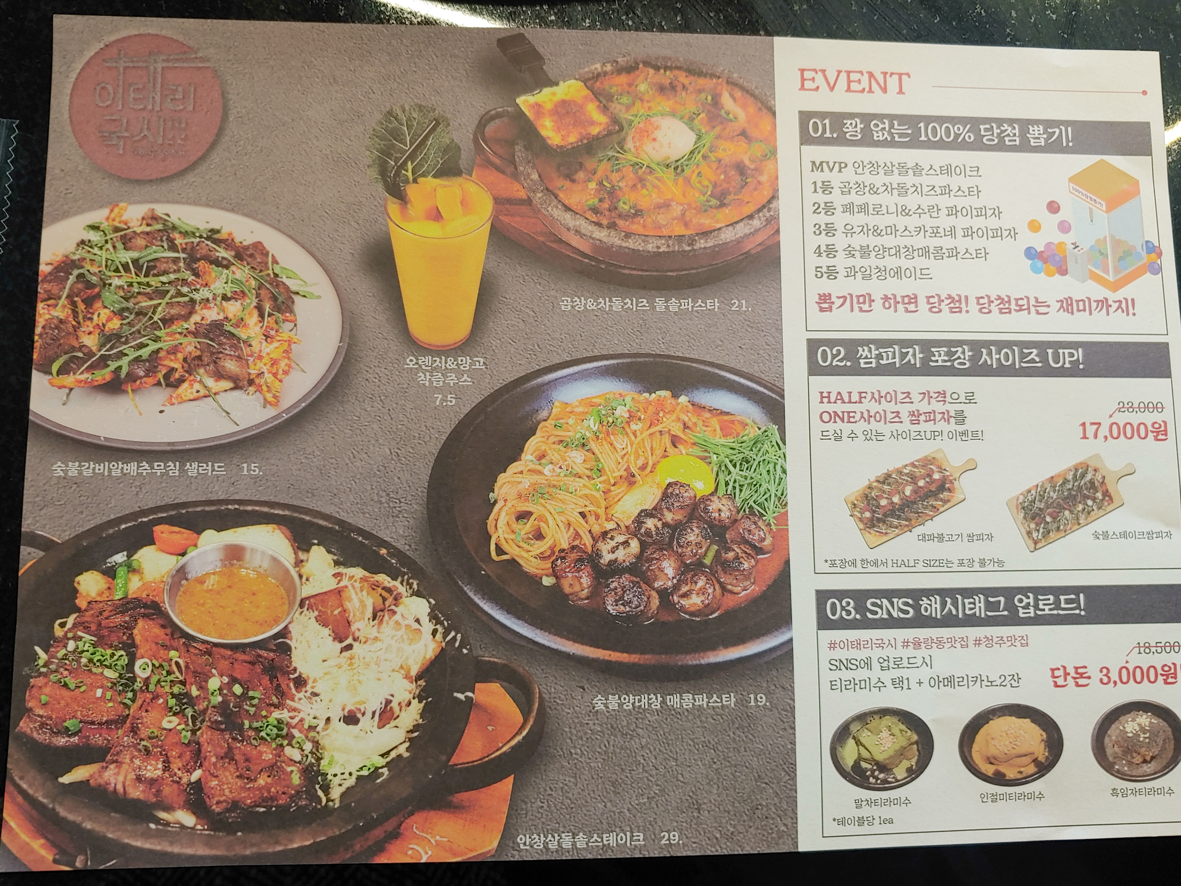 마침 딱 이벤트를 하고 있었던 이태리 국시. 나가기 전에 뽑기를 해 볼 거에요!