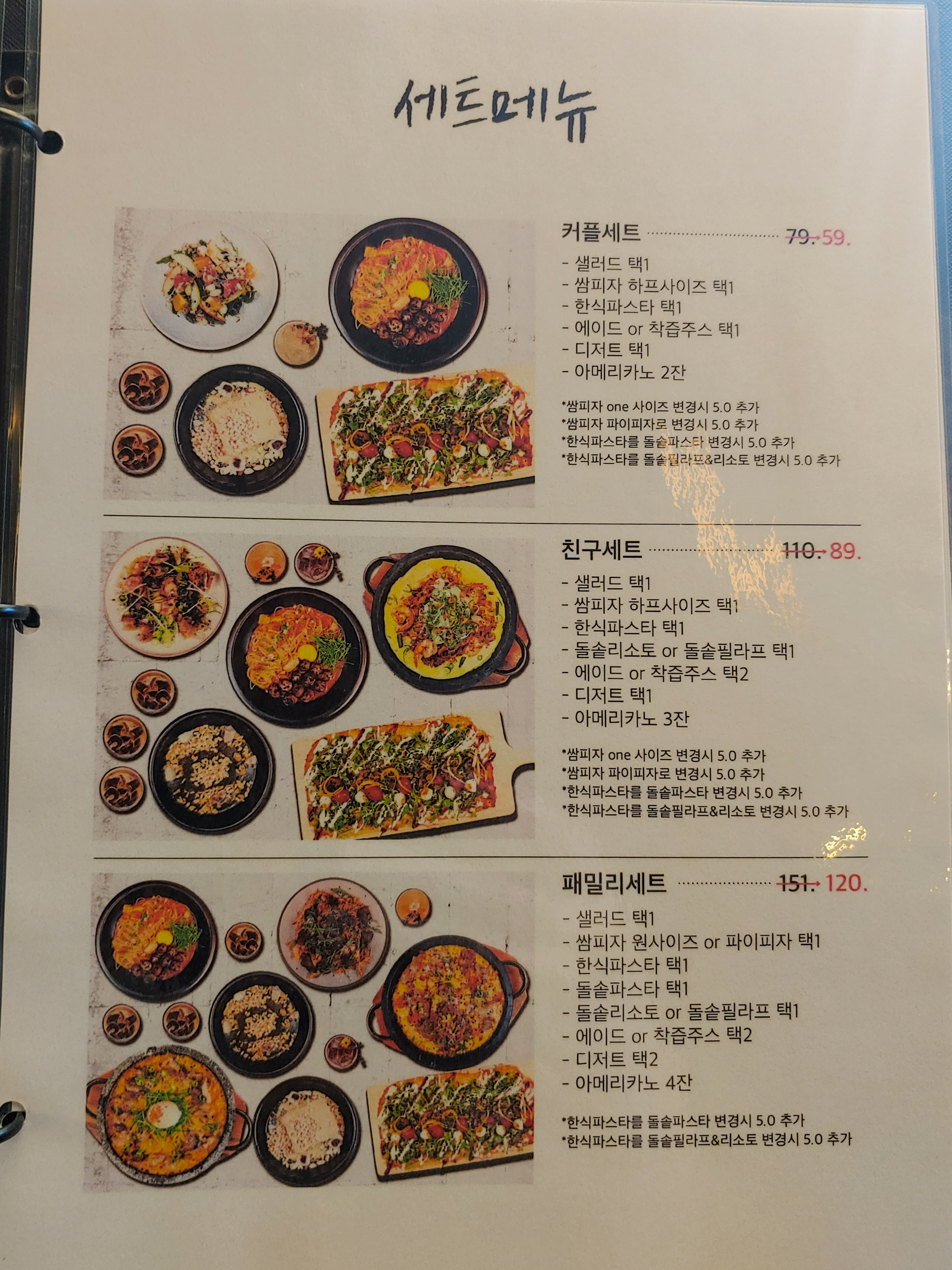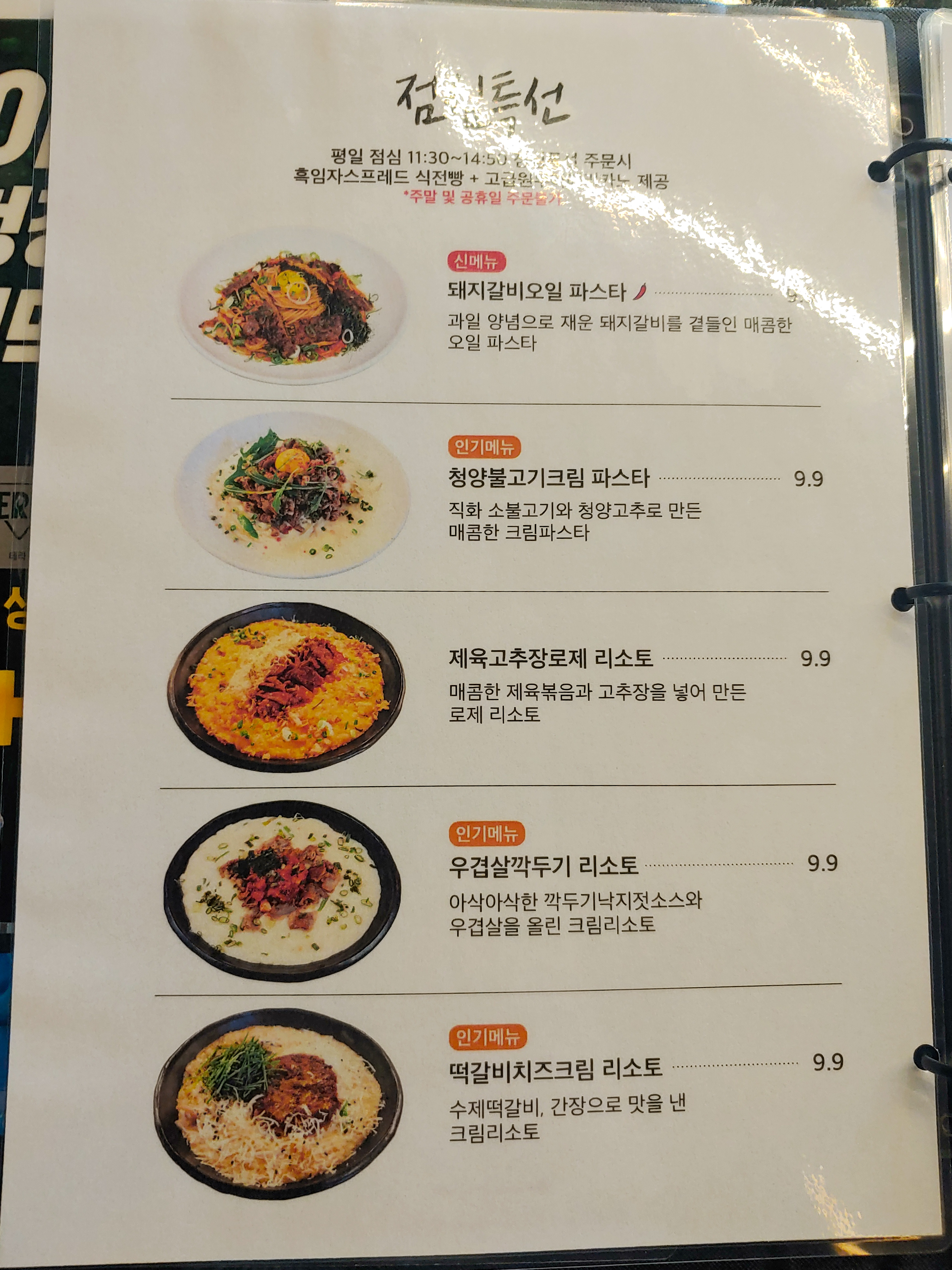 점심 특선부터 시작하는 메뉴판. 평일 점심에 올 수 없는 저는...패스.