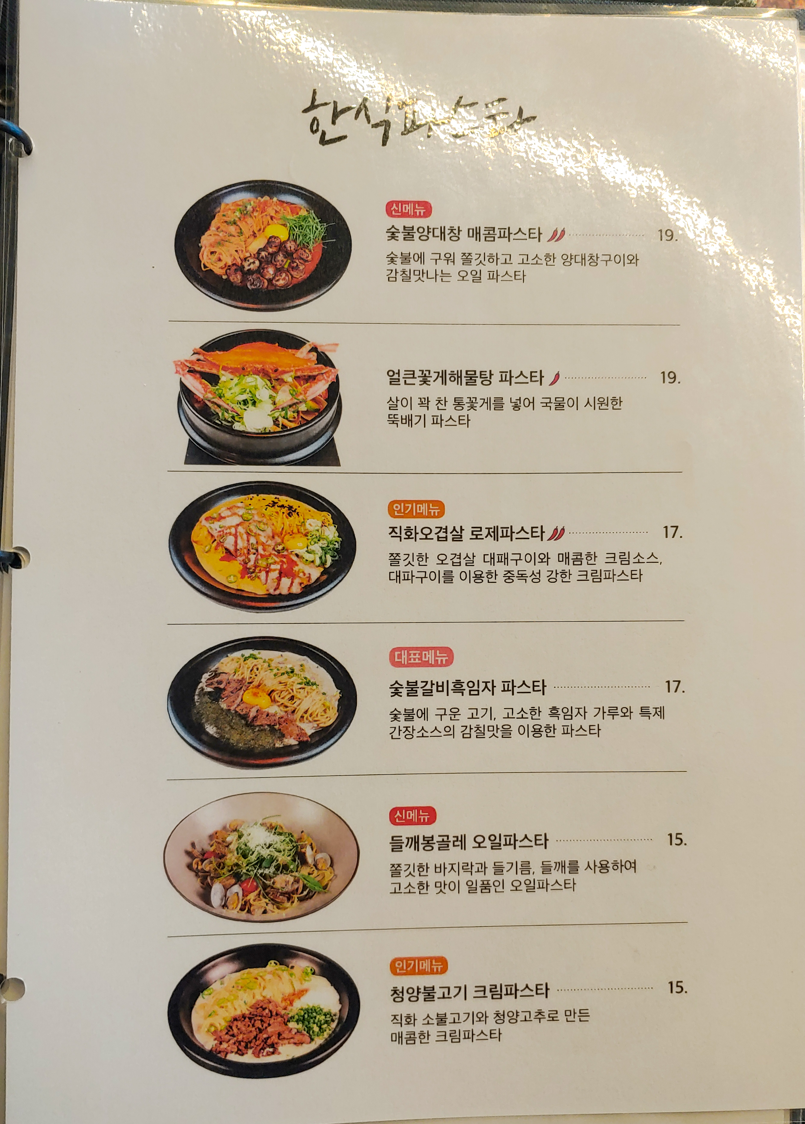 이탈리안 레스토랑이지만 한식재료들로 만드는 요리라고 하네요.