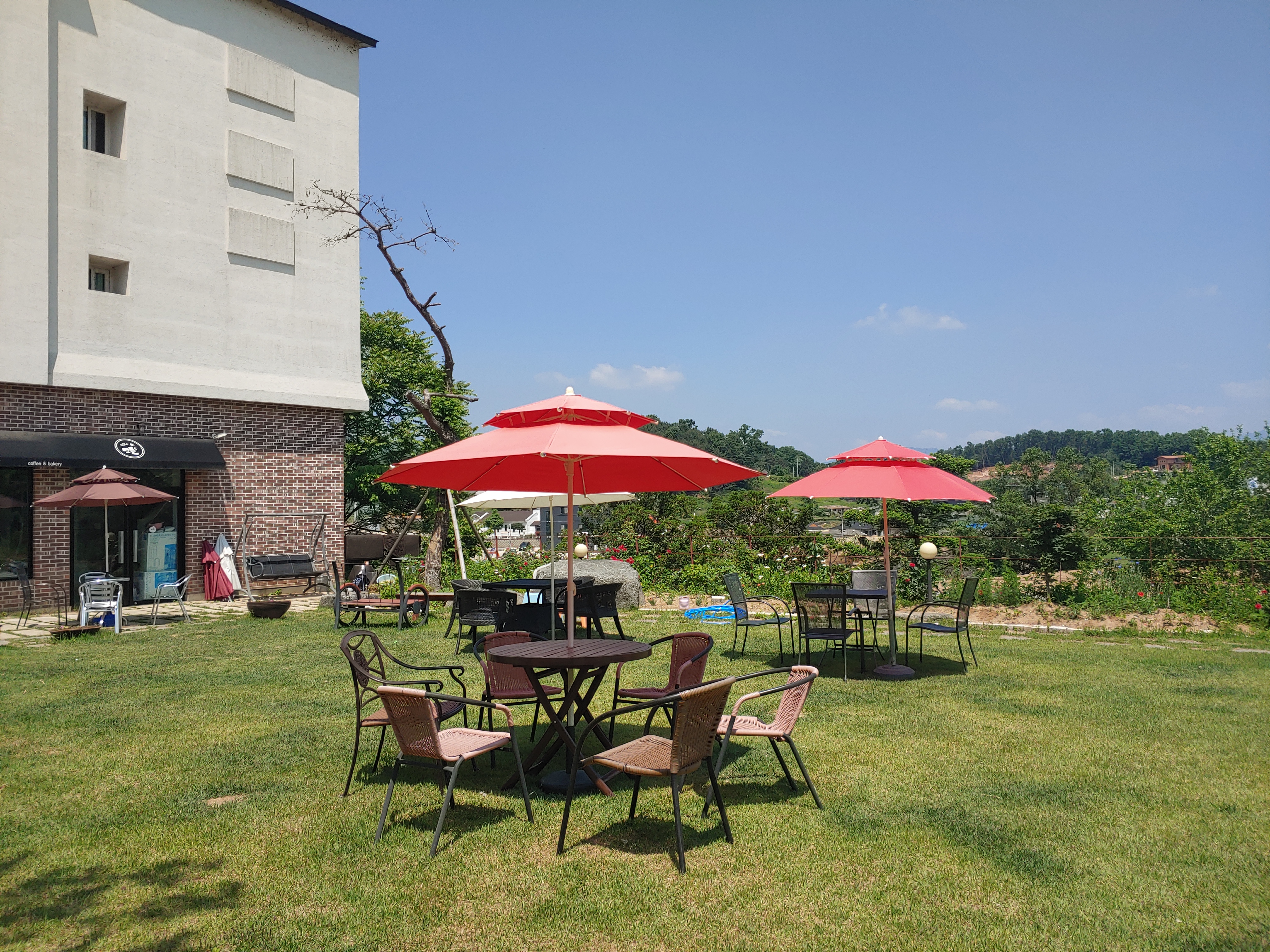 (아주 잠깐 구경하고 더워서 냉큼 카페 건물로 들어갔어요.)