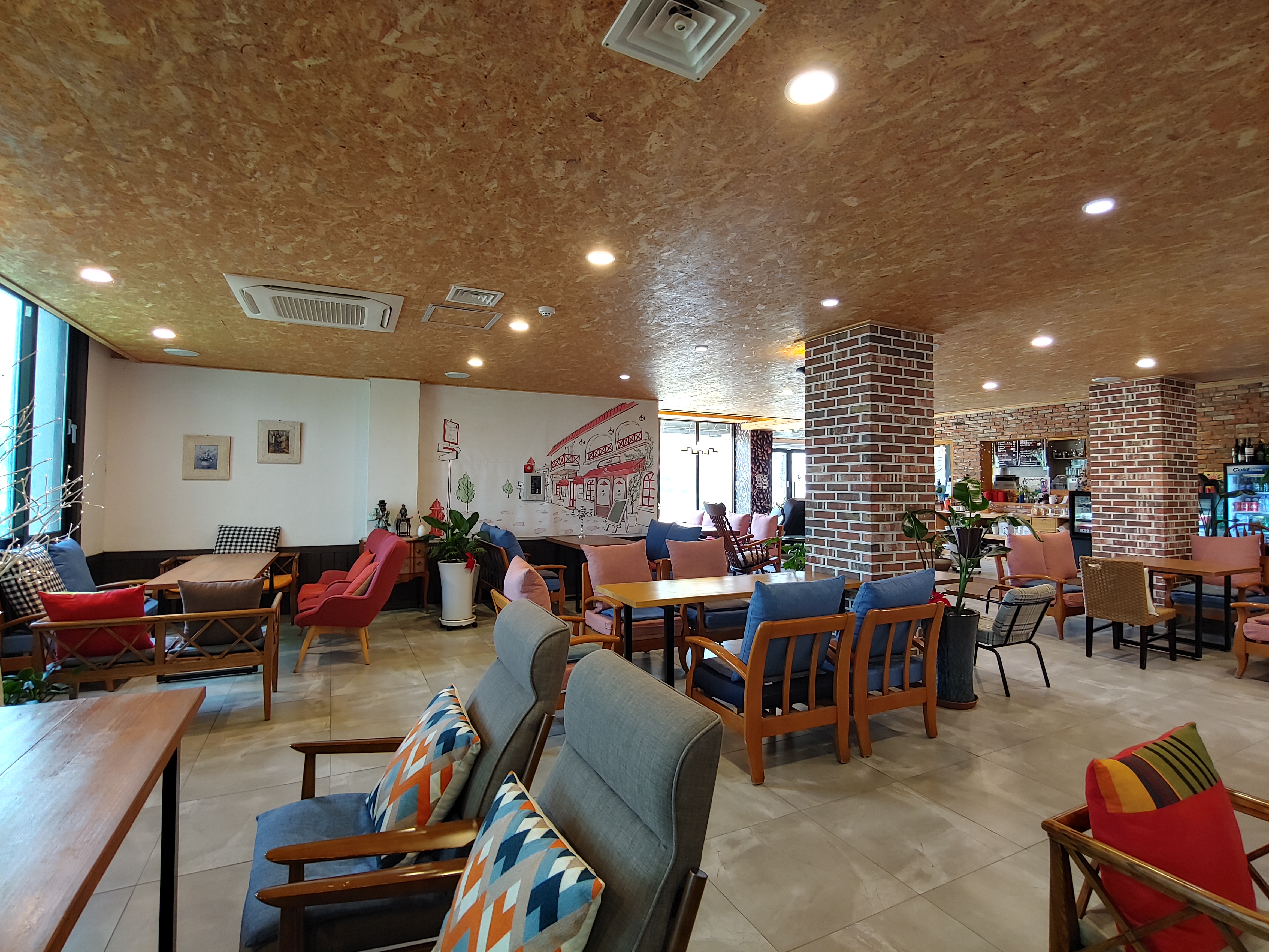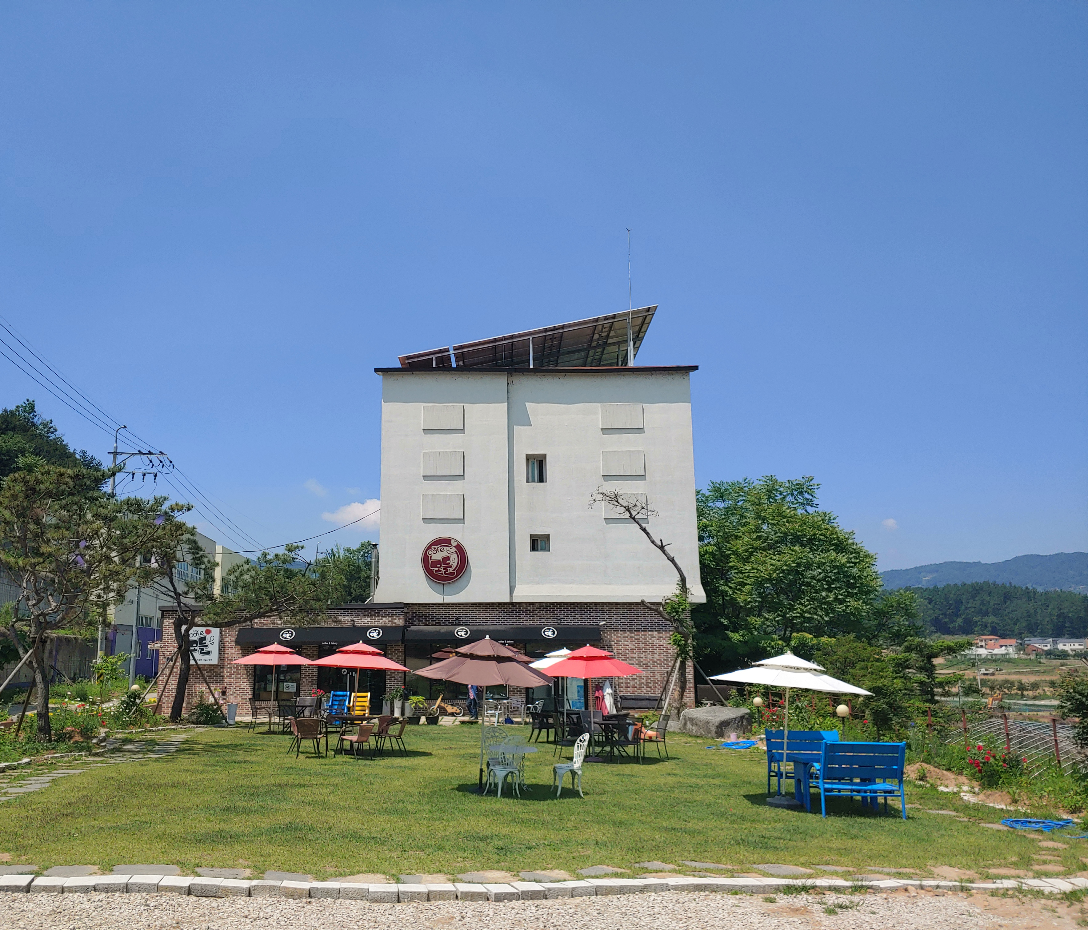 도착해서 보이는 것은 널찍하고 평평한 정원같은 야외와 카페 건물.