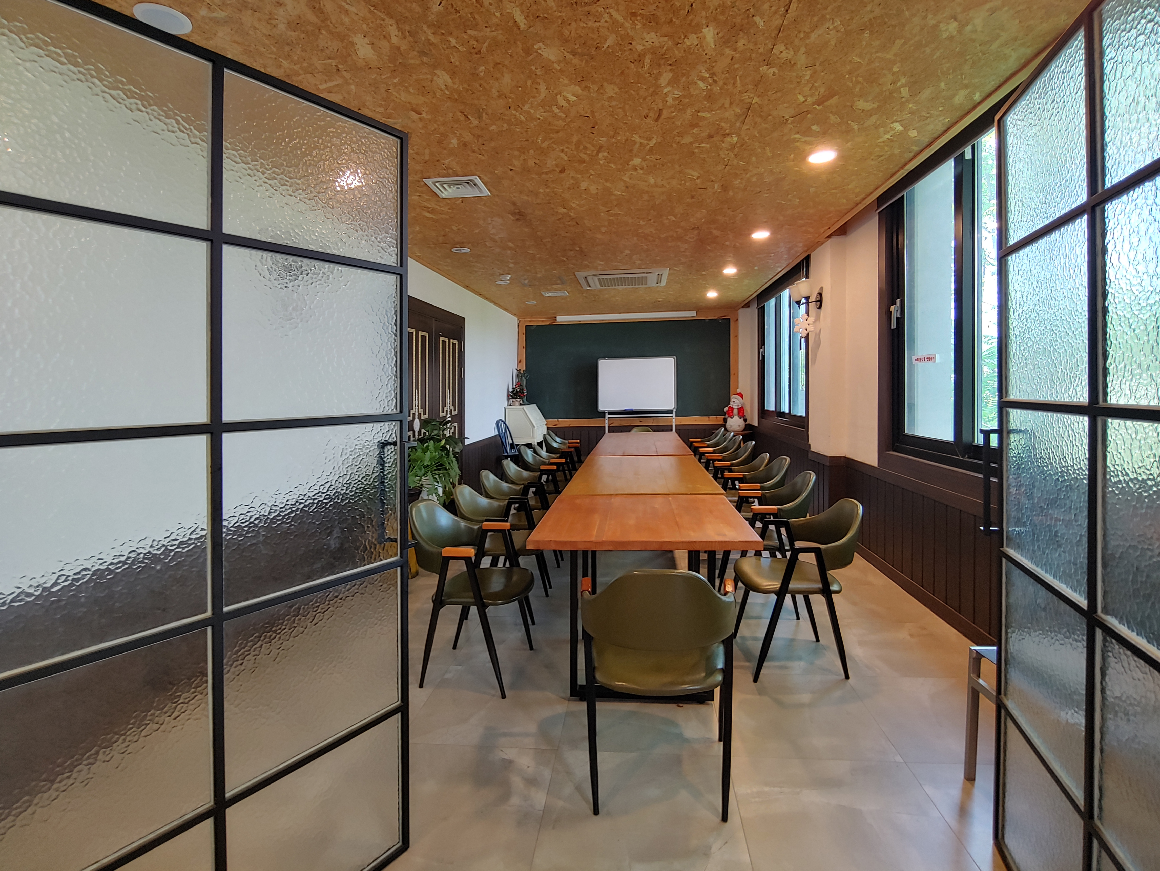 칠판이 유독 잘 보이는 회의실인 장소입니다. 단체로 과제하고 공부하기에도 좋은 곳인 것 같아요.