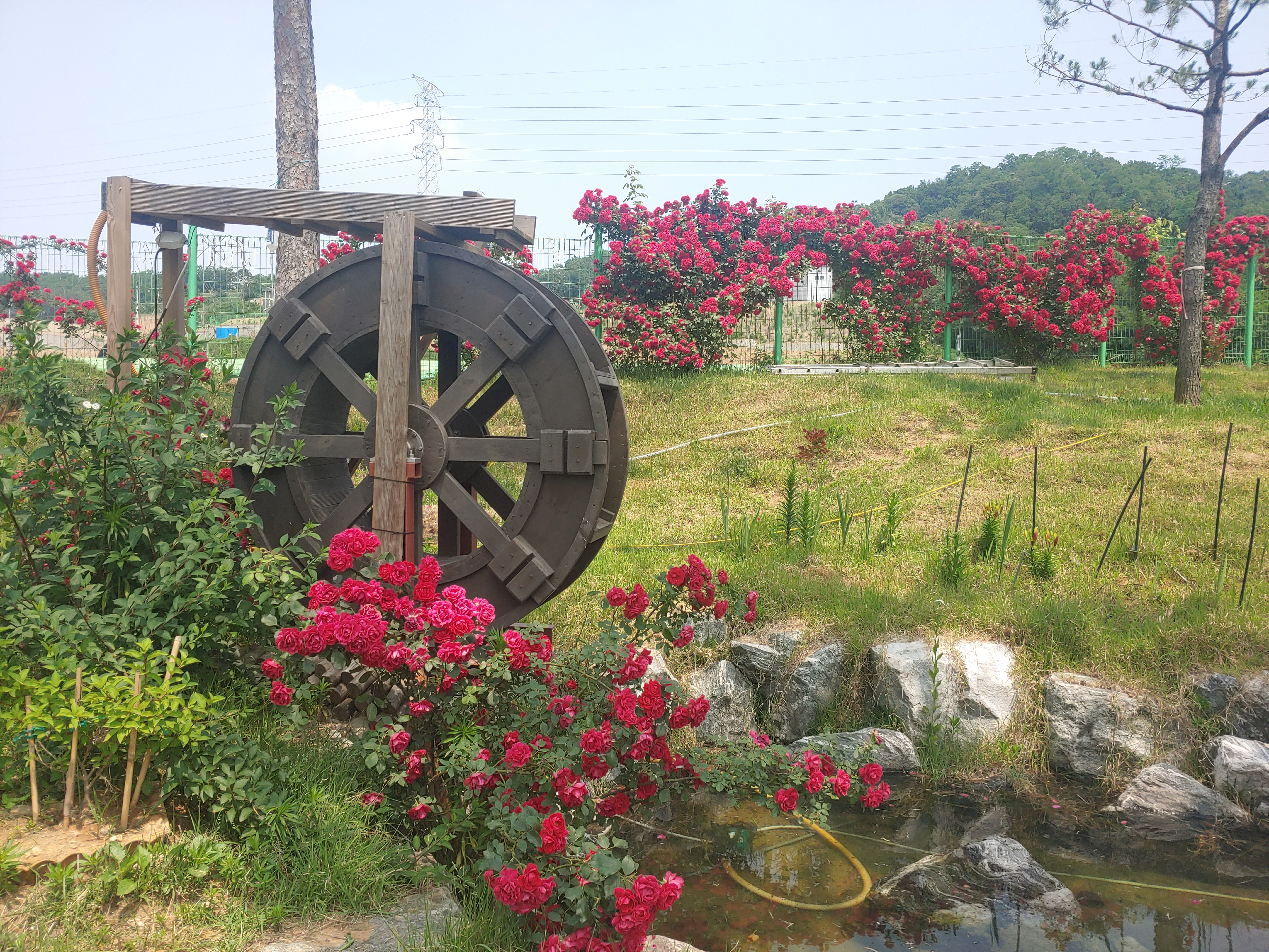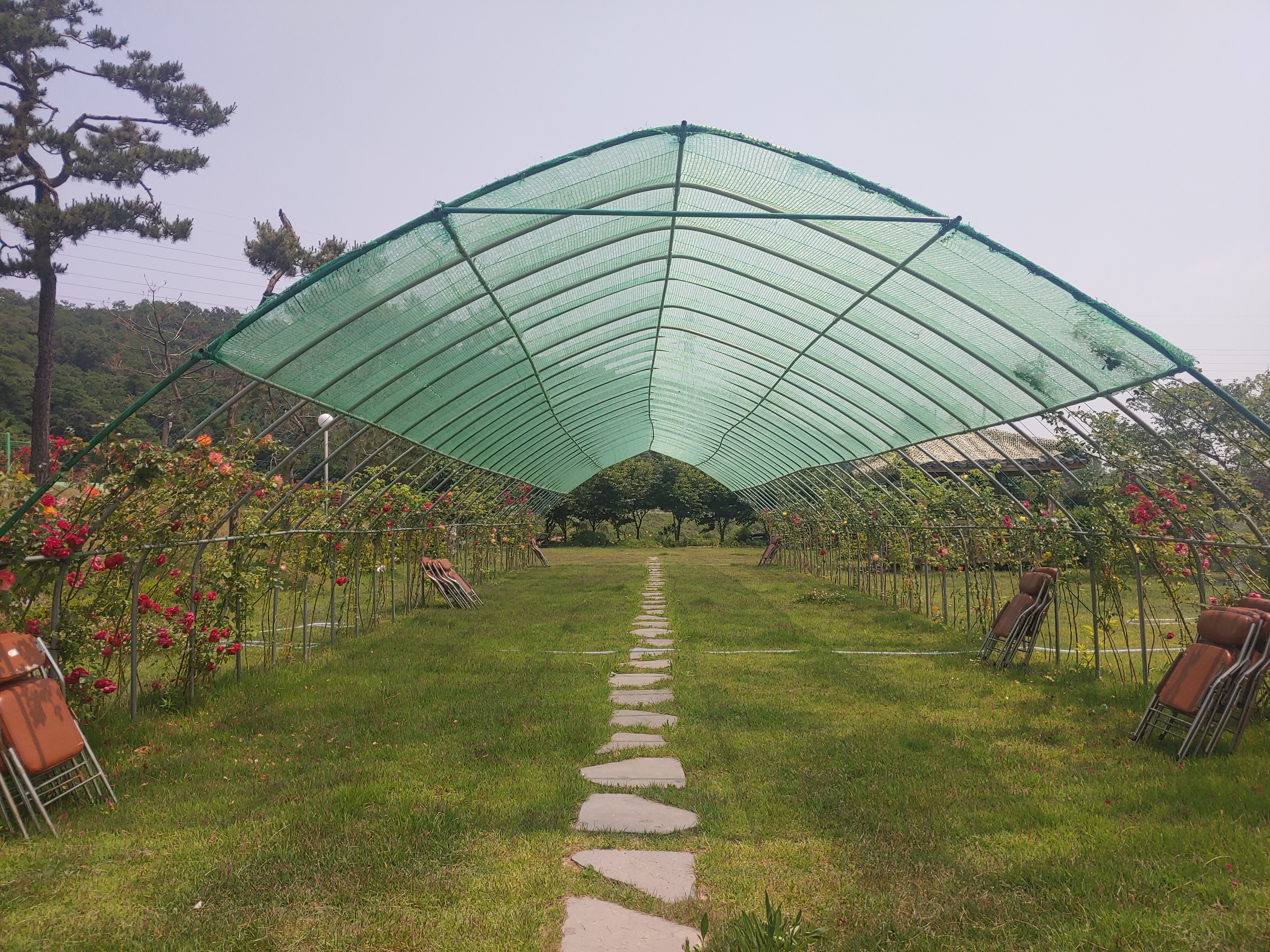 의자도 몇몇 있는 걸 보니 여기서 단체 모임 같은 것도 하나봐요. 장미가 더 무럭무럭 자라서 돔을 다 감쌀 정도가 되면 커플 촬영하기도 굉장히 예쁠 거 같아요.
