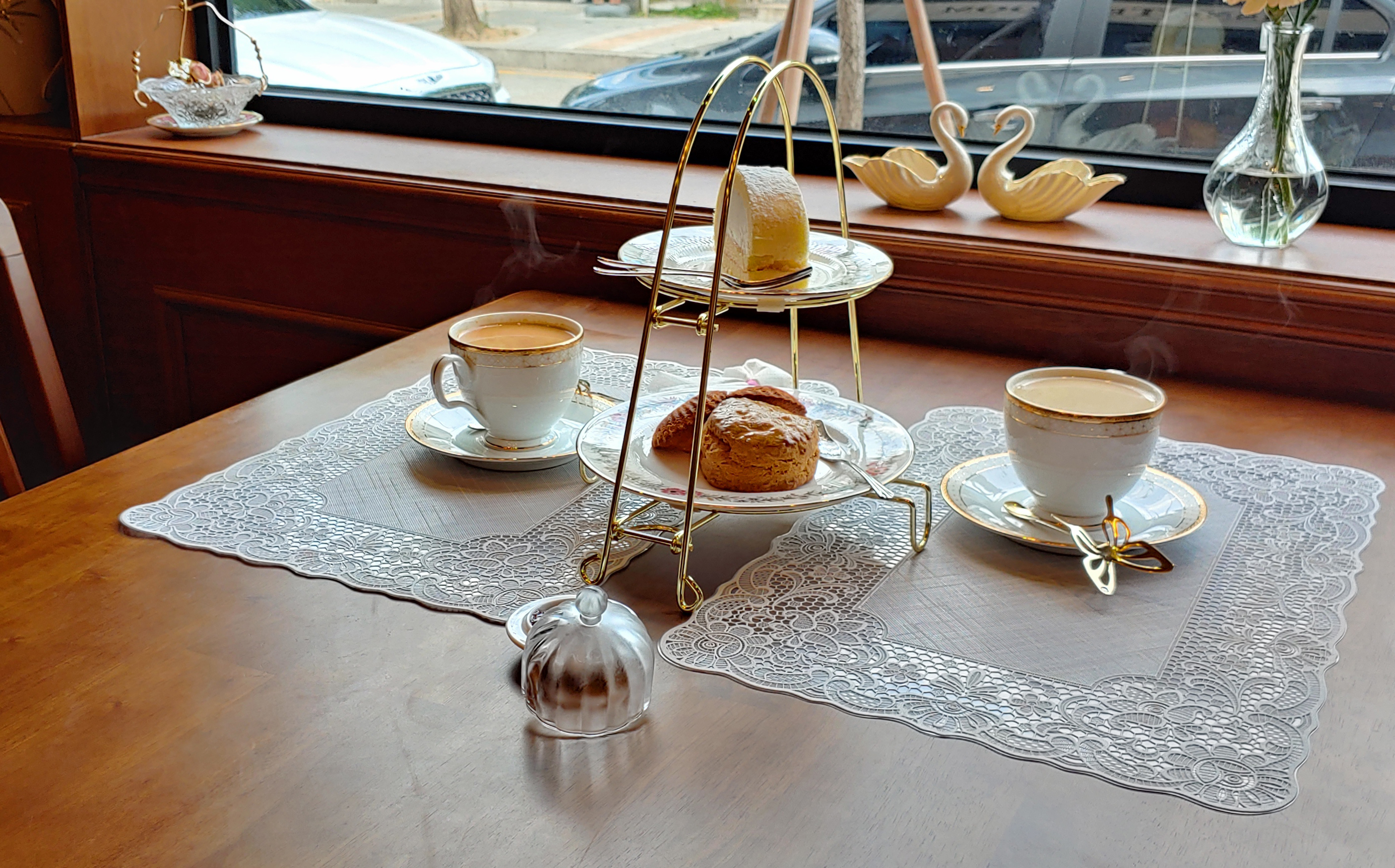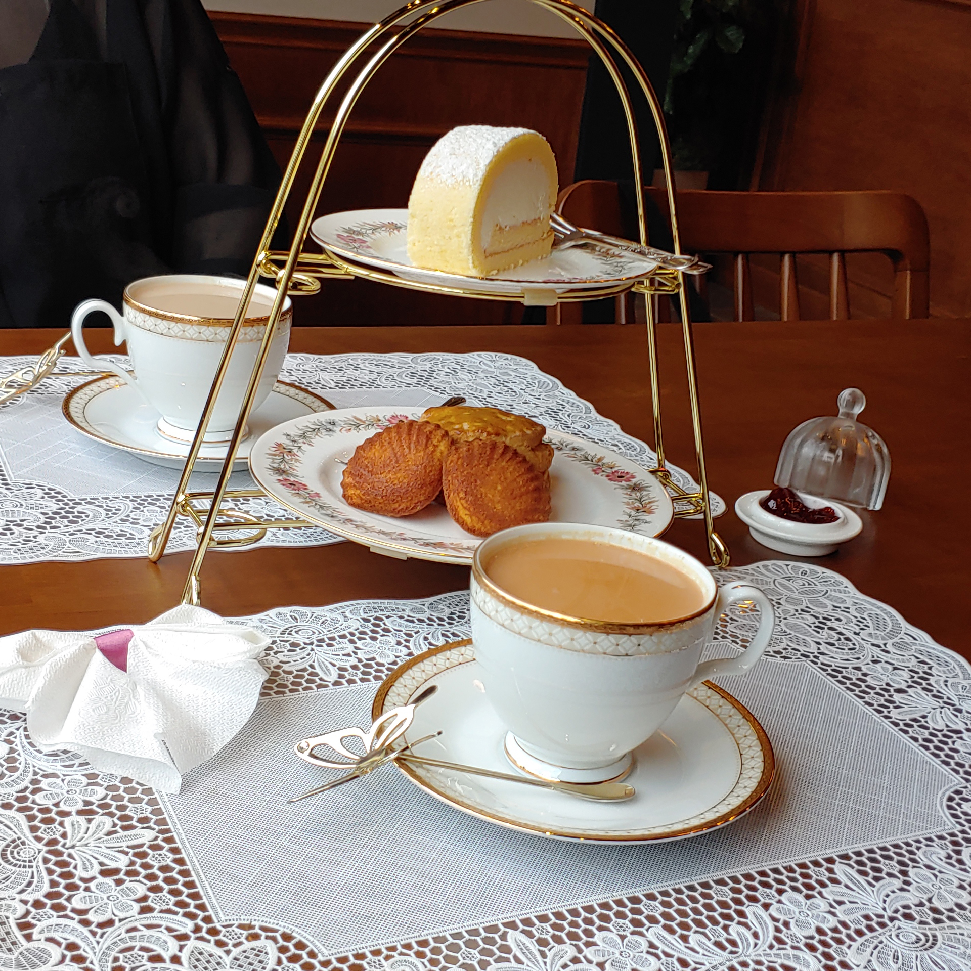 밀크티만으로도 충분히 예쁘긴 했지만, 미니 에프터눈티 세트가 올라오면서 테이블이 아름다워진(?) 느낌이에요!