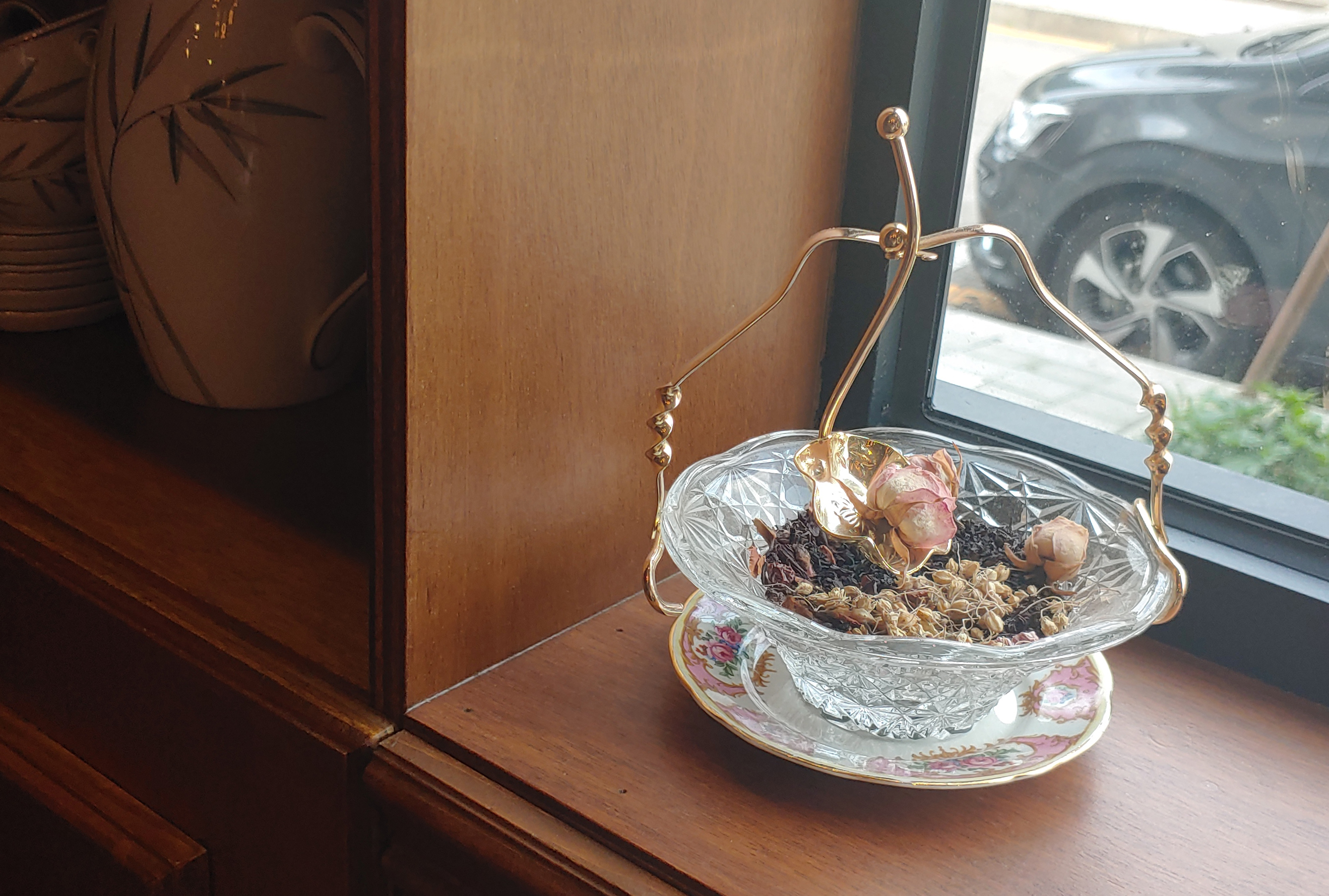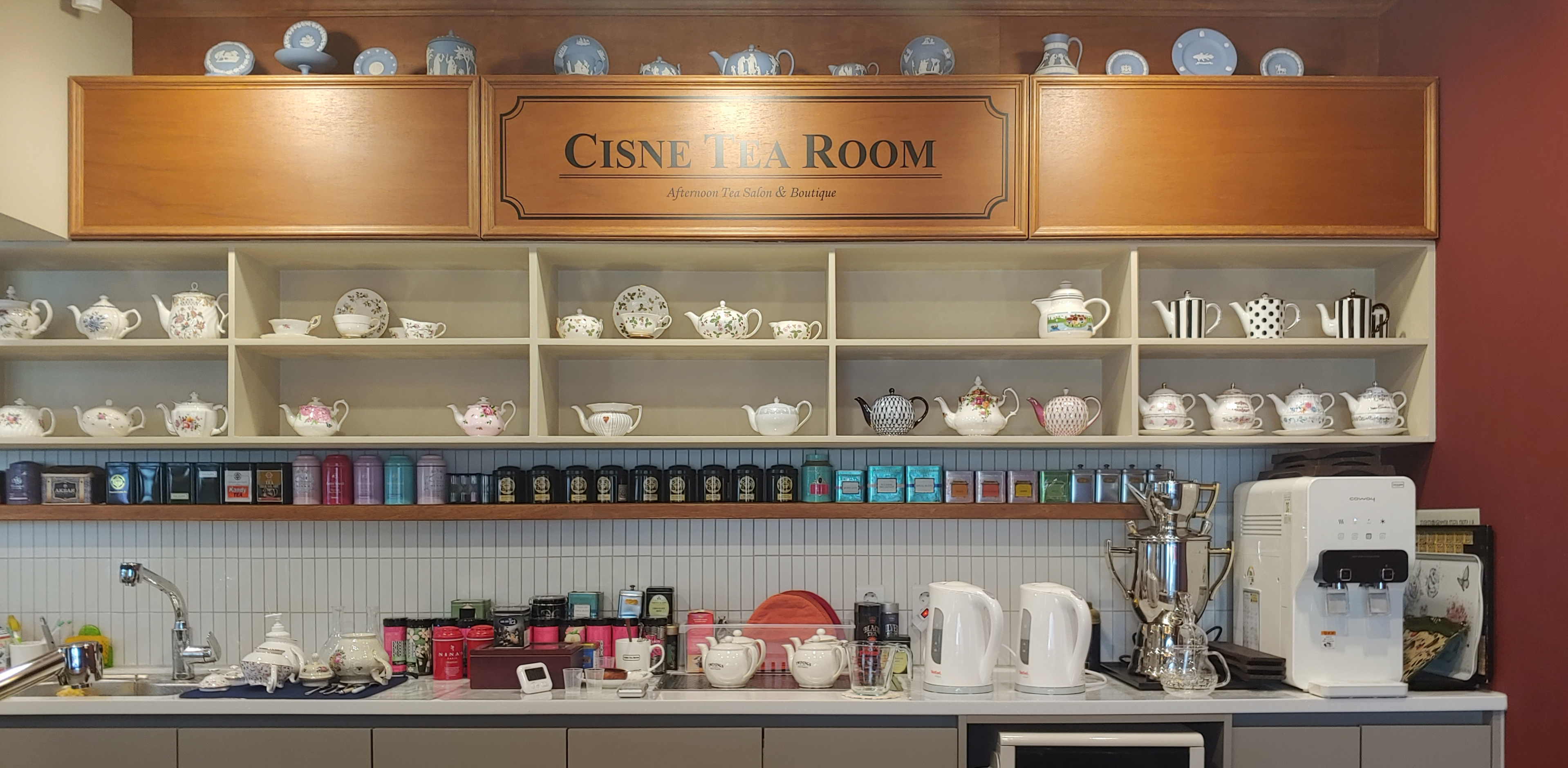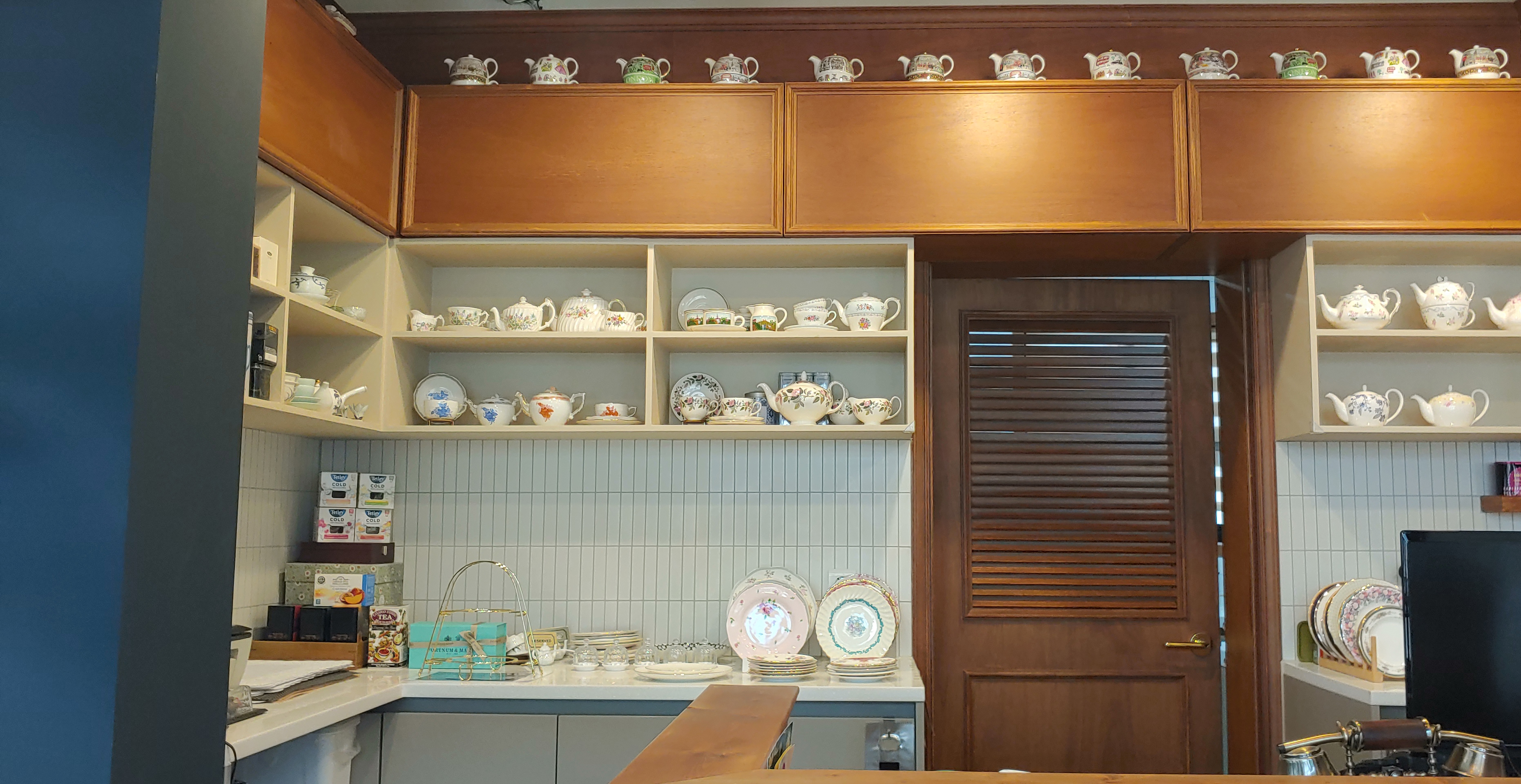 언제 한 번 저 선반에 티팟이 다 채워져 있을 때를 찍어보고 싶네요.