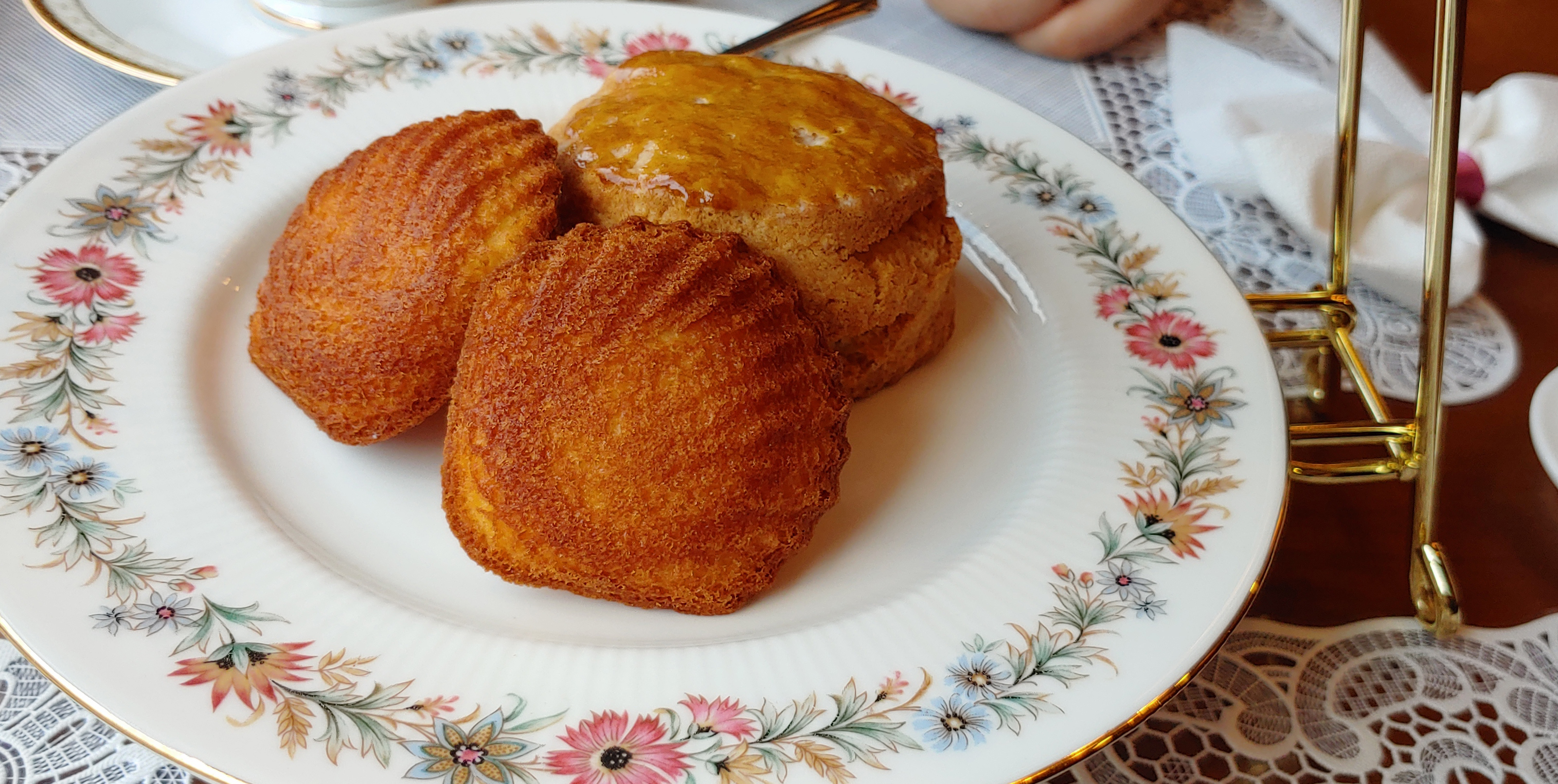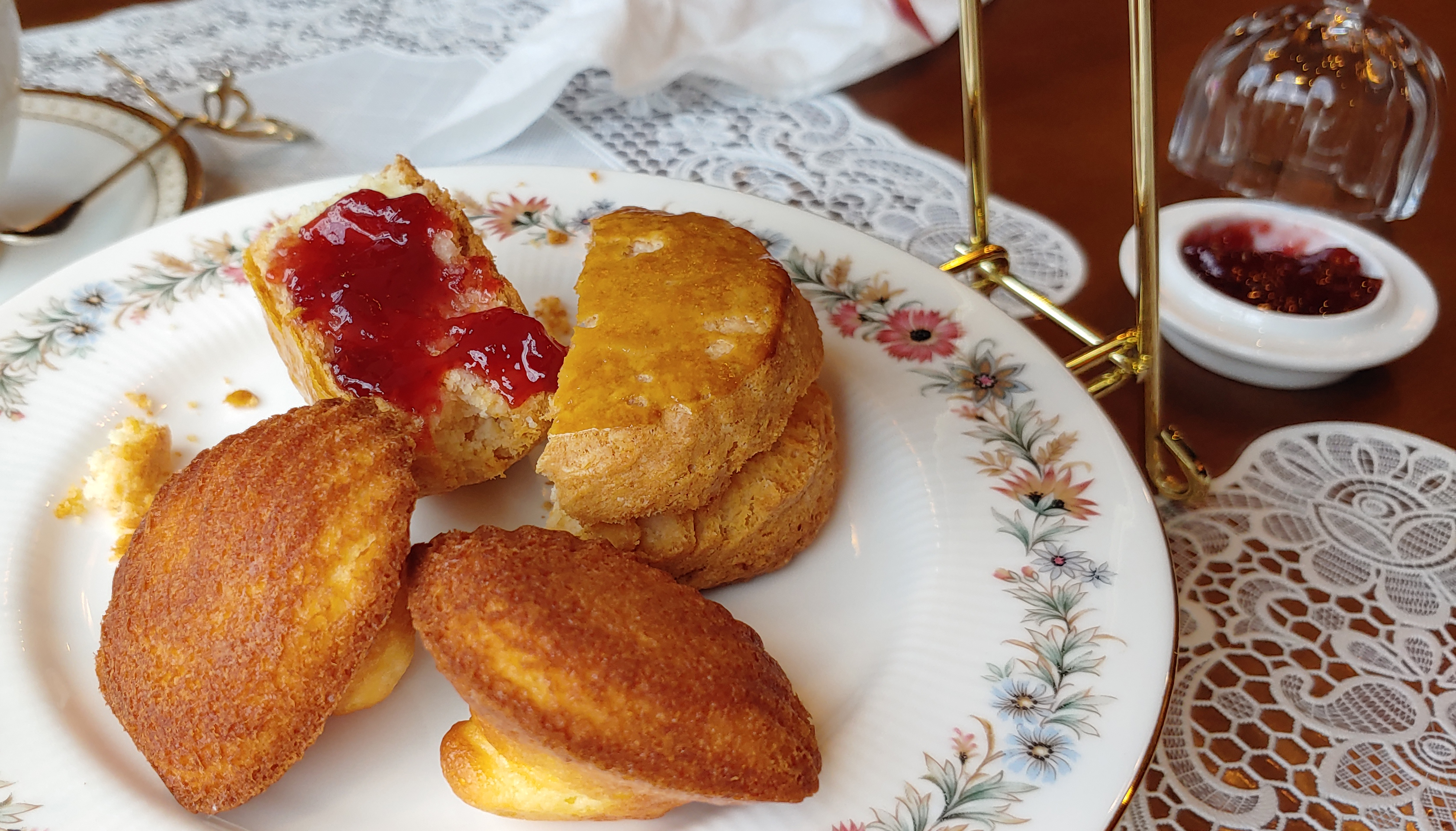 1단 아래에 있는 스콘과 마들렌이에요. 주로 2단 미니 에프터눈 티 세트를 주문했을 때, 1단에 있는 메뉴는 주로 바뀌지 않는 거 같았습니다.
