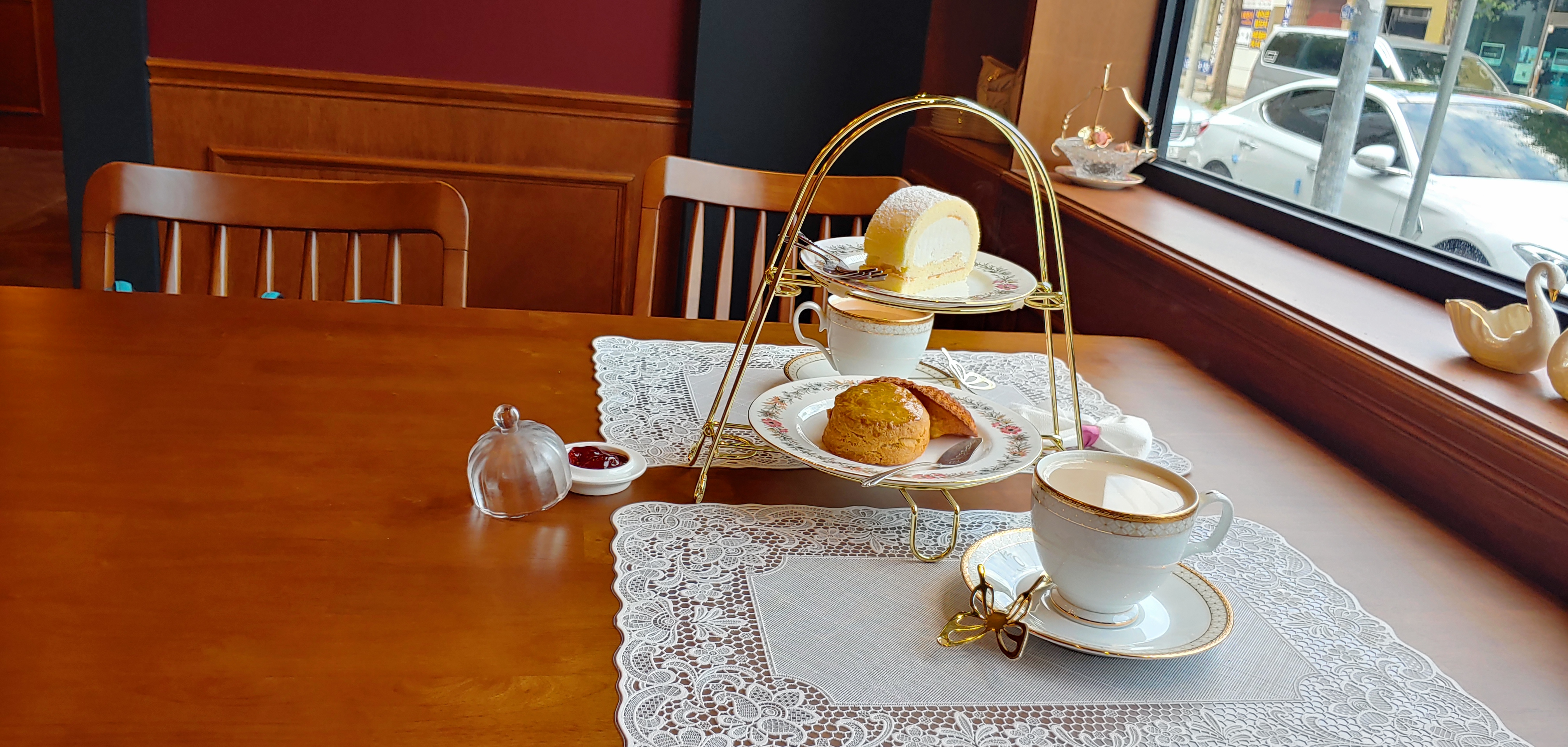 저희 어머니도 카페는 자주 가봤어도 이런 대접(?) 받는 듯한 영국식 카페는 처음이라 저만큼이나 많은 사진을 촬영하셨습니다.