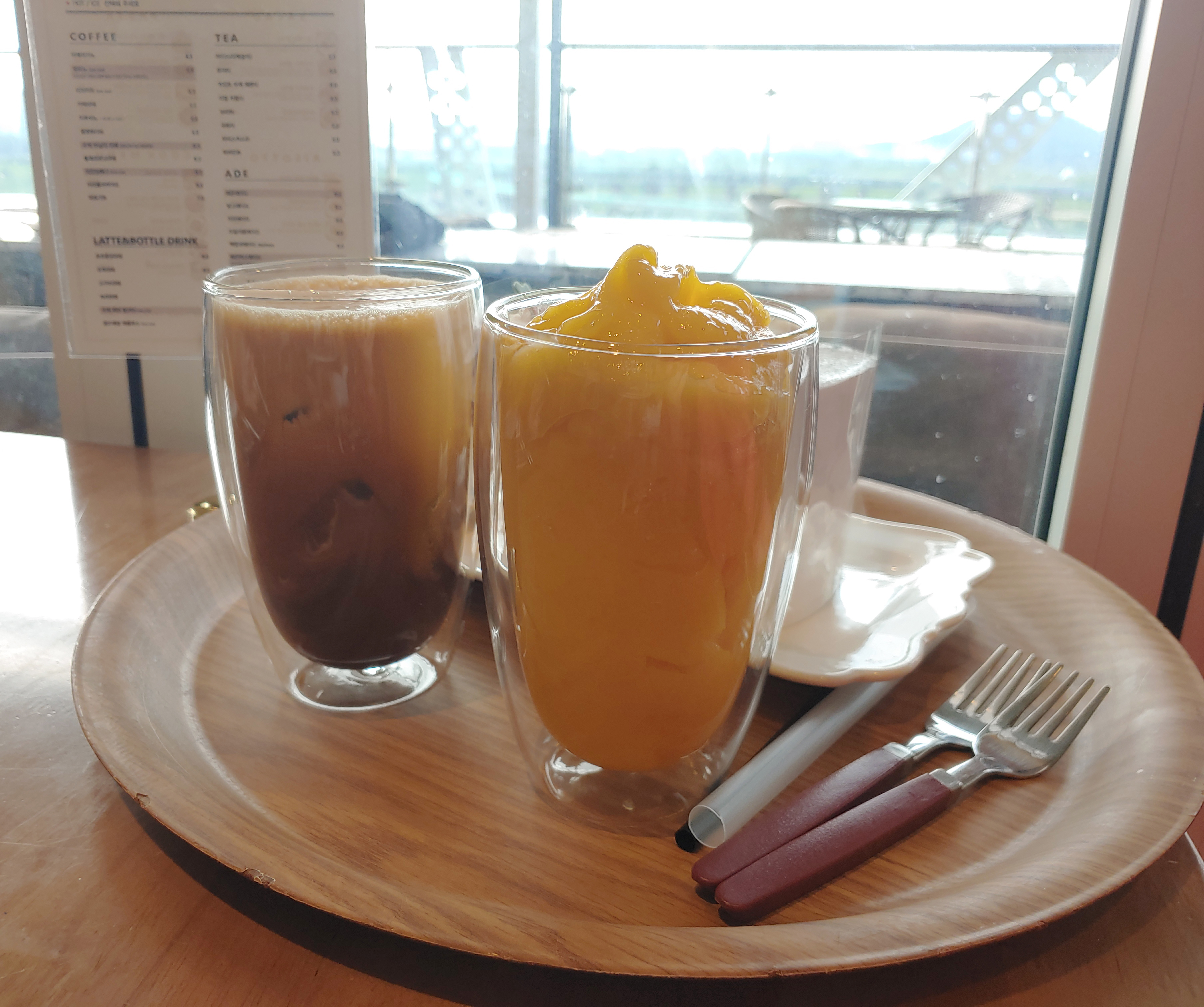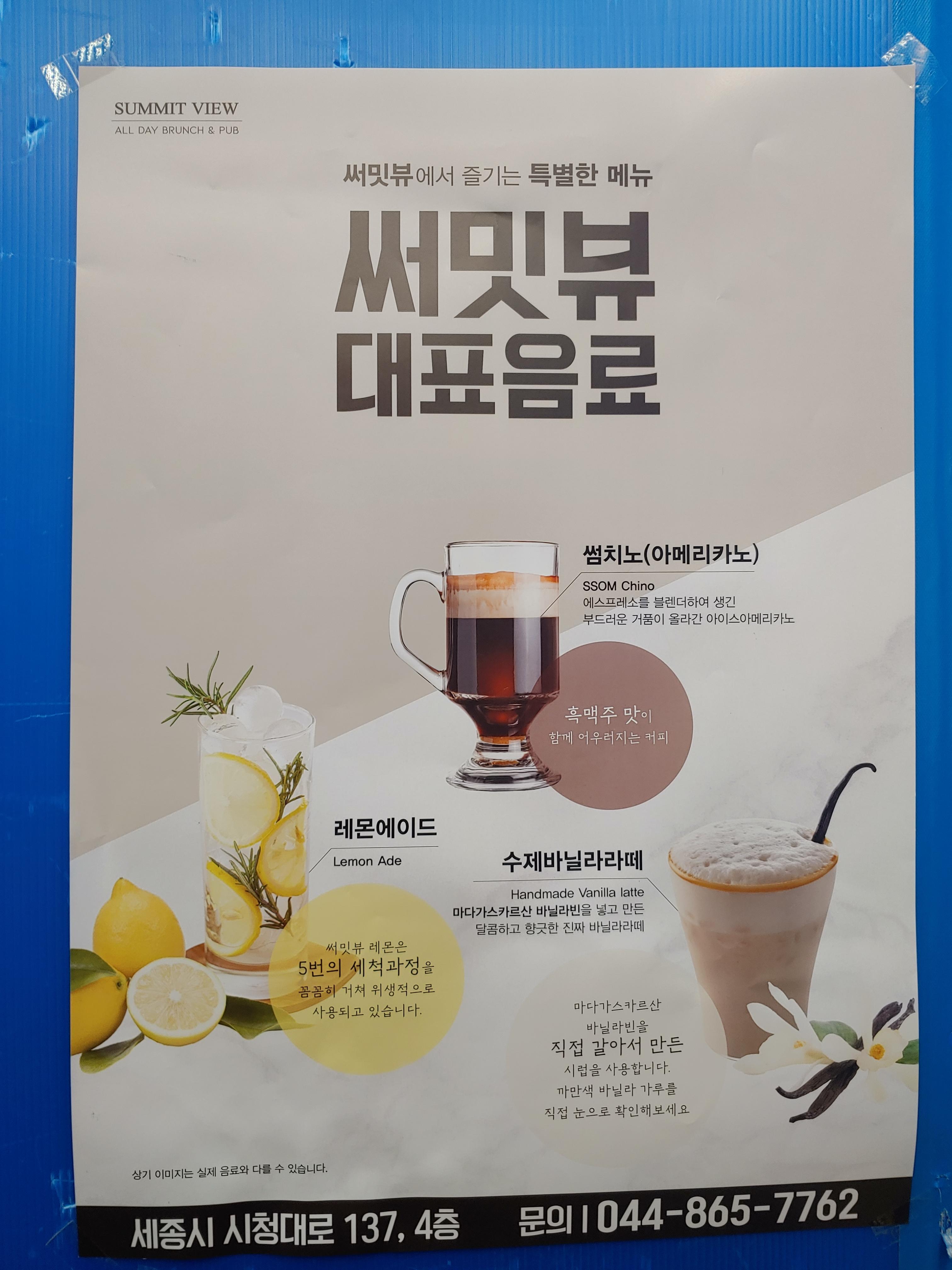 처음에 써밋뷰 대표음료라고 포스터를 봤을 때부터 궁금해서 주문한 썸치노와 동생이 주문한 망고 스무디.