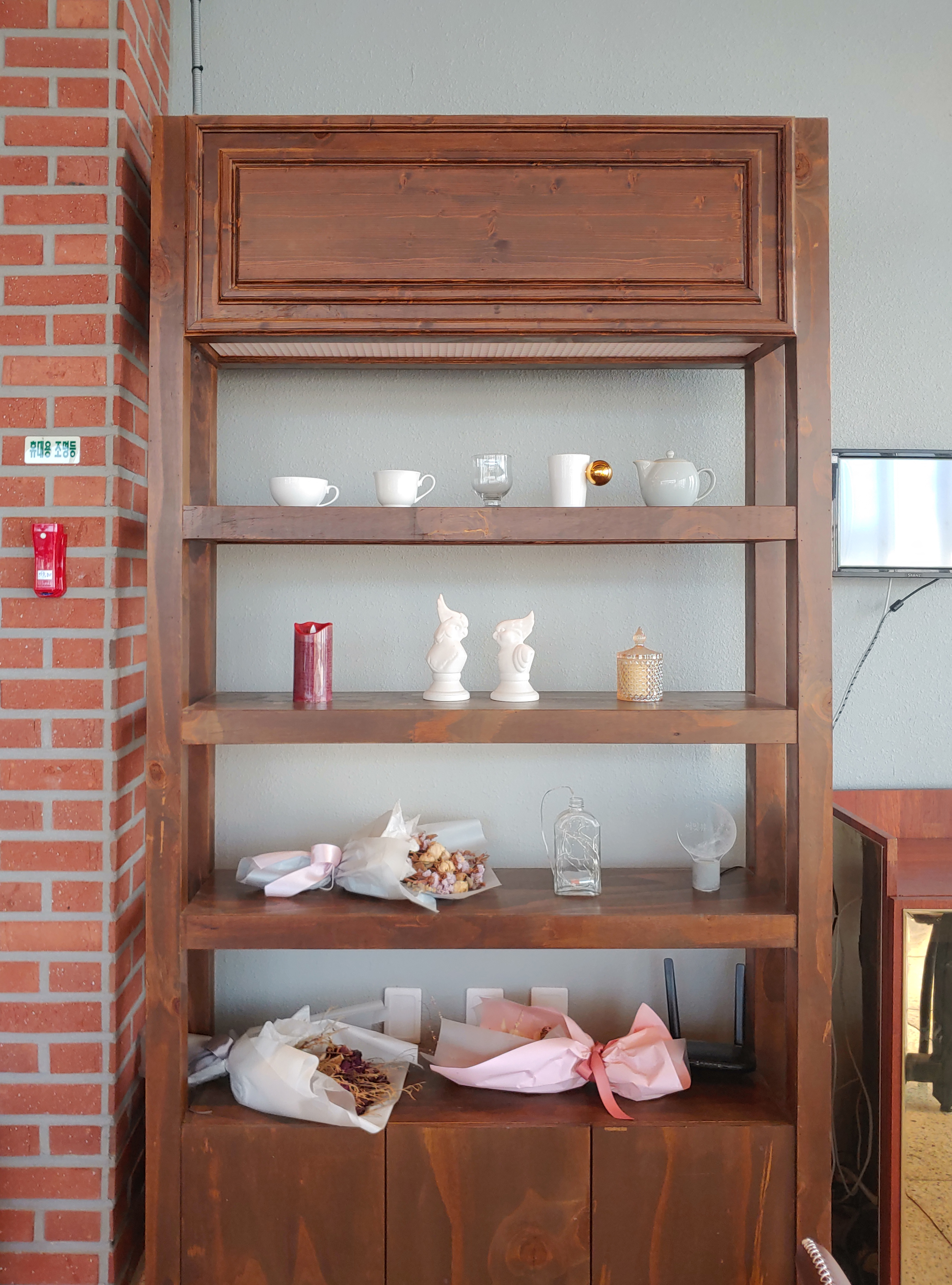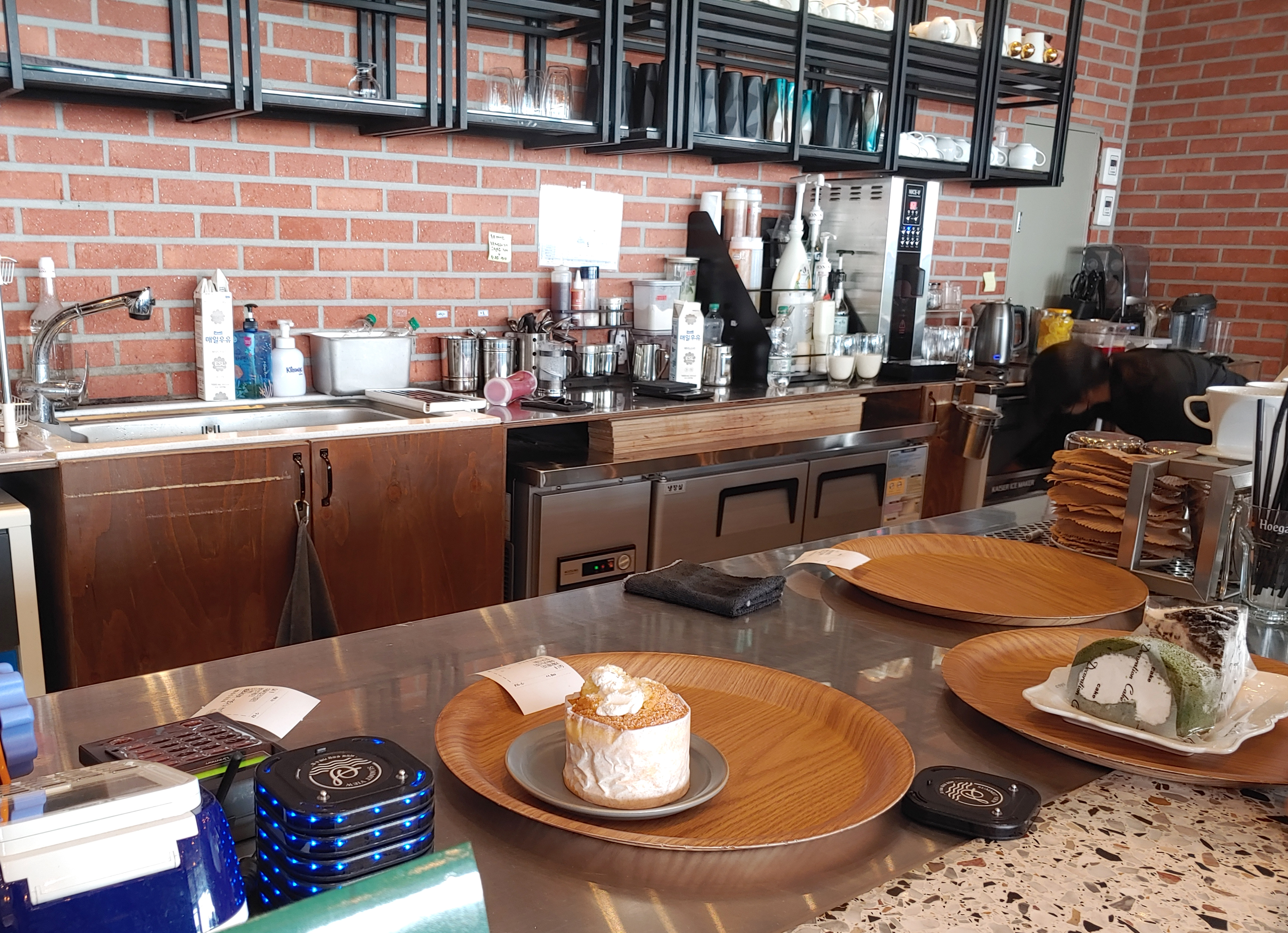 음료 2잔과 케이크 2개를 주문하고 기다리는 중, 잠깐 실내를 둘러보았어요.