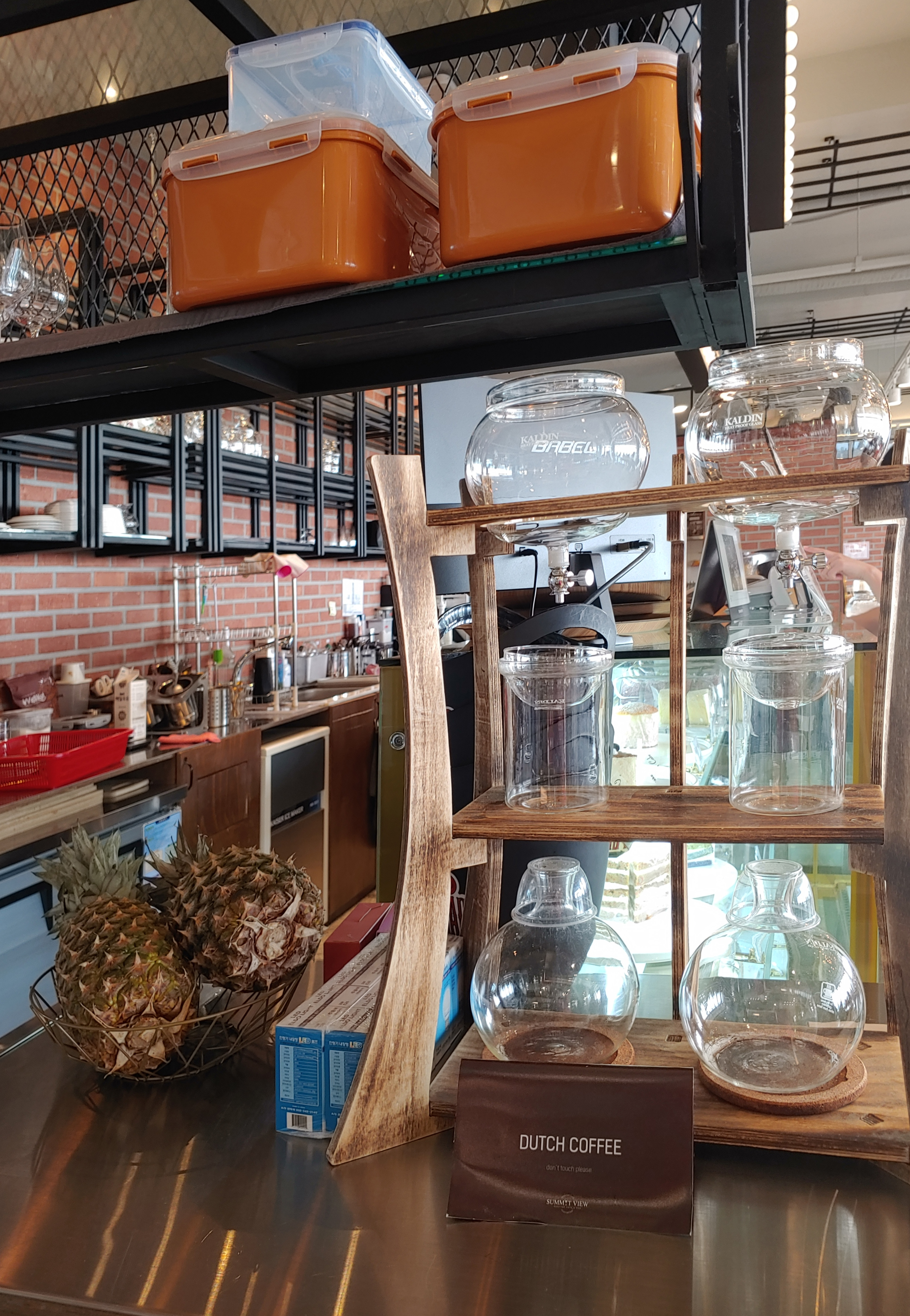 더치커피를 내리는 도구와 휴대폰이나 배터리를 충전할 수 있는 것도 있었어요.