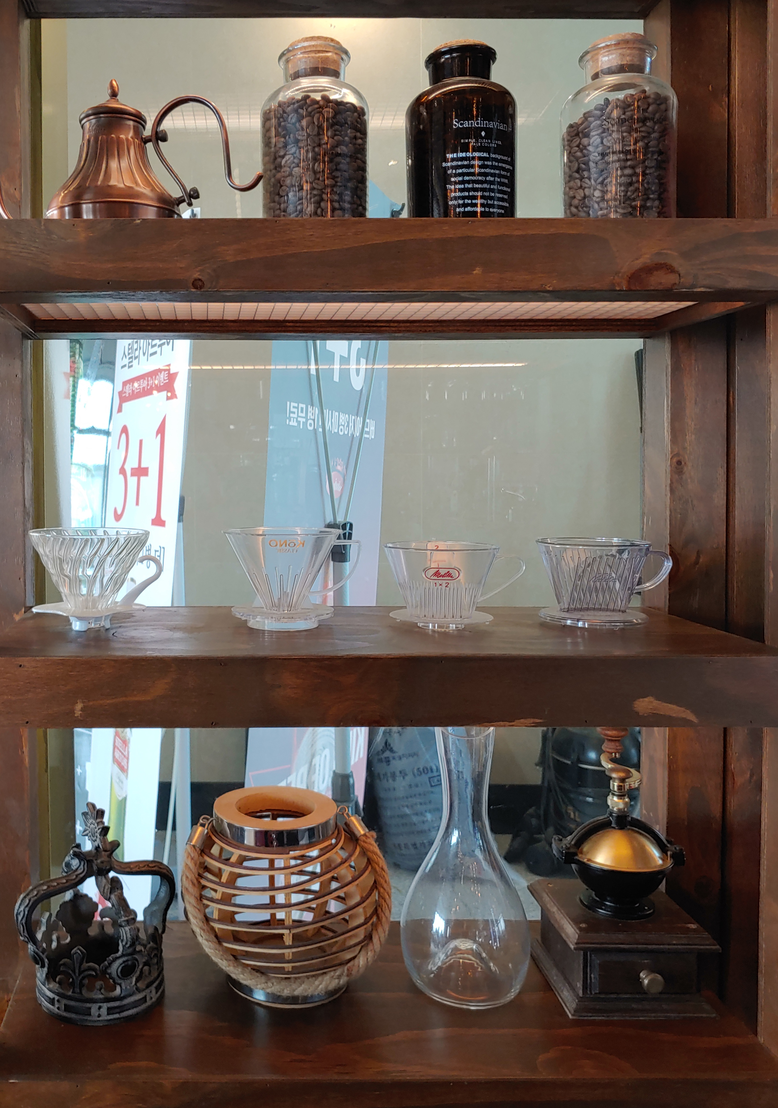 나름 엘리베이터를 타고 와서 바로 들어갔을 때 입구에 있던 선반들입니다.