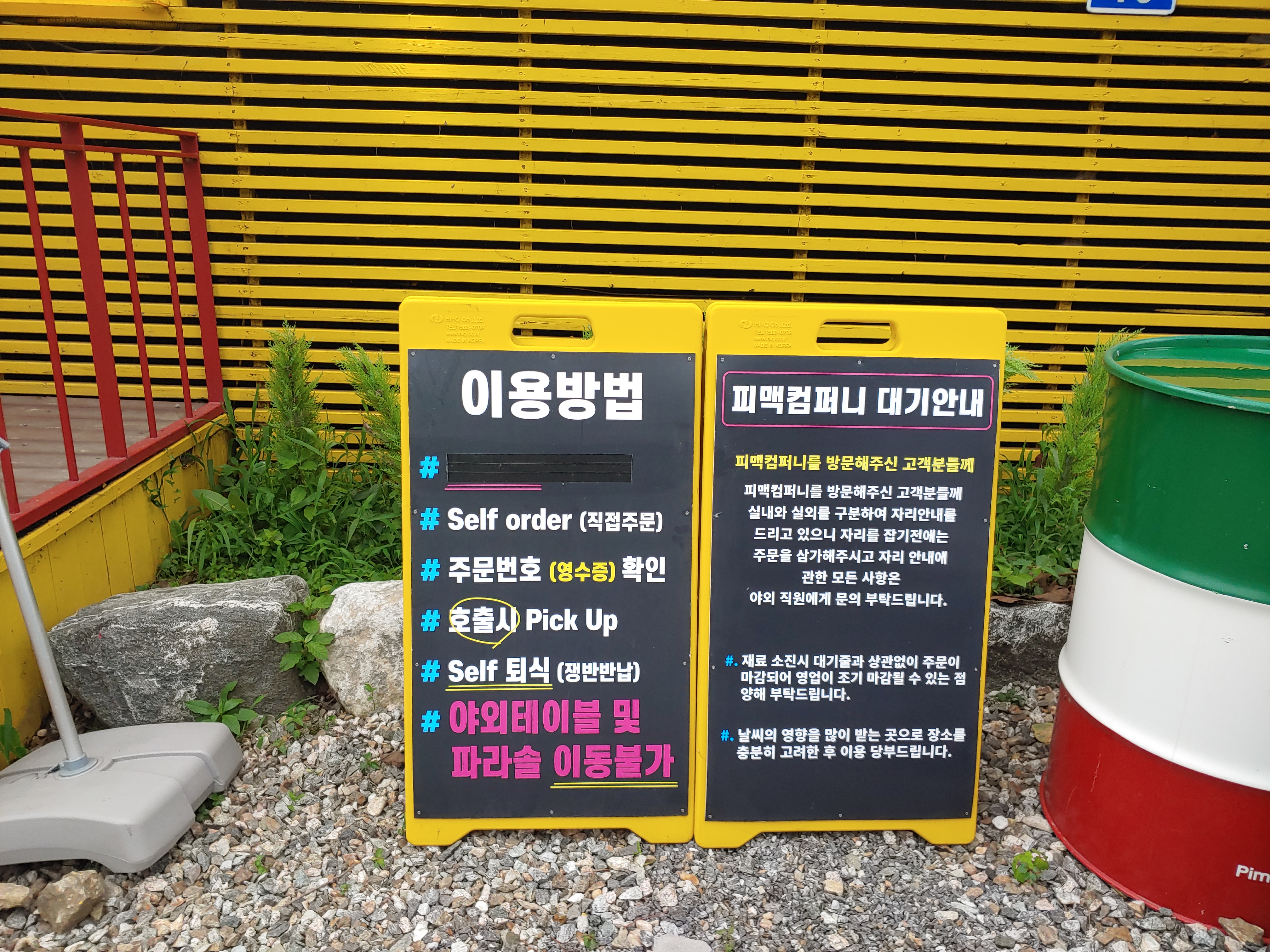 피맥 컴퍼니 이용방법과 대기 안내 등 간단하게 표지판으로 적혀 있어요.