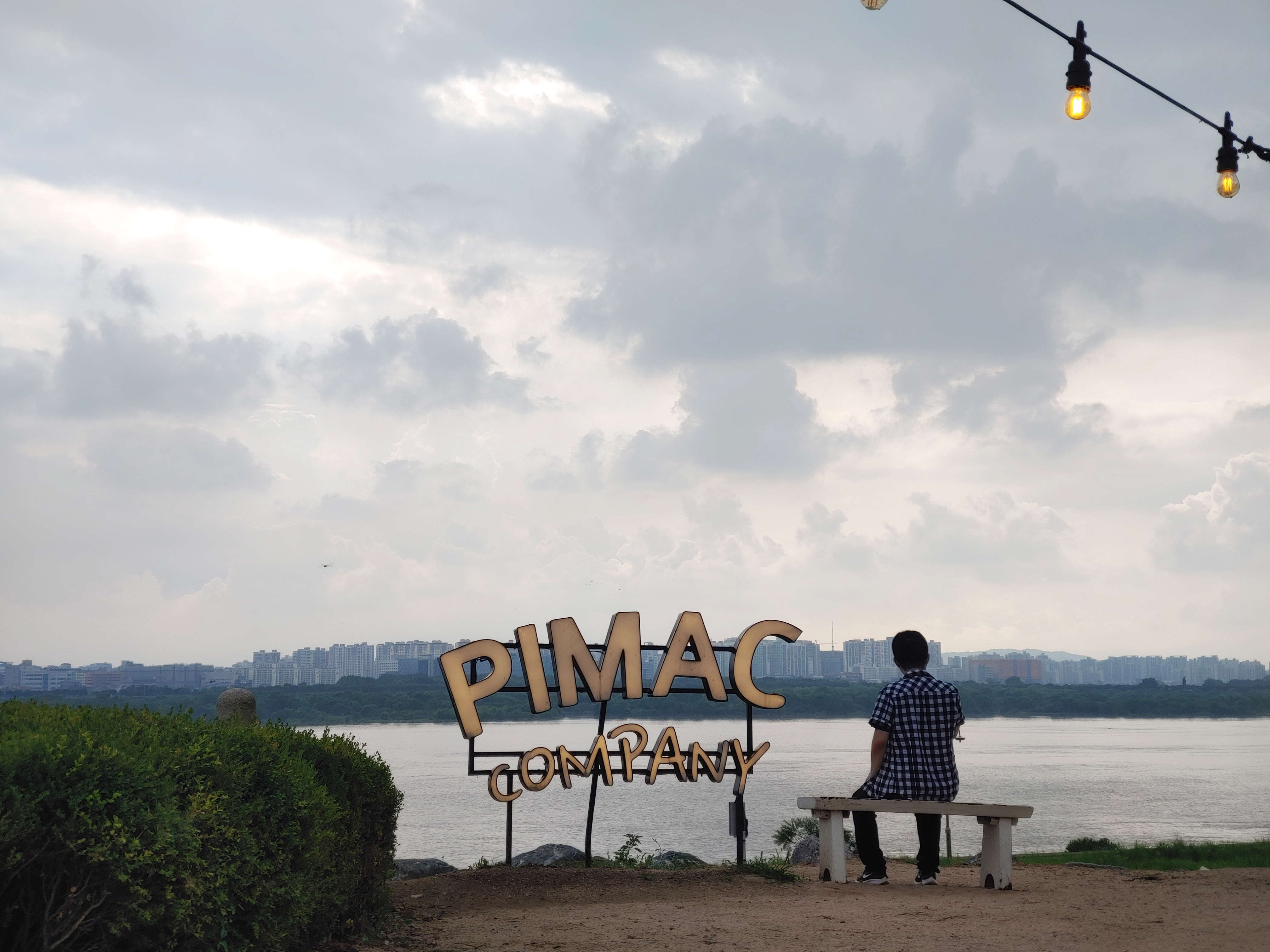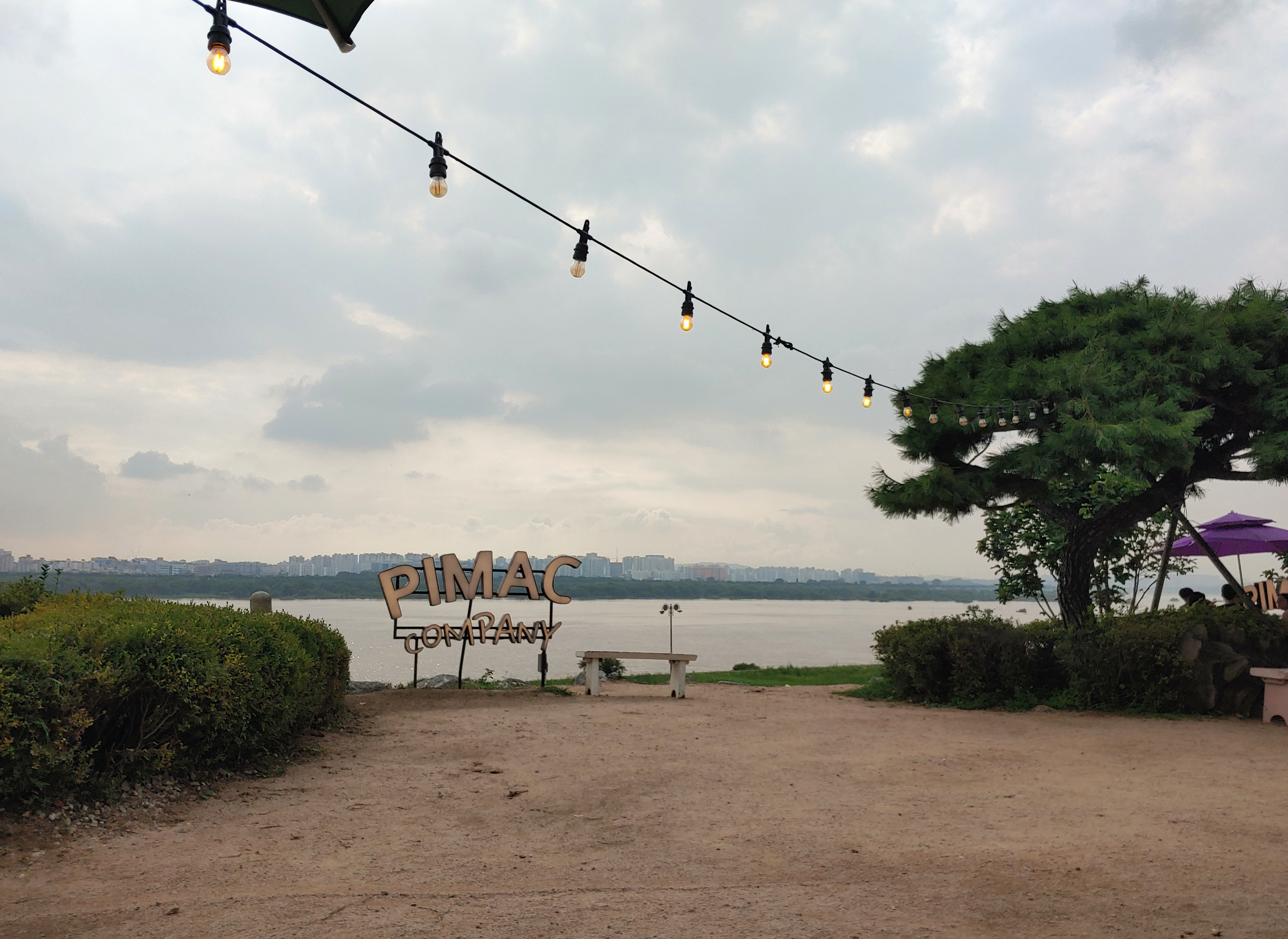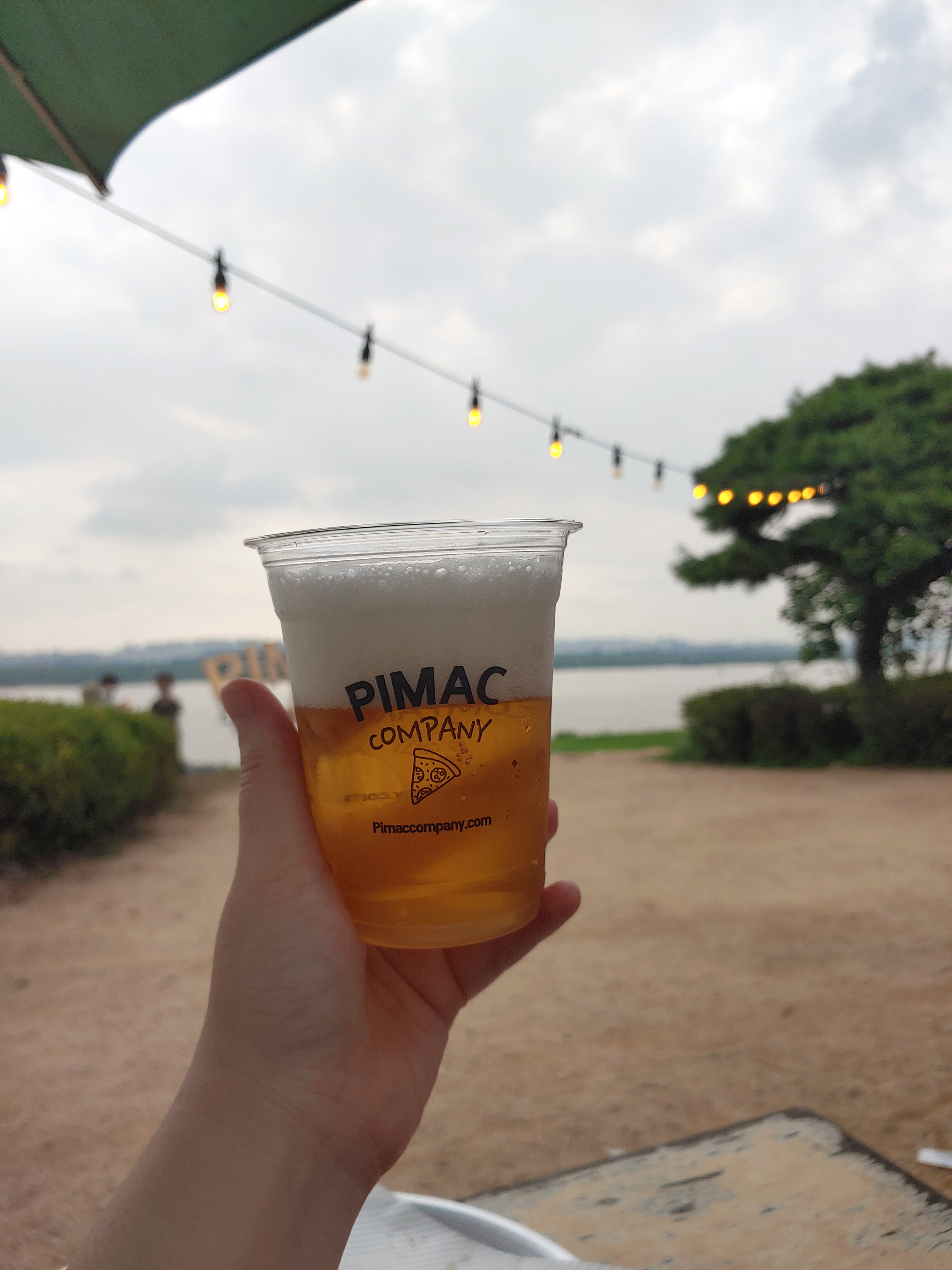 이때 마시던 맥주와 찍으니, 잠시 리버뷰가 아닌 오션뷰 같은 느낌...(날씨만 화창했어도 이 날 하루만 해도 멋진 사진들이 많이 나왔을 것 같습니다.)