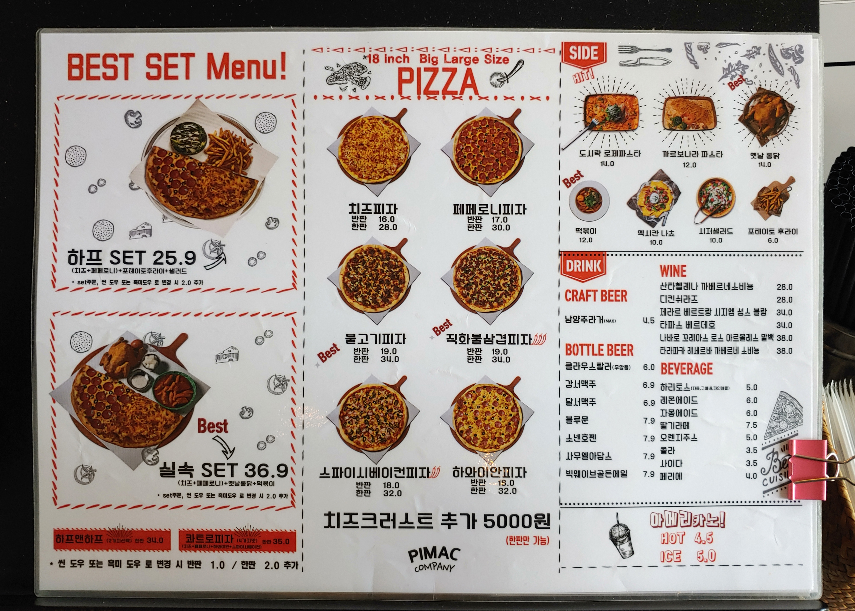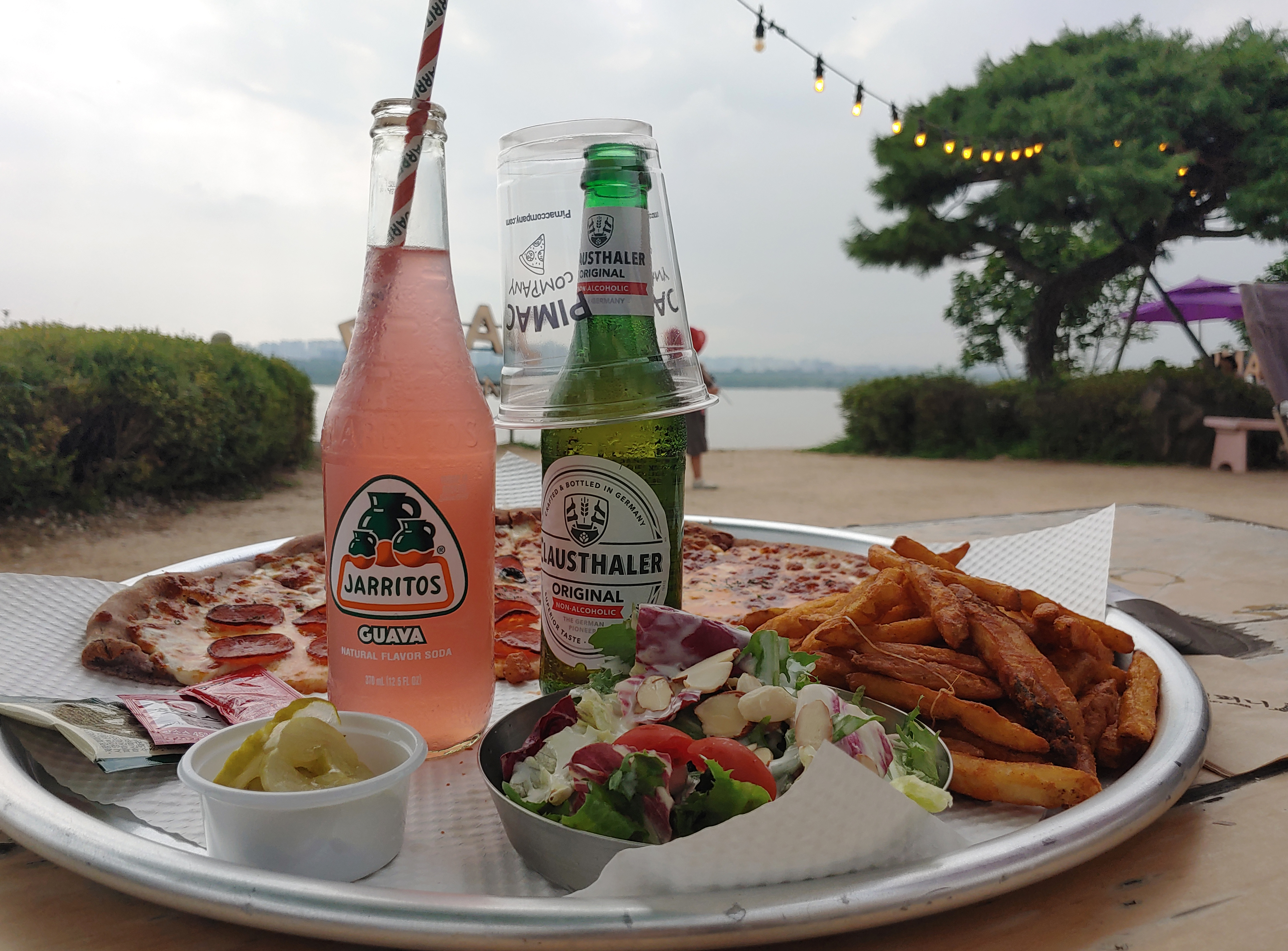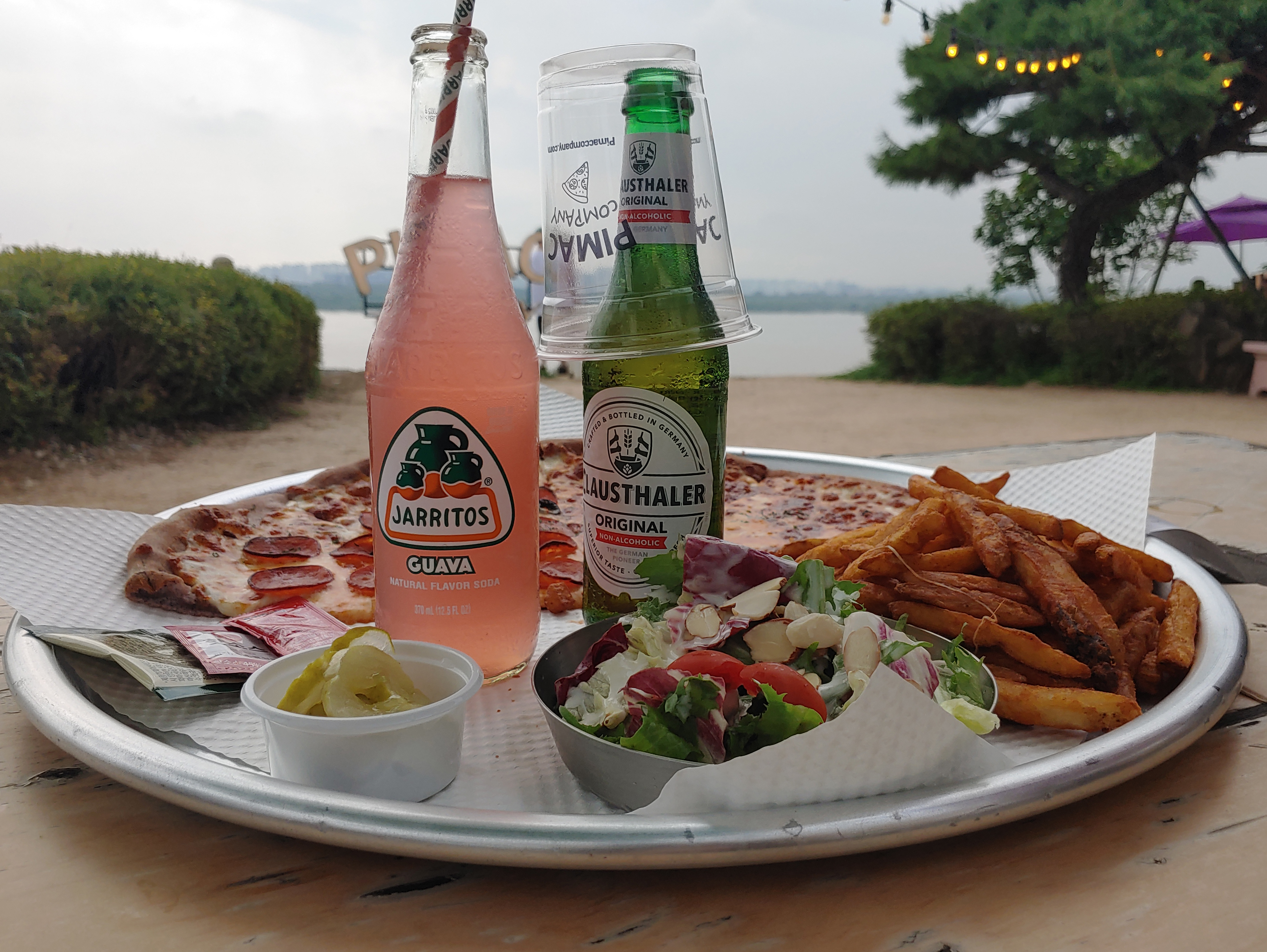 하와이 피서지 같은 느낌을 내려고 하신 것 같았어요. 생각해보면, 딱 피자와 맥주라는 음식 또한 하와이가 떠오르지 않나요? (가보진 않았지만요...)