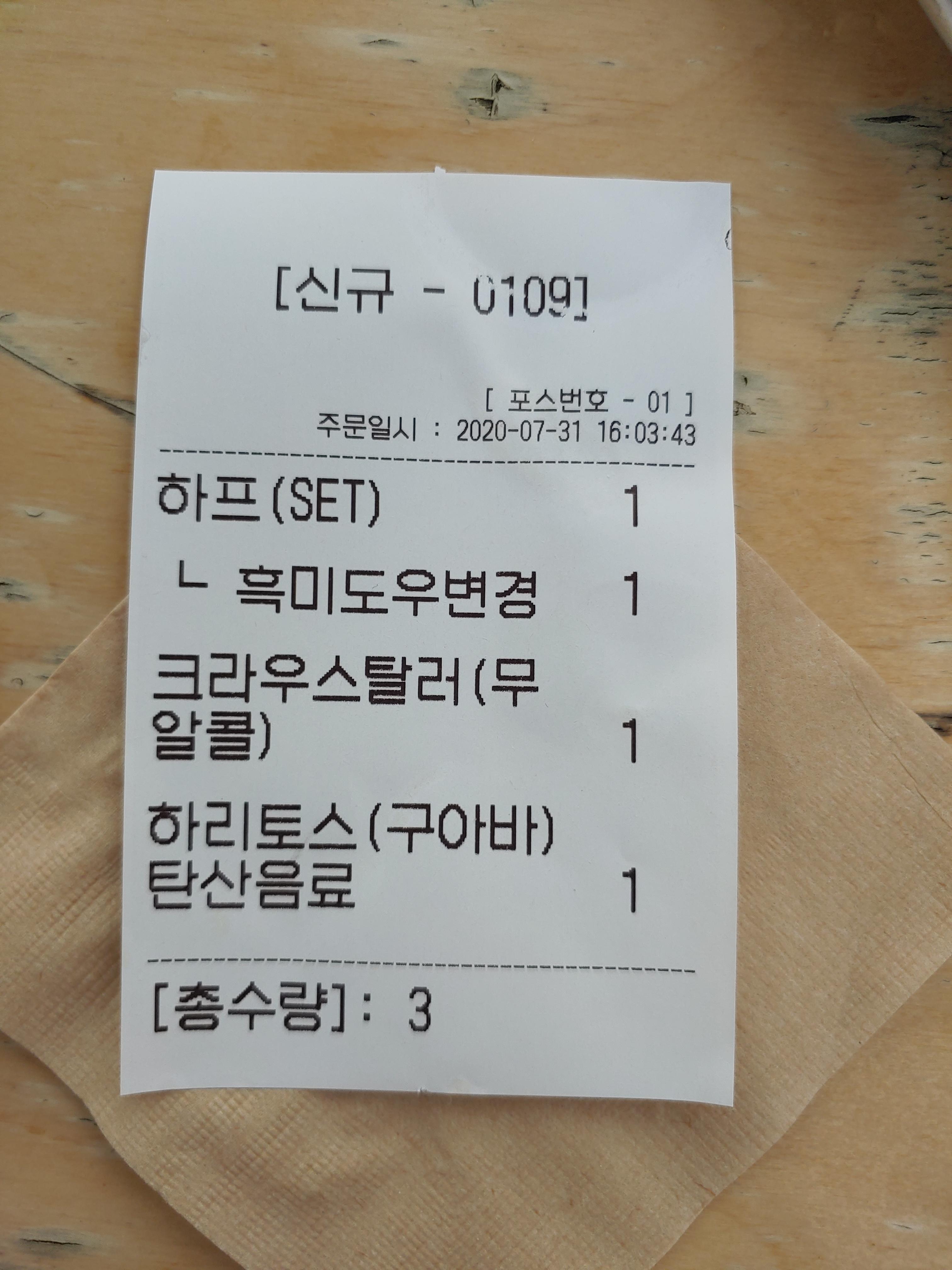 저희가 109번 주문표를 받았는데, 108번이 떠 있는 상태였어요. (두근두근)