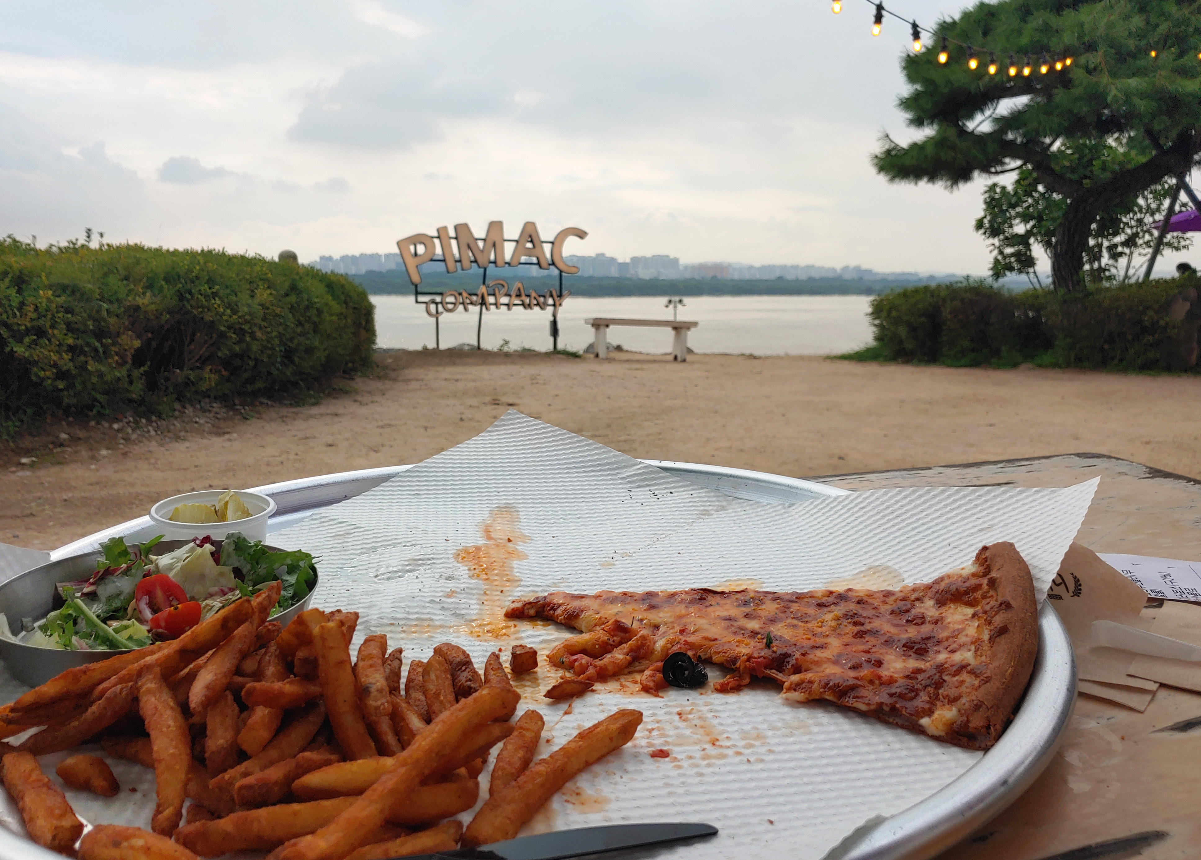 그리고 제가 바라고 바래왔던 피자와 함께 하는 한강뷰 샷!