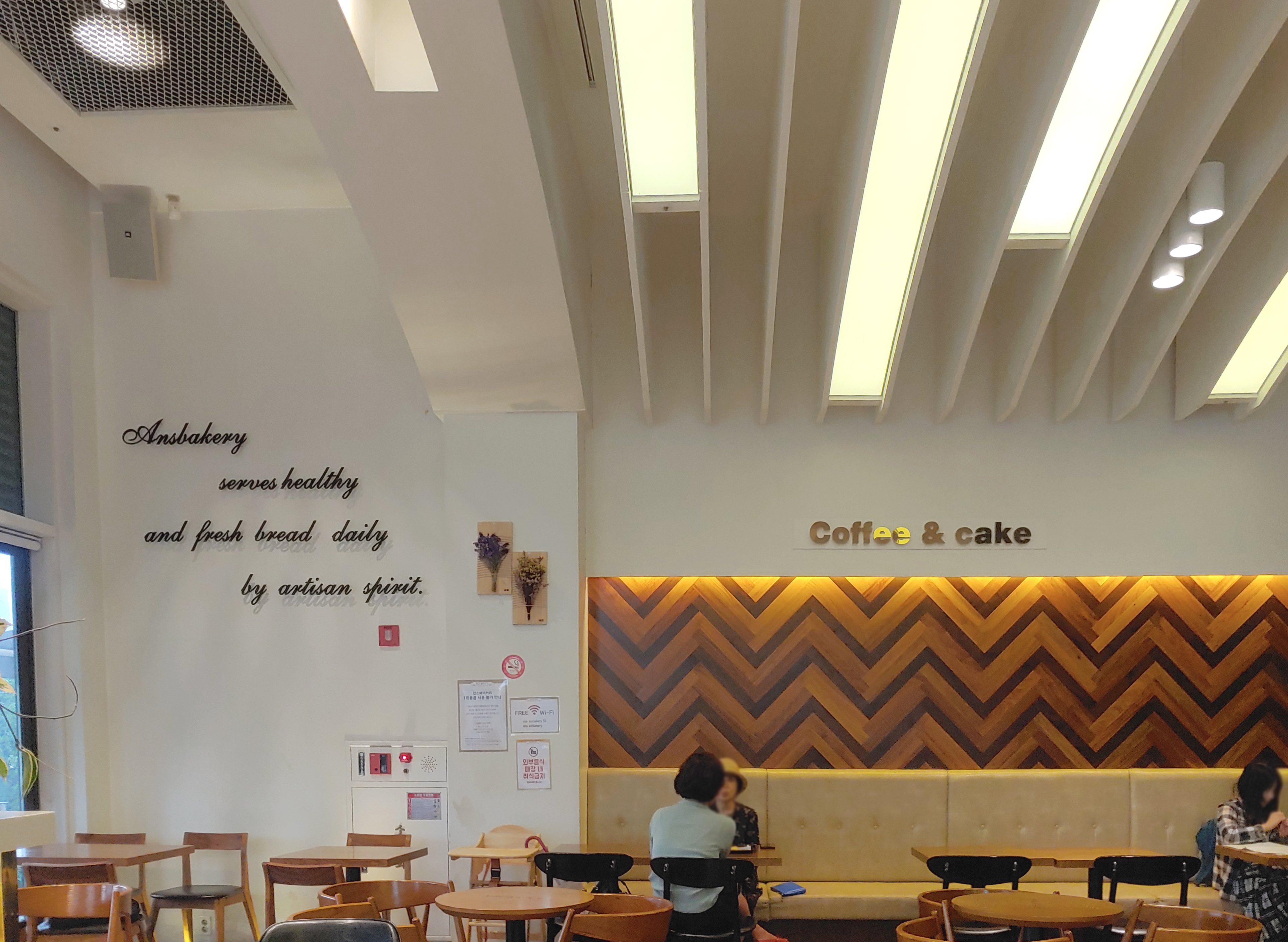 베이커리의 카페 공간은 크지는 않지만, 따뜻한 우드 컬러와 조명의 효과 등 안정적인 편안함을 주는 공간이었어요.