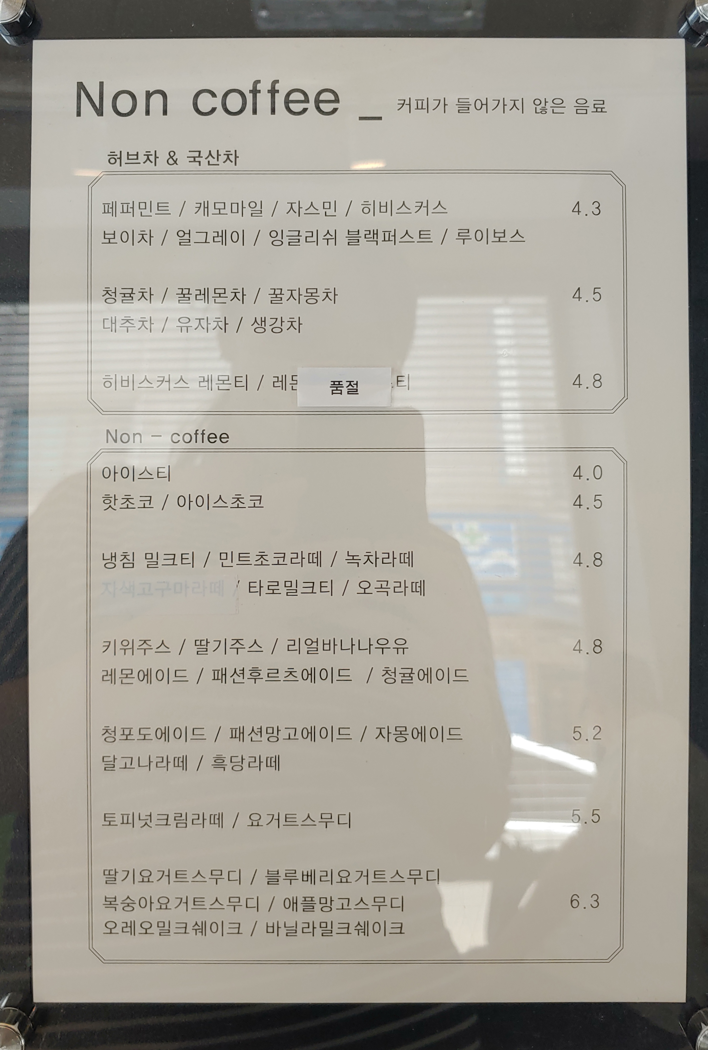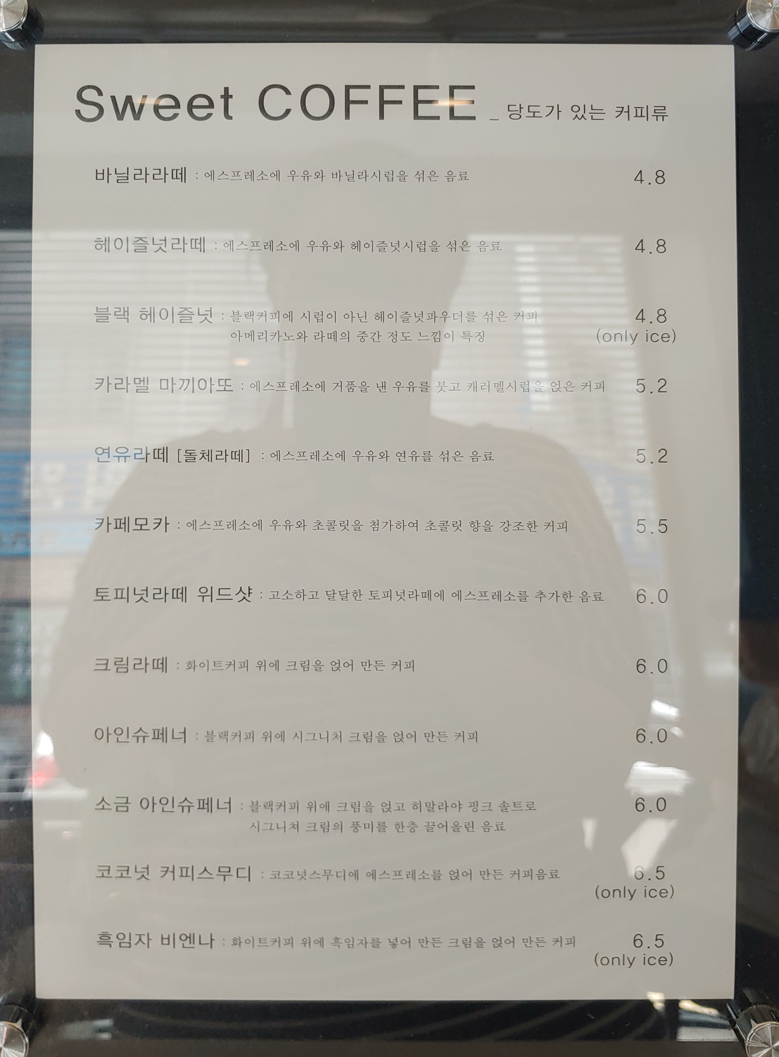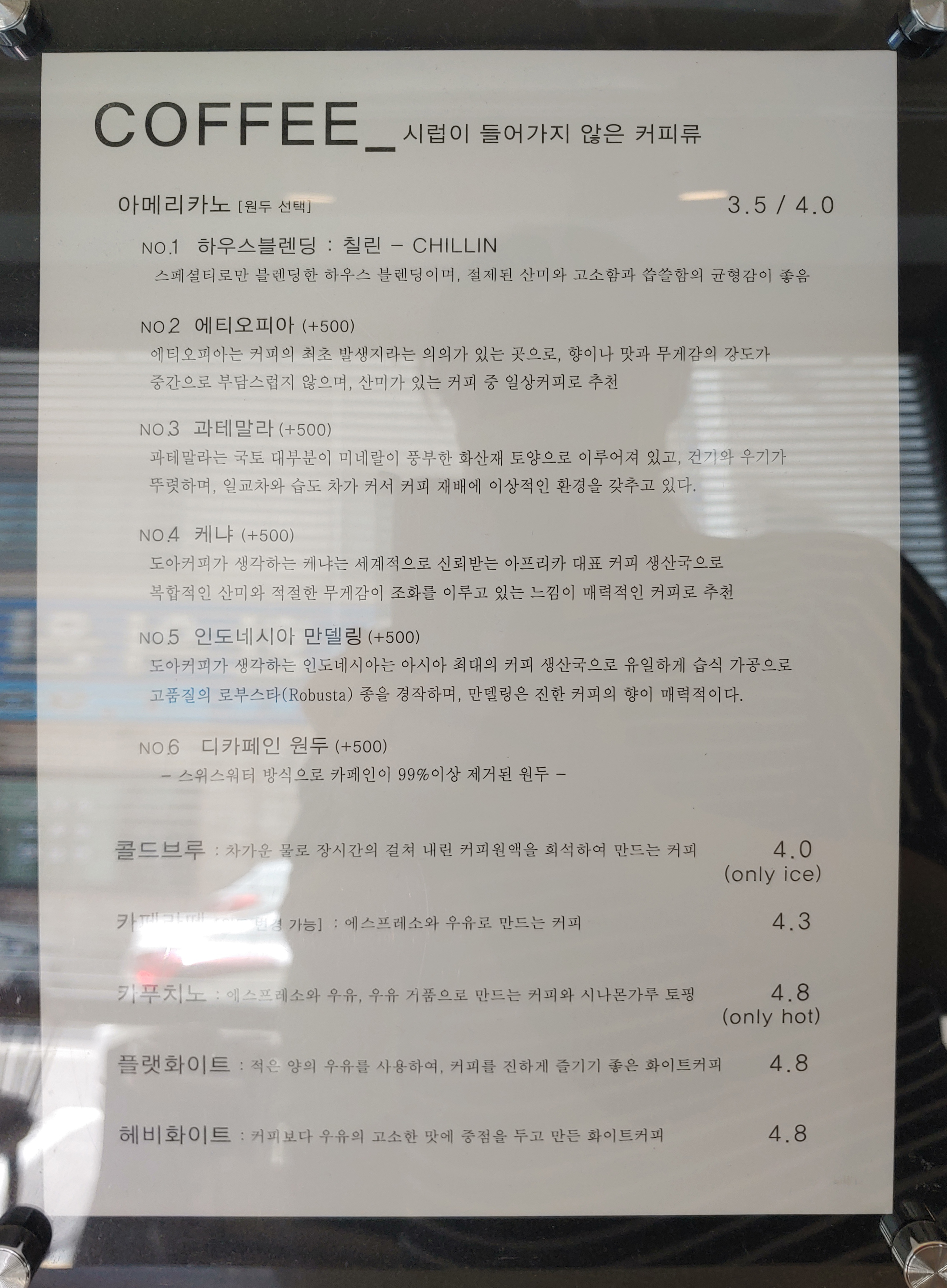 아주 말끔하게 적혀 있는 메뉴판.